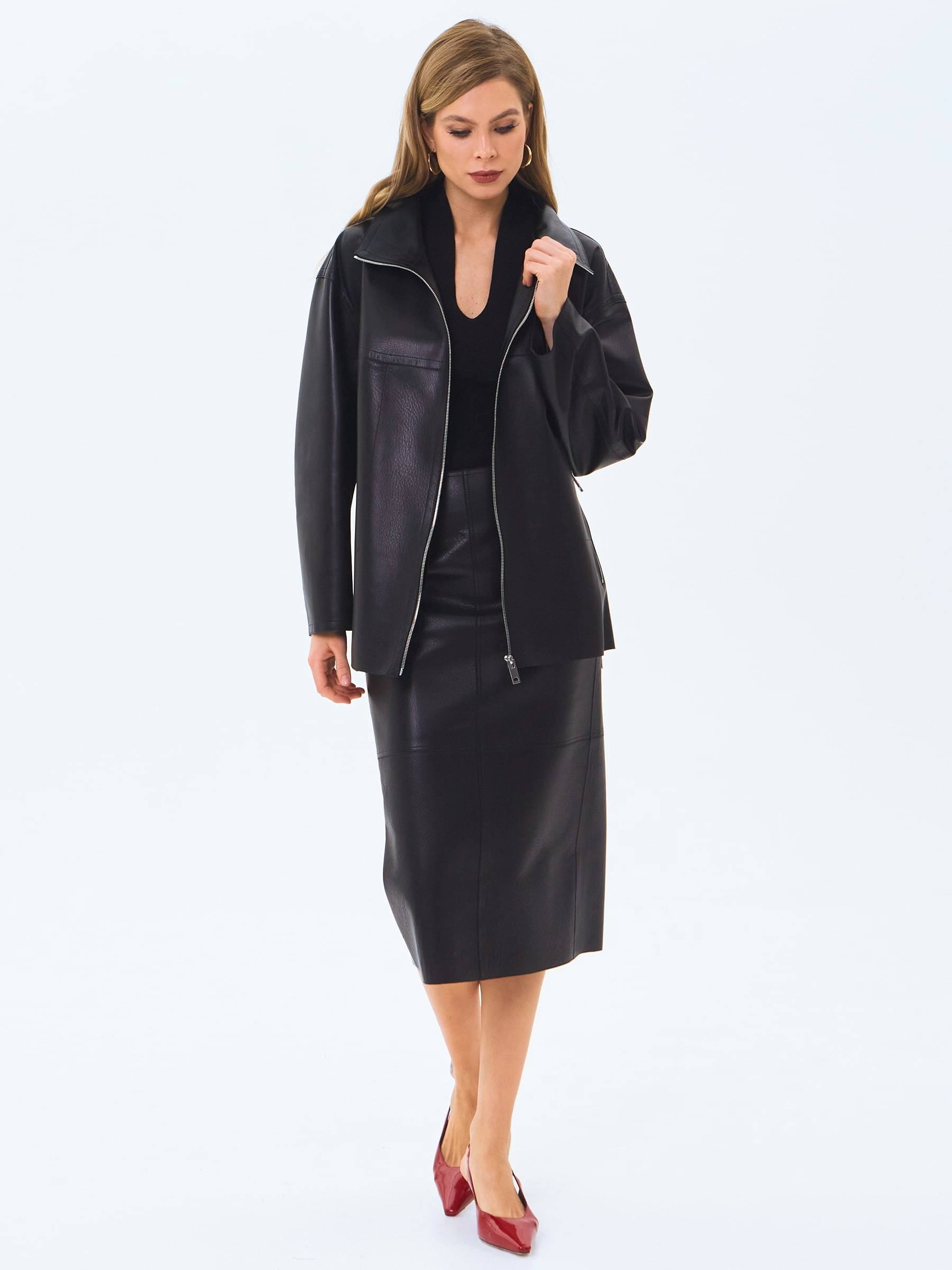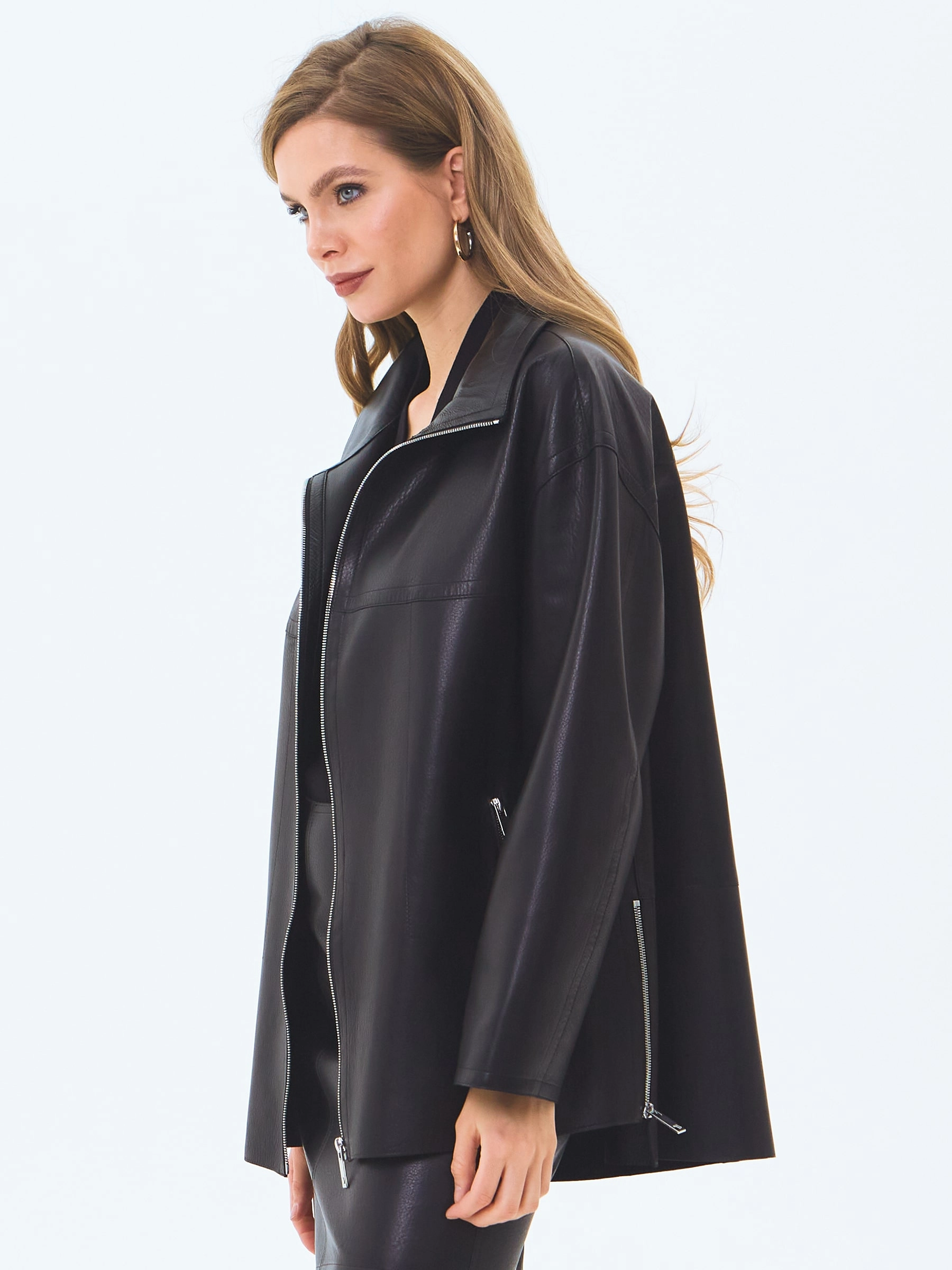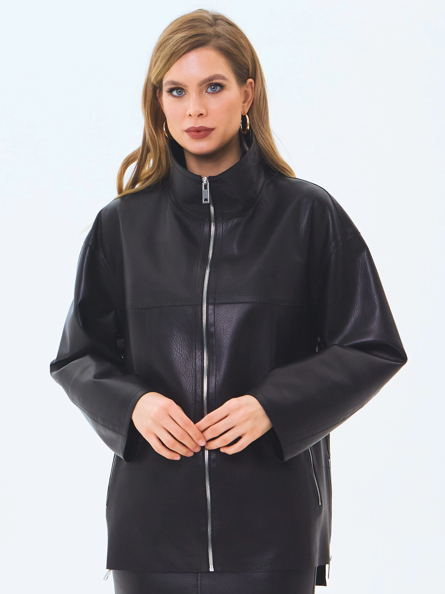 Товар кожаная куртка премиум класса для женщин 3090, черная, размер 48, артикул 24340 выполнен из натуральной кожи с застежкой молния. Рассчитан на сезон: весна-осень. Длина изделия 74 см, силуэт свободный.