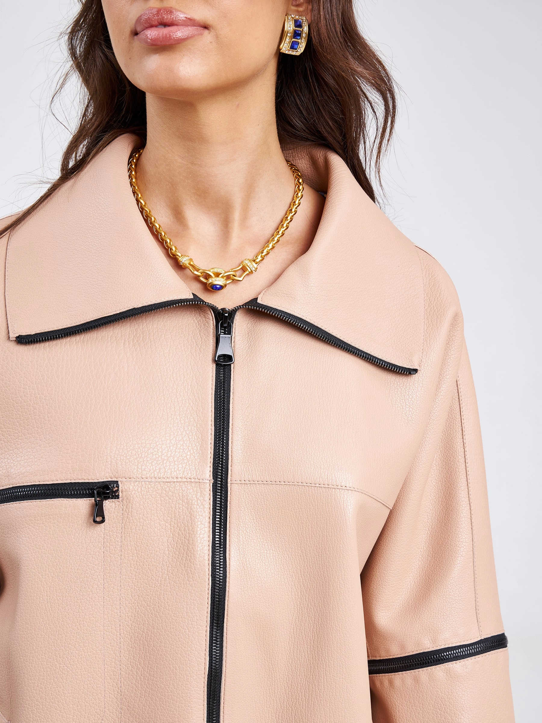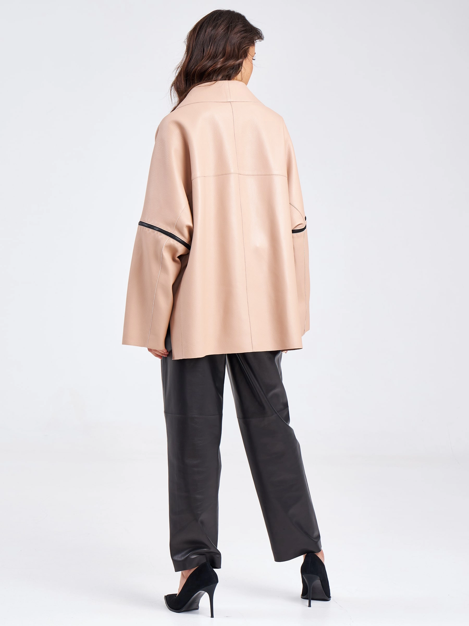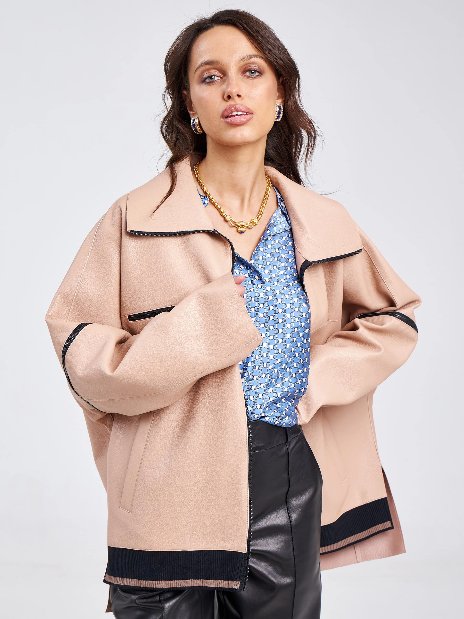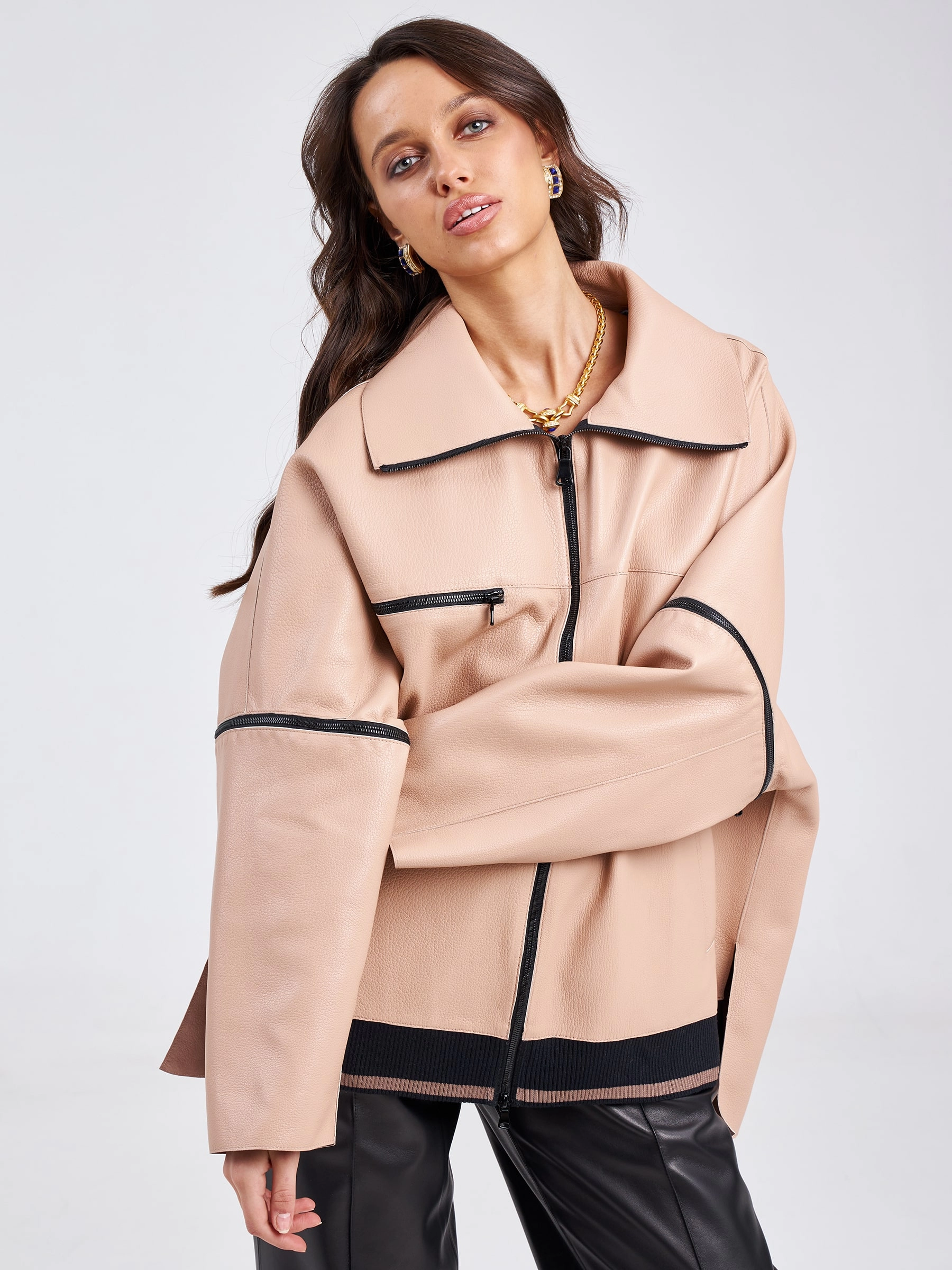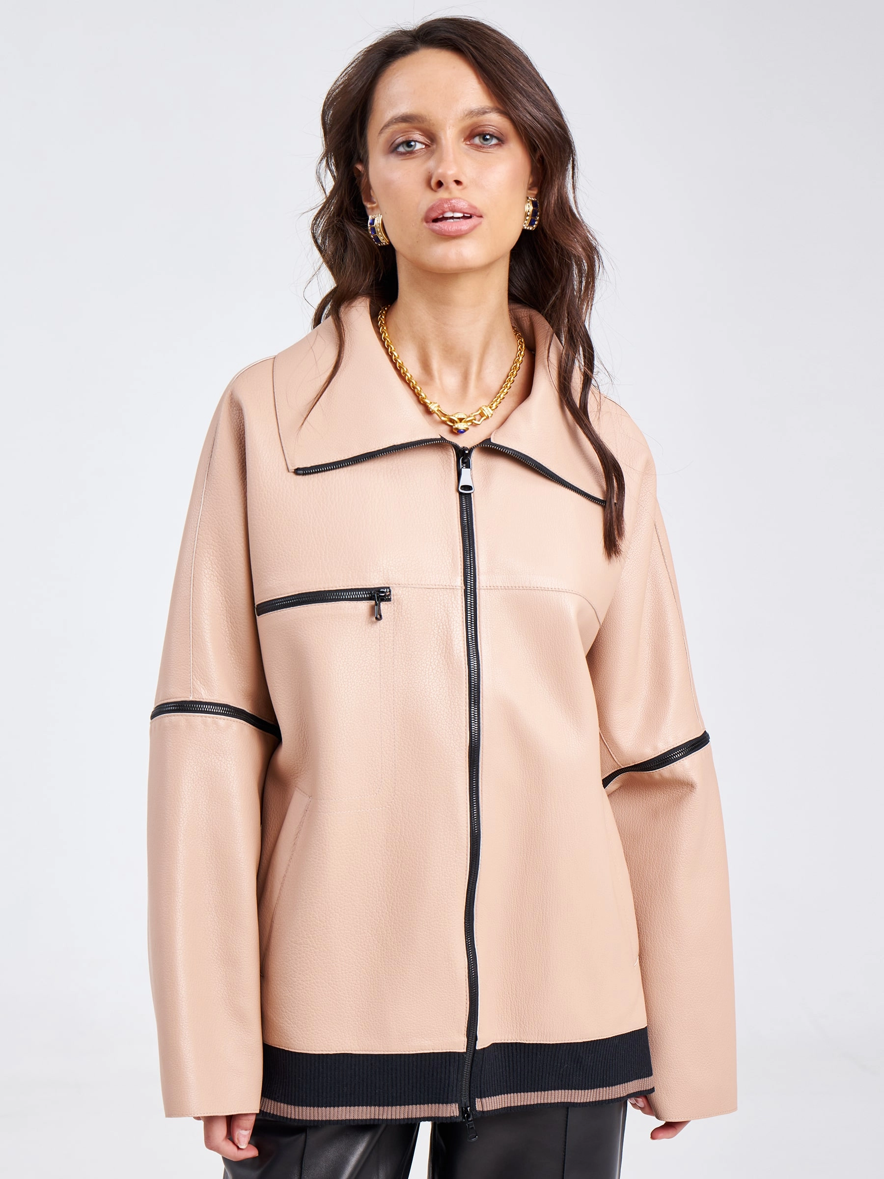 Товар кожаная женская куртка оверсайз на резинке премиум класса 3031, пудровая, размер 52, артикул 23200 выполнен из натуральной кожи с застежкой молния. Рассчитан на сезон: весна-лето. Длина изделия 76 см, силуэт свободный.