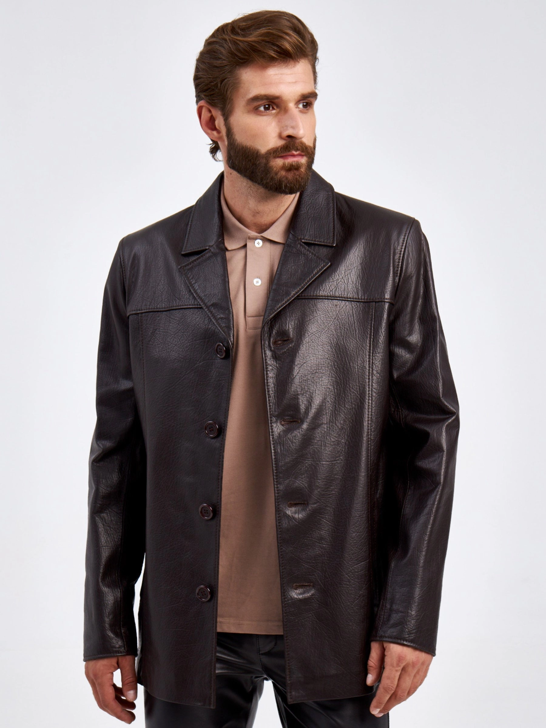 Товар кожаный пиджак для мужчин 2010-8, коричневый, размер 48, артикул 29320 выполнен из натуральной кожи с застежкой пуговицы. Рассчитан на сезон: демисезон. Длина изделия 75-90 см, силуэт полуприлегающий.