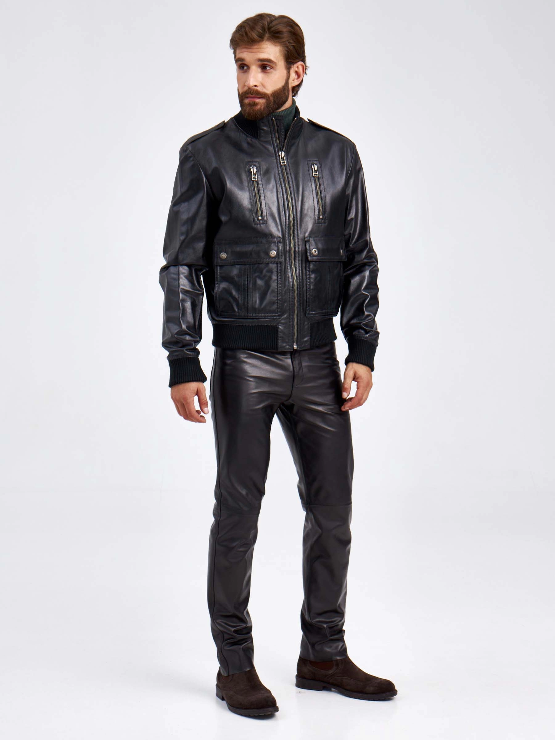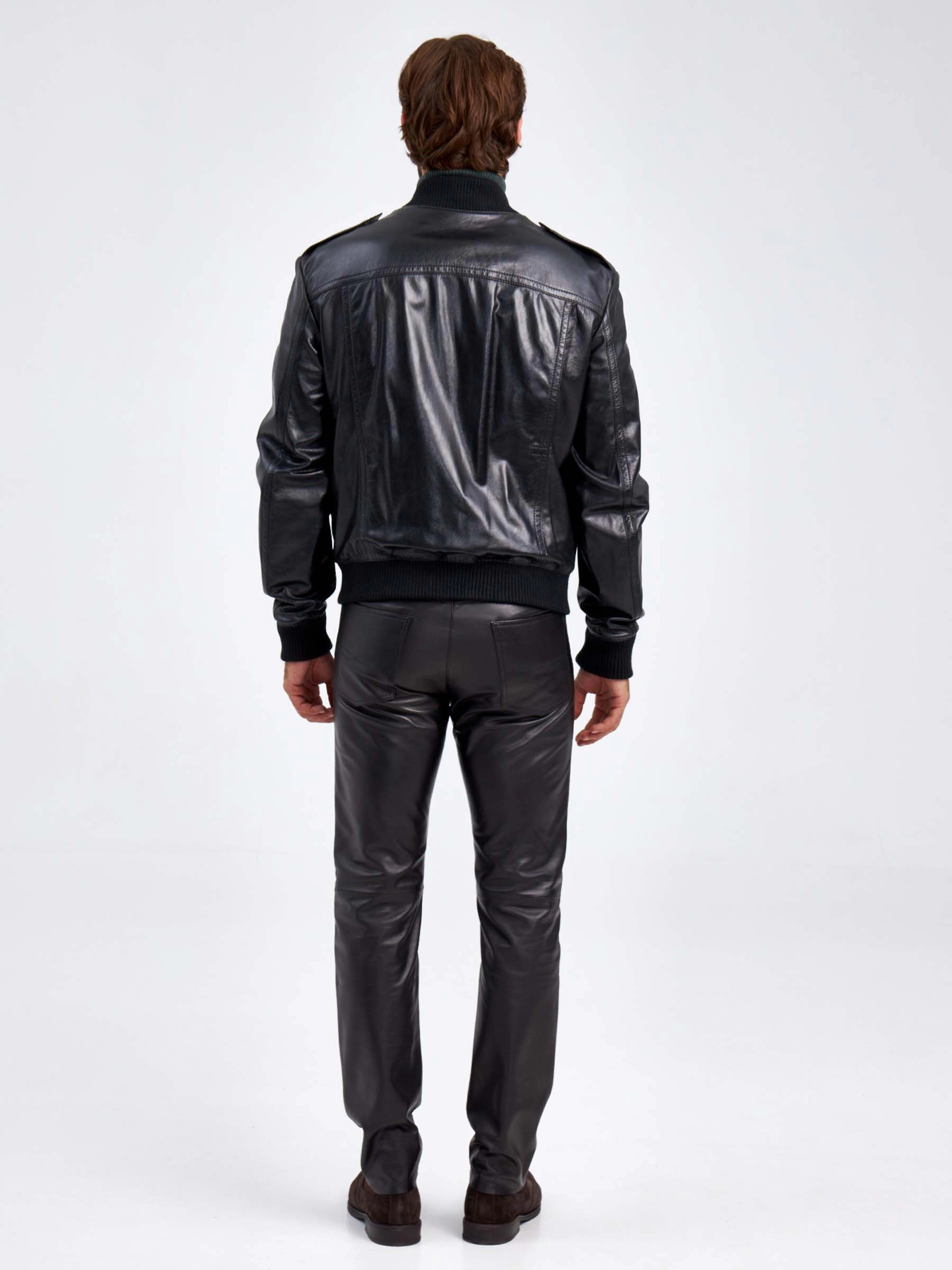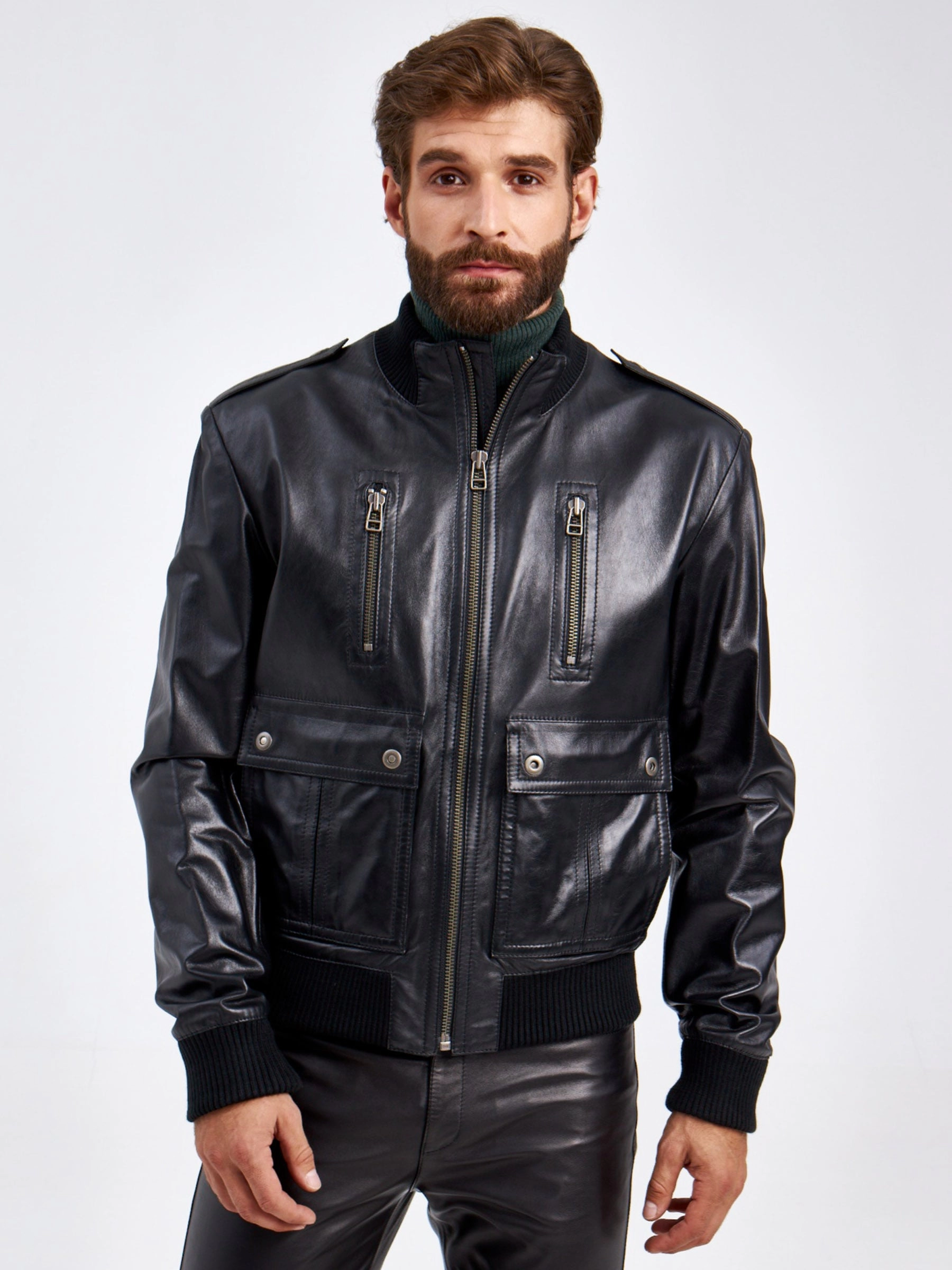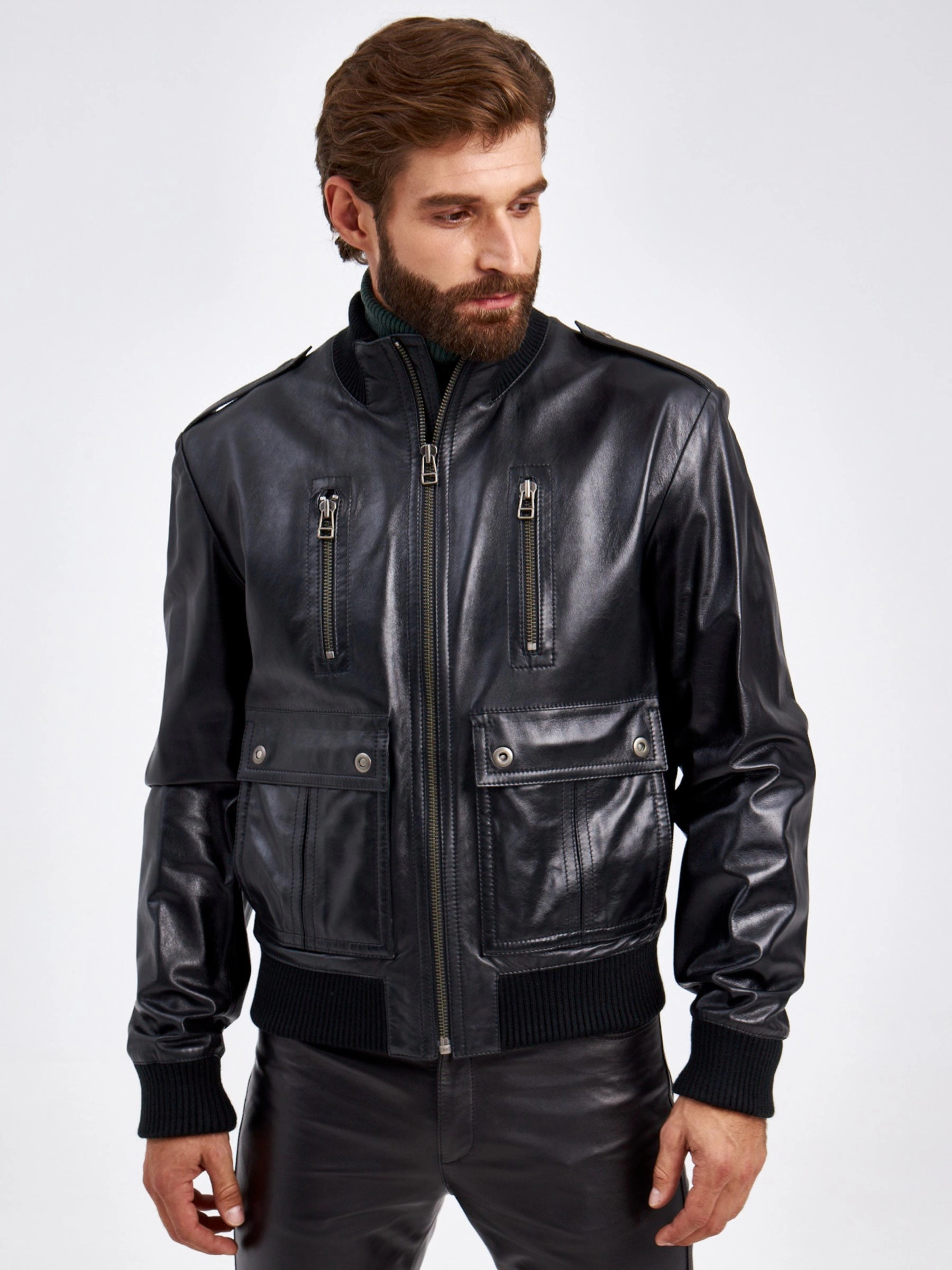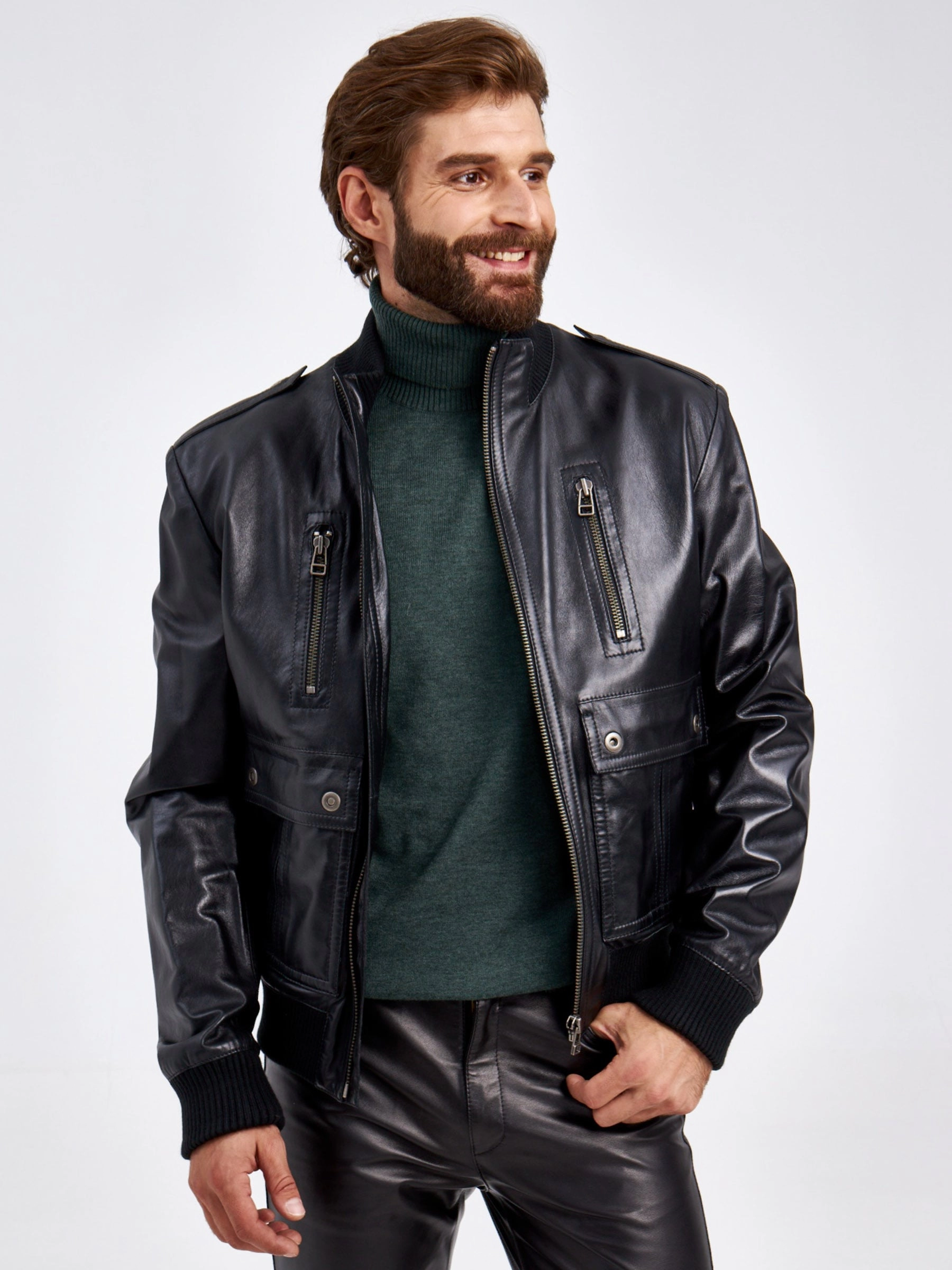Кожаная куртка бомбер мужская Роми М, черная, размер 50, артикул 29410