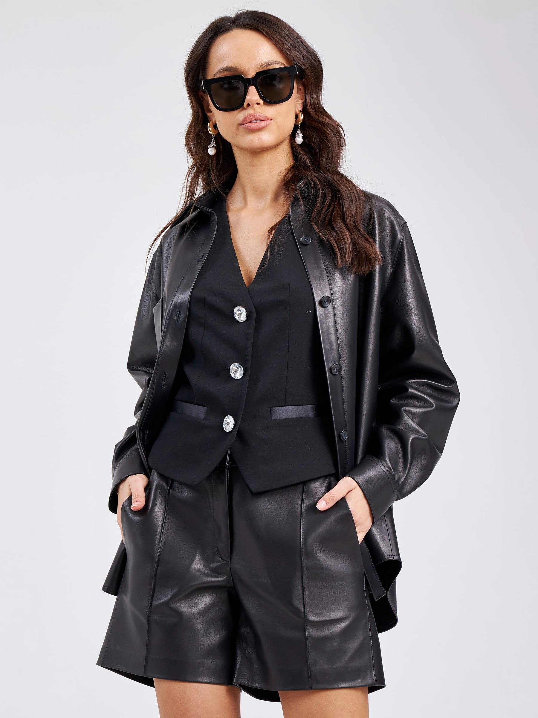 Товар кожаная женская рубашка с поясом из натуральной кожи премиум класса 02, черная, размер 46, артикул 23220 выполнен из натуральной кожи с застежкой пуговицы. Рассчитан на сезон: весна-лето. Длина изделия 75 см, силуэт прямой.