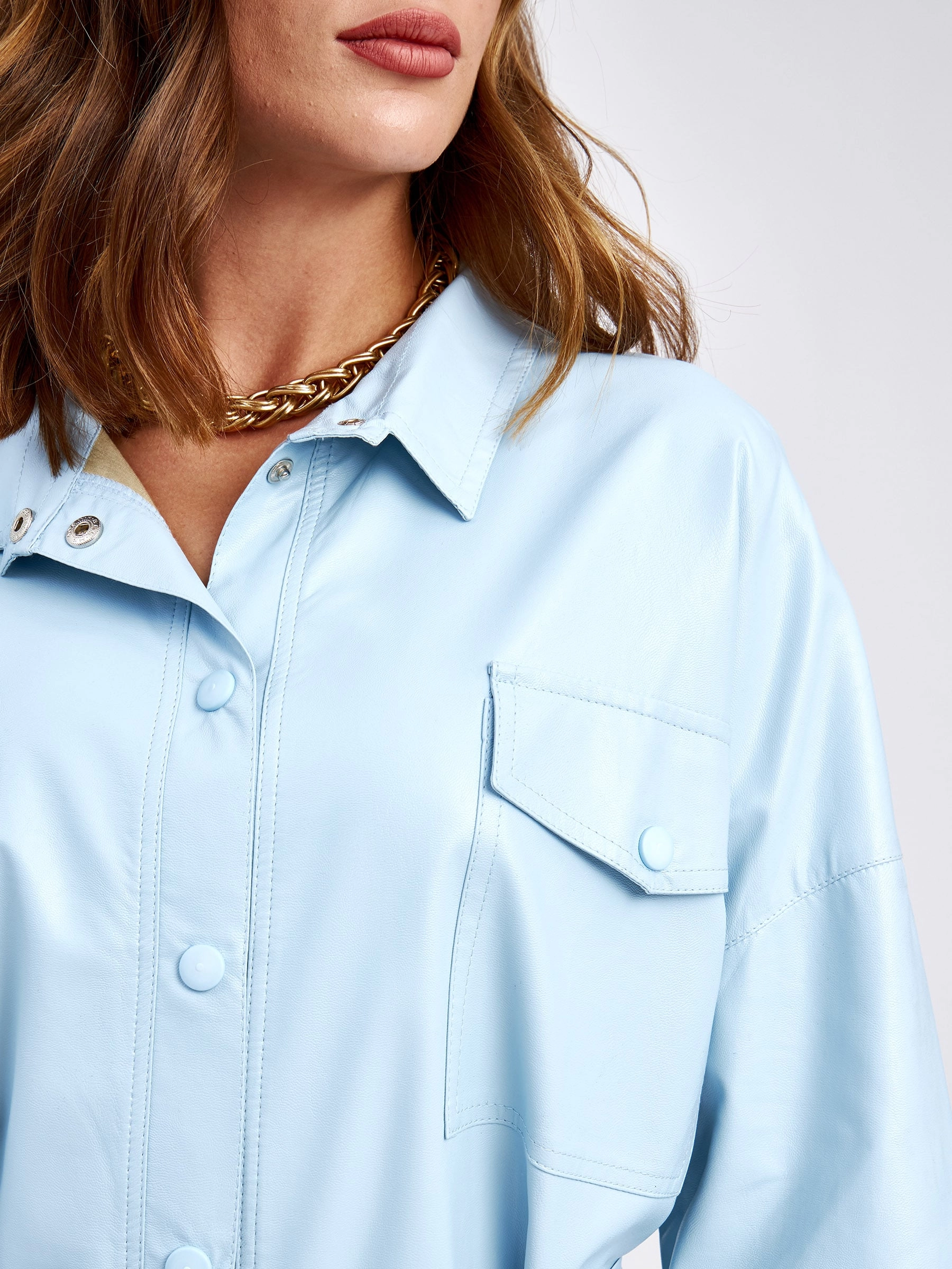 Кожаная рубашка женская из экокожи 4820791, голубая, размер 46, артикул 85690