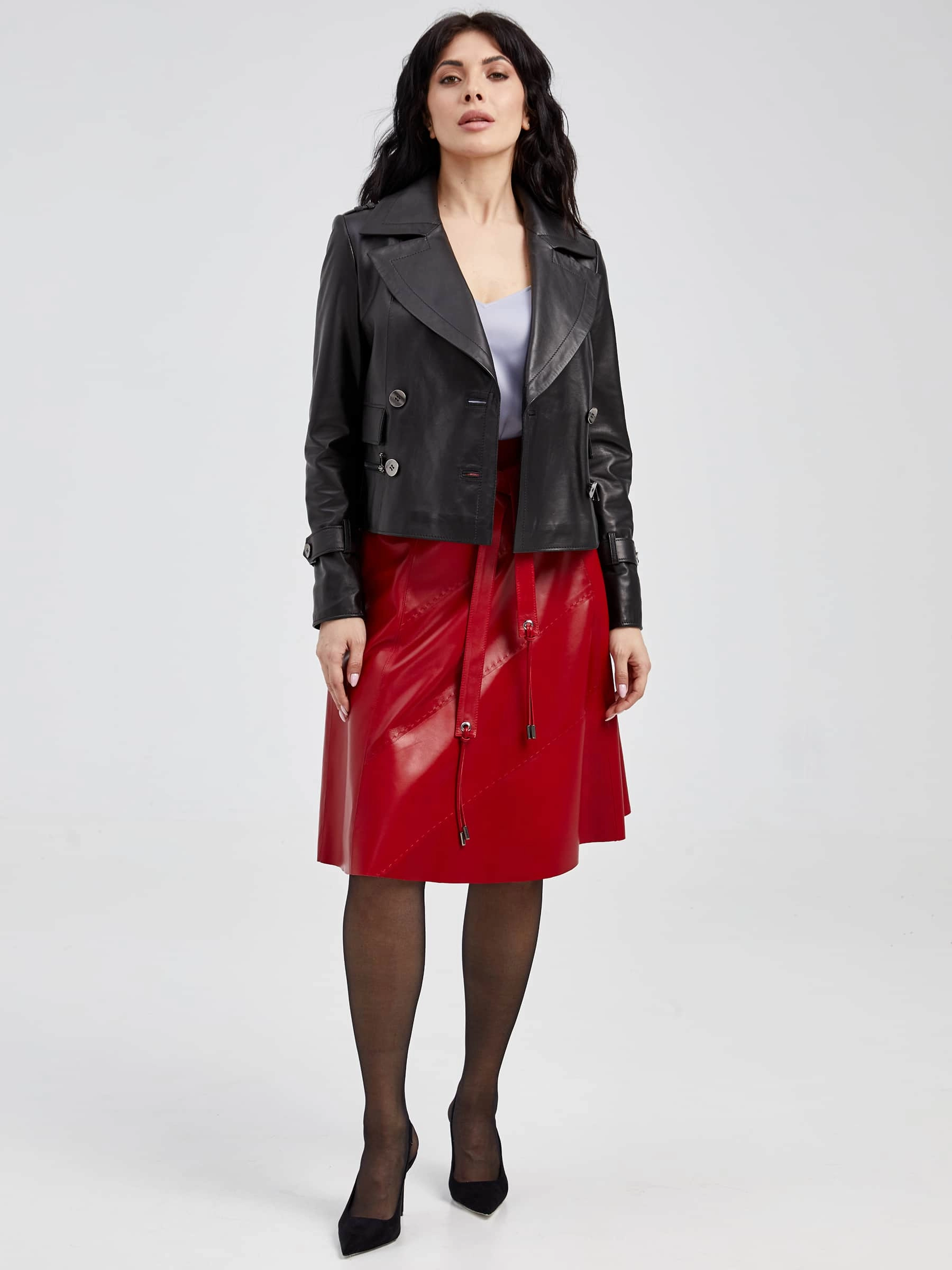 Элегантная расклешённая юбка из натуральной мягкой кожи — это воплощение утончённости и свежести. Её облегающий крой подчёркивает женственные изгибы, а лёгкий клёш добавляет образу воздушности и динамики. Эксклюзивная ручная строчка, подчёркивает роскошь материала, а удлинённый пояс с декоративной пряжкой в виде волны придаёт модели неповторимый шарм. Потайная молния сзади сохраняет безупречные линии, делая эту юбку идеальным выбором для тех, кто ценит изысканность и индивидуальность.