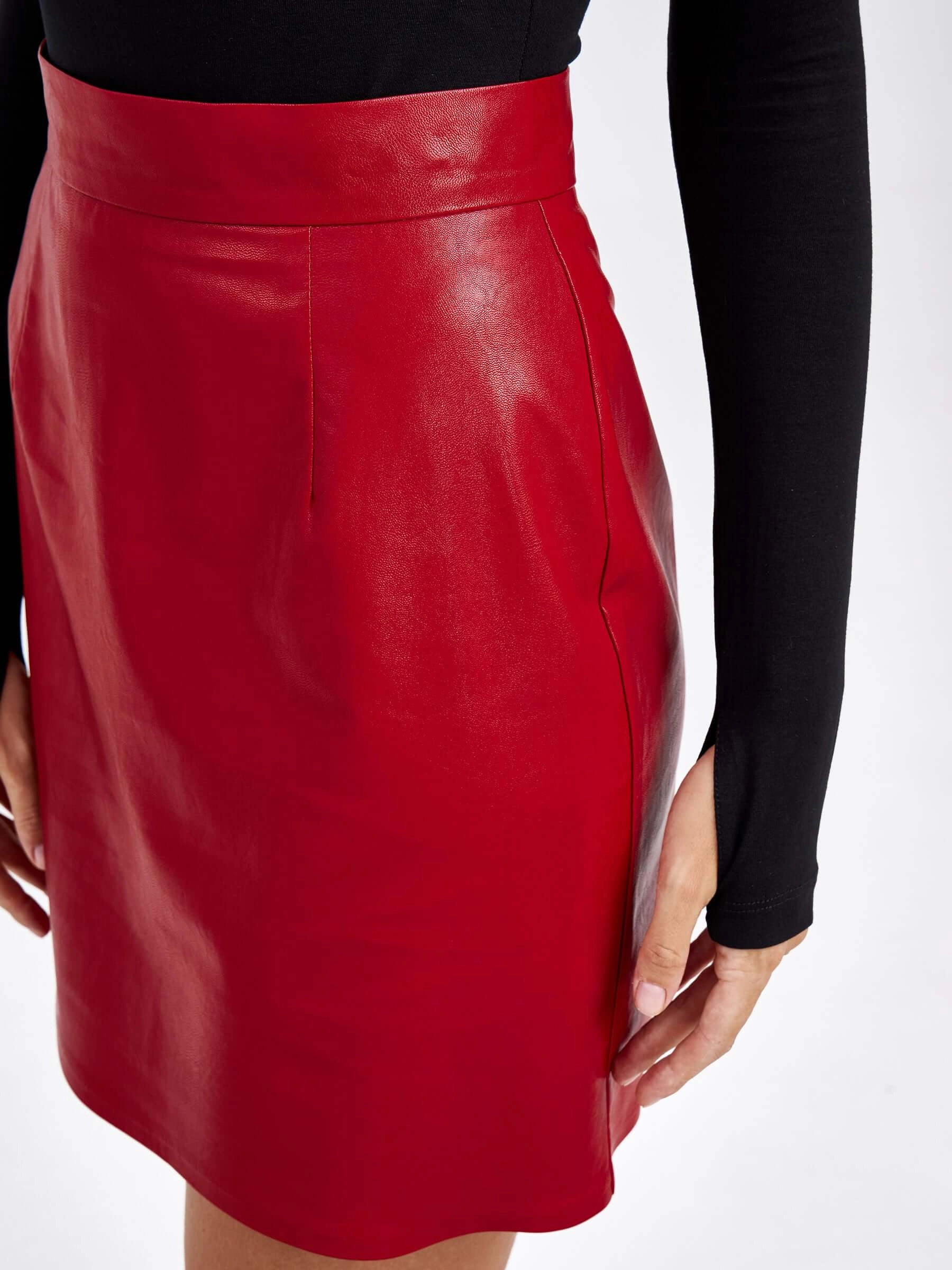 Женские кожаная юбка из экокожи 4539989, красная, размер 44, артикул 85850