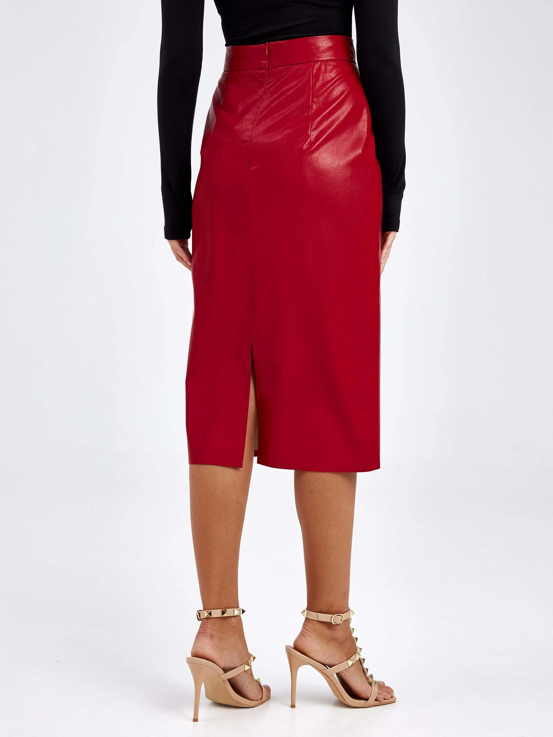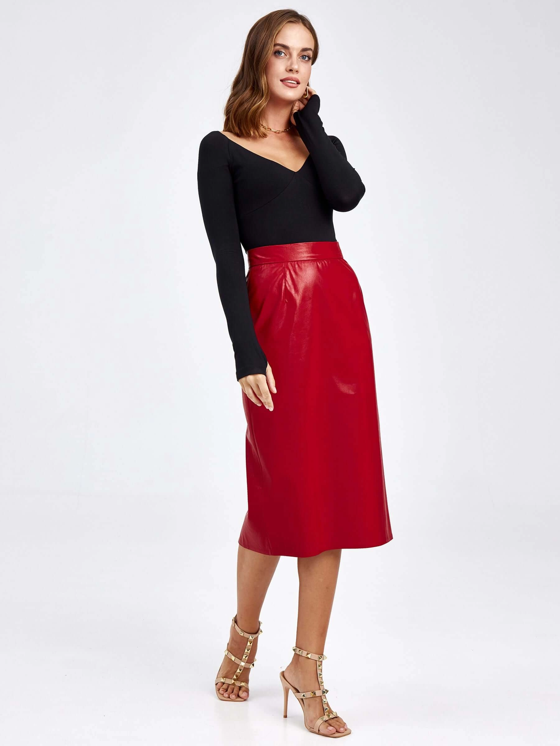 Товар женские кожаная юбка из экокожи 4540009, красная, размер 44, артикул 85740 выполнен из экокожи с застежкой молния. Рассчитан на сезон: демисезон. Длина изделия 73 см, силуэт прямой.