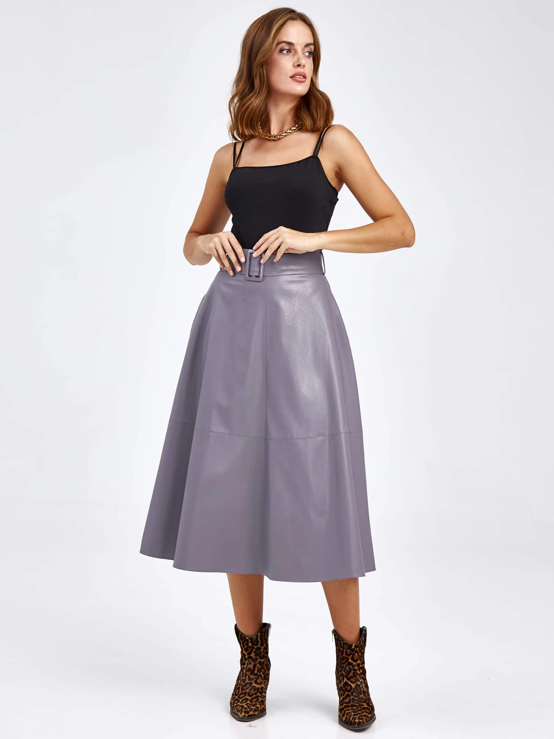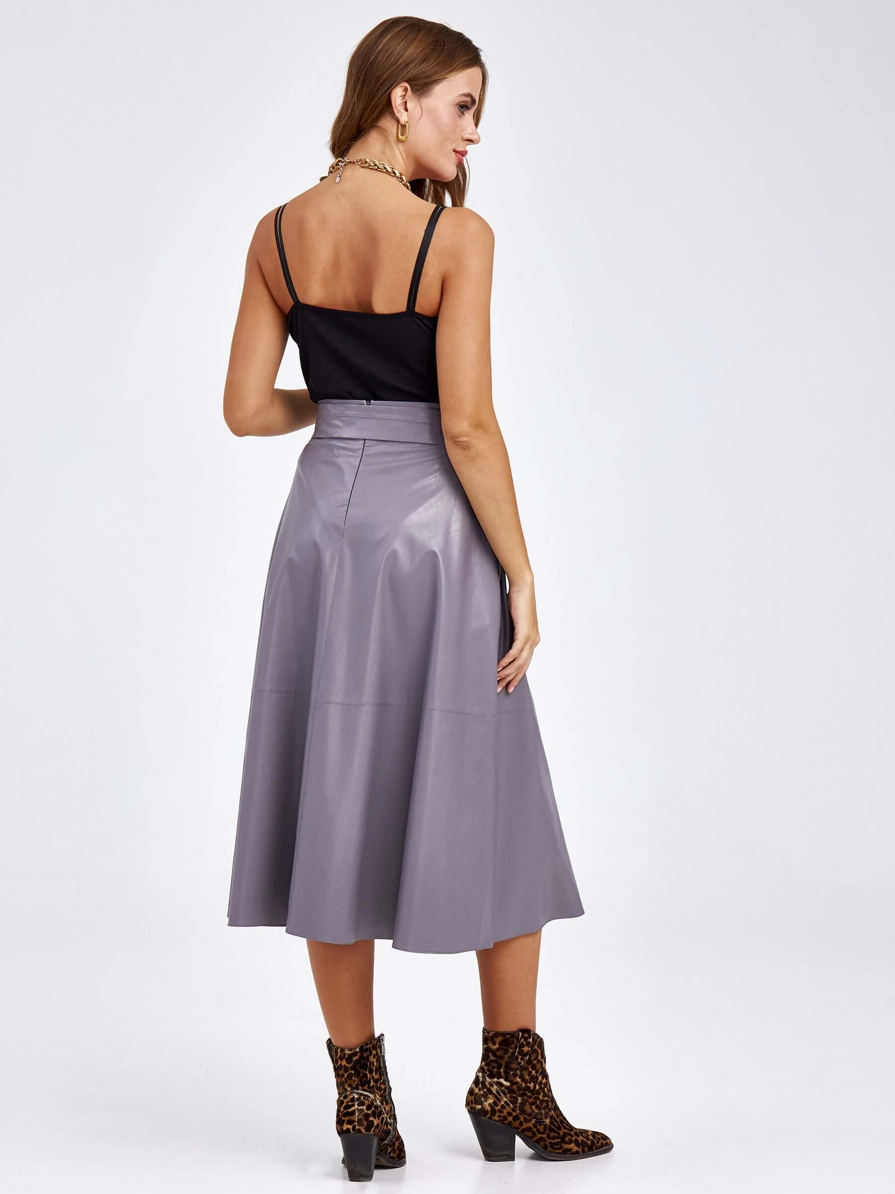 Товар женские кожаная юбка из экокожи 4820761, серая, размер 44, артикул 85810 выполнен из экокожи с застежкой молния. Рассчитан на сезон: демисезон. Длина изделия 75-90 см, силуэт расклешенный.