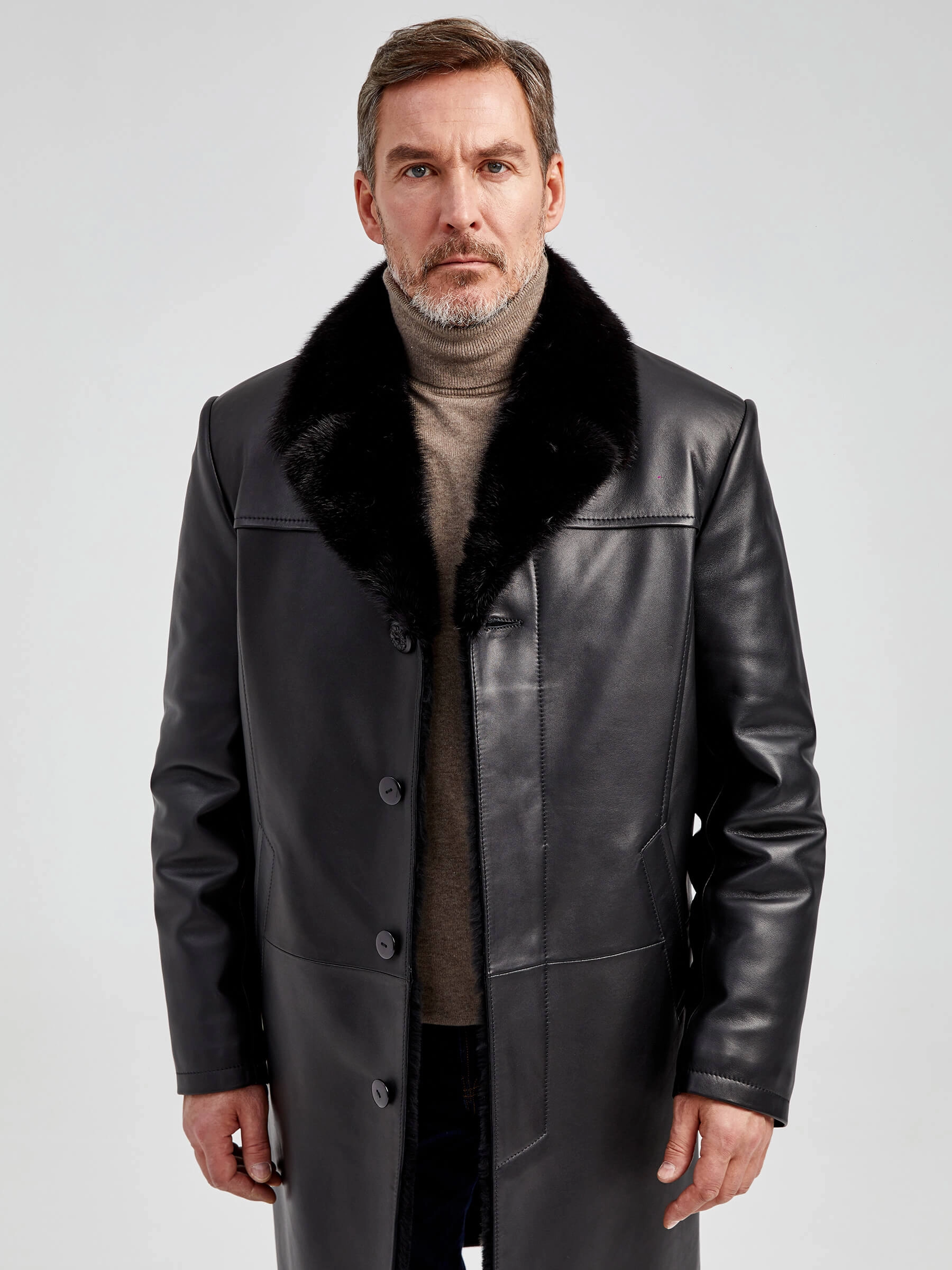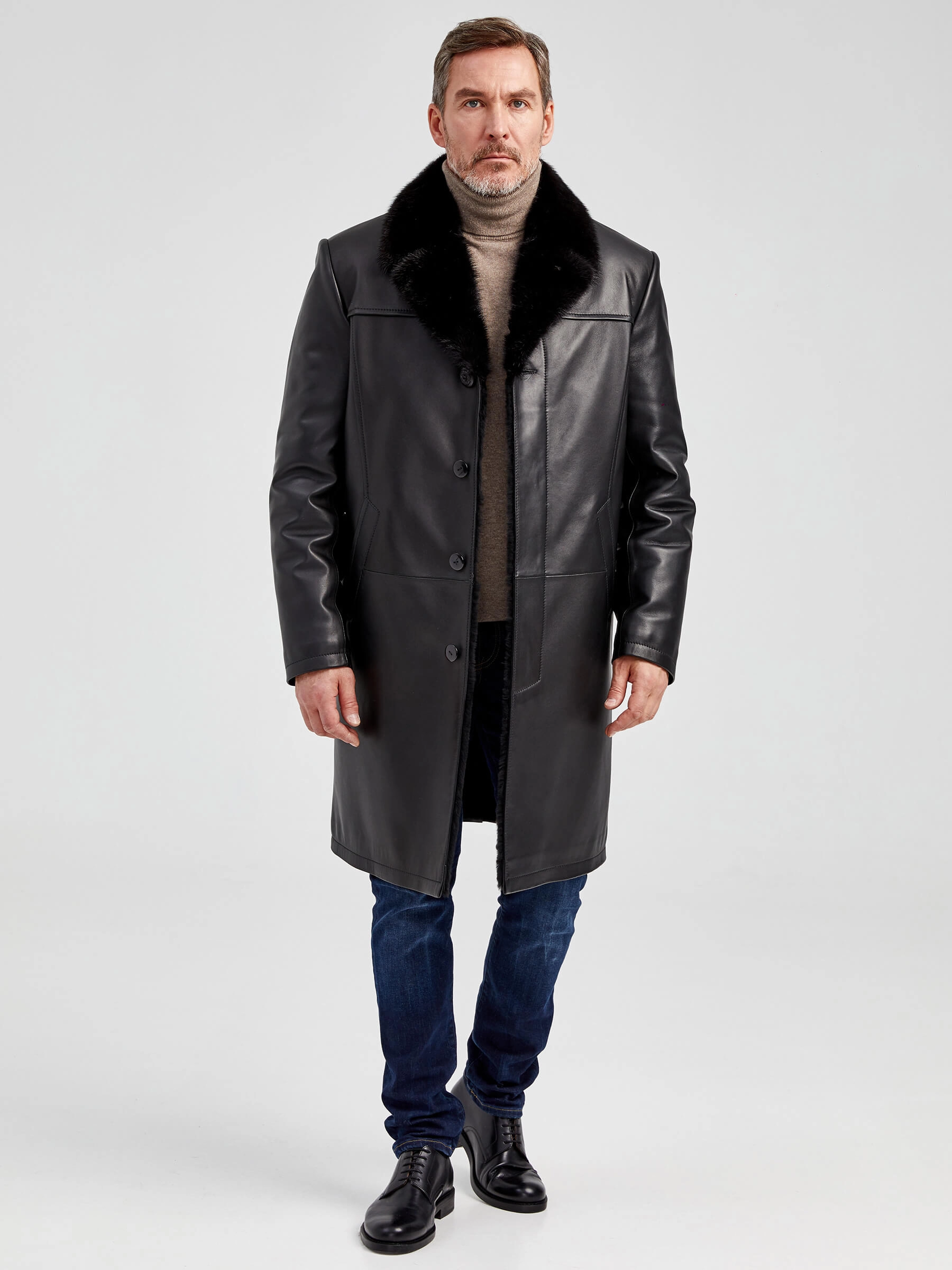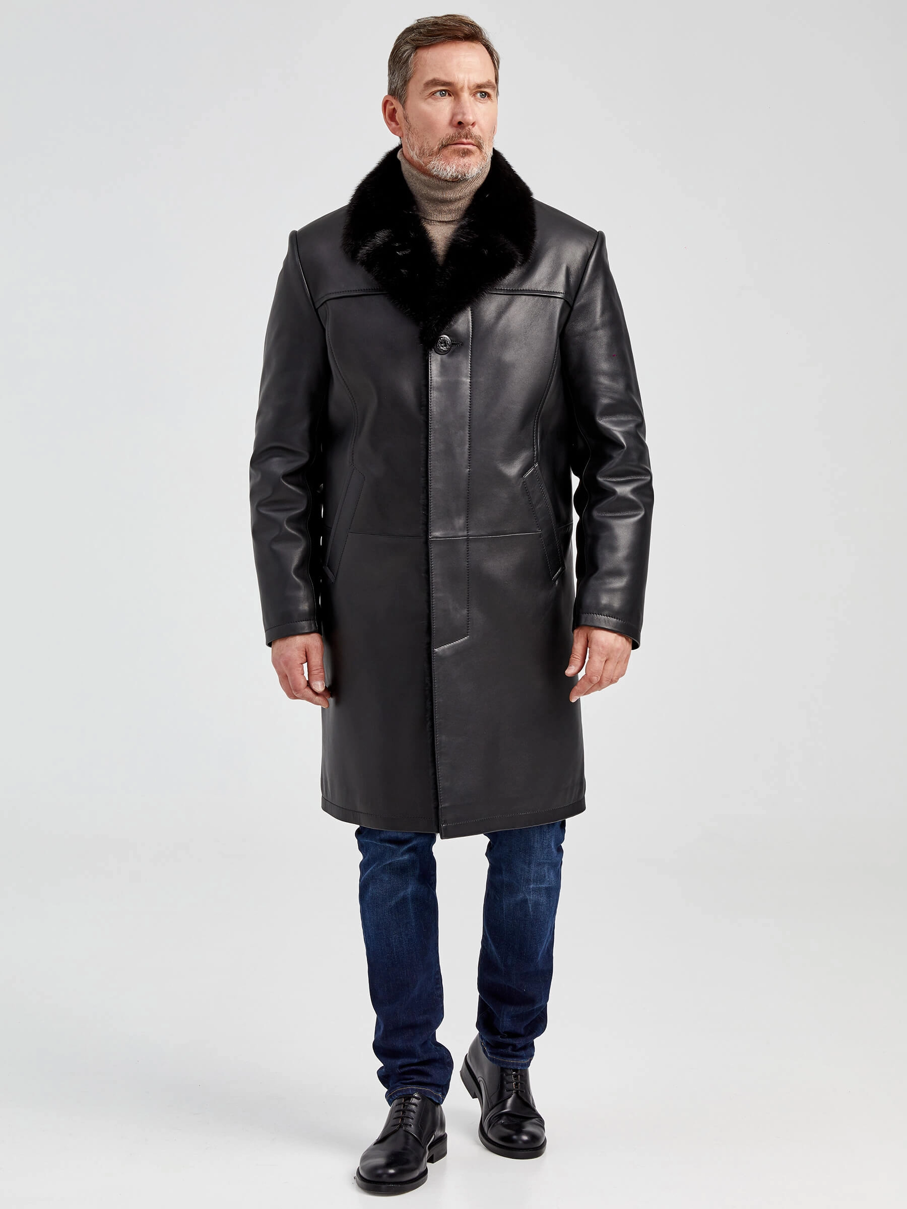 Товар мужское зимнее кожаное пальто с норковым воротником премиум класса 533мех, черное, размер 50, артикул 71062 выполнен из натуральной кожи с застежкой пуговицы. Рассчитан на сезон: осень-зима. Длина изделия 104 см, силуэт прямой.