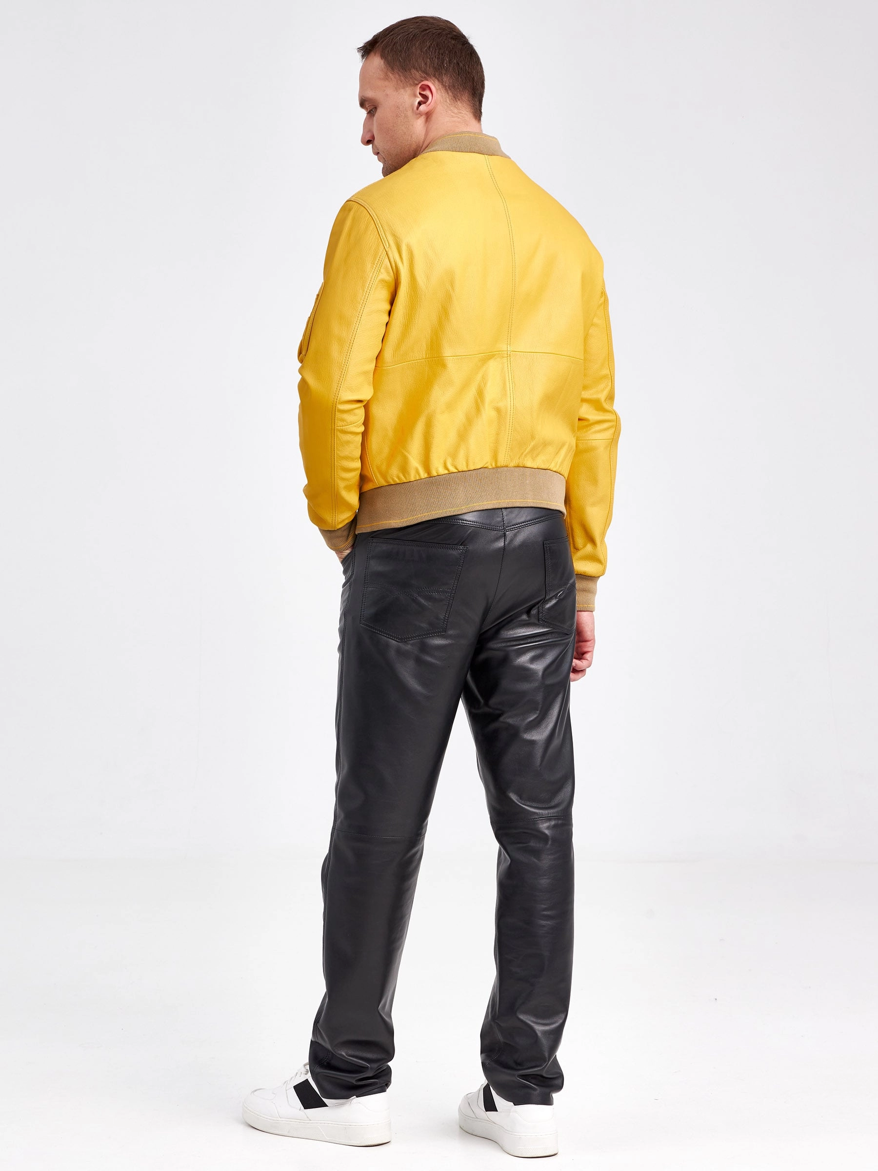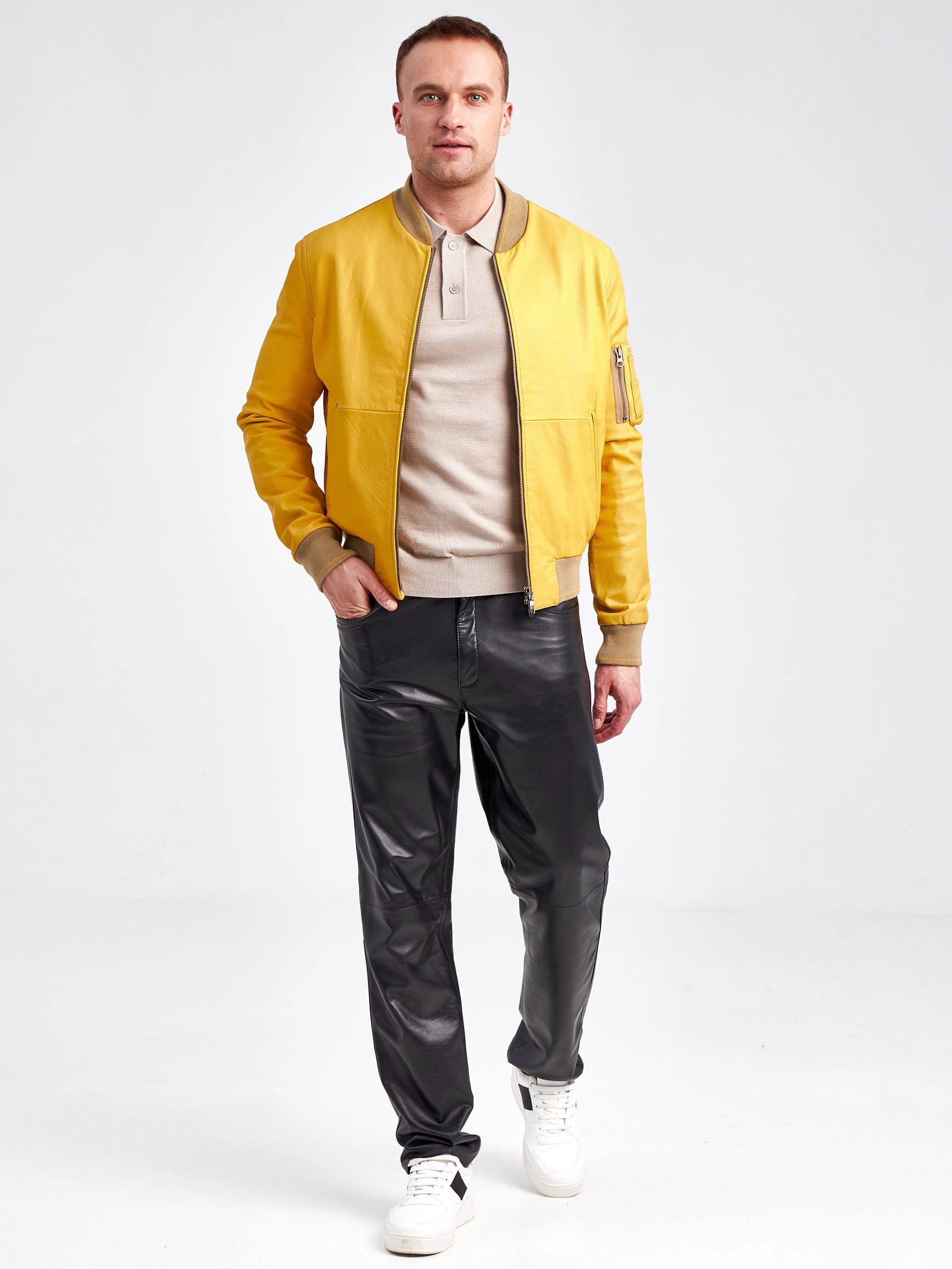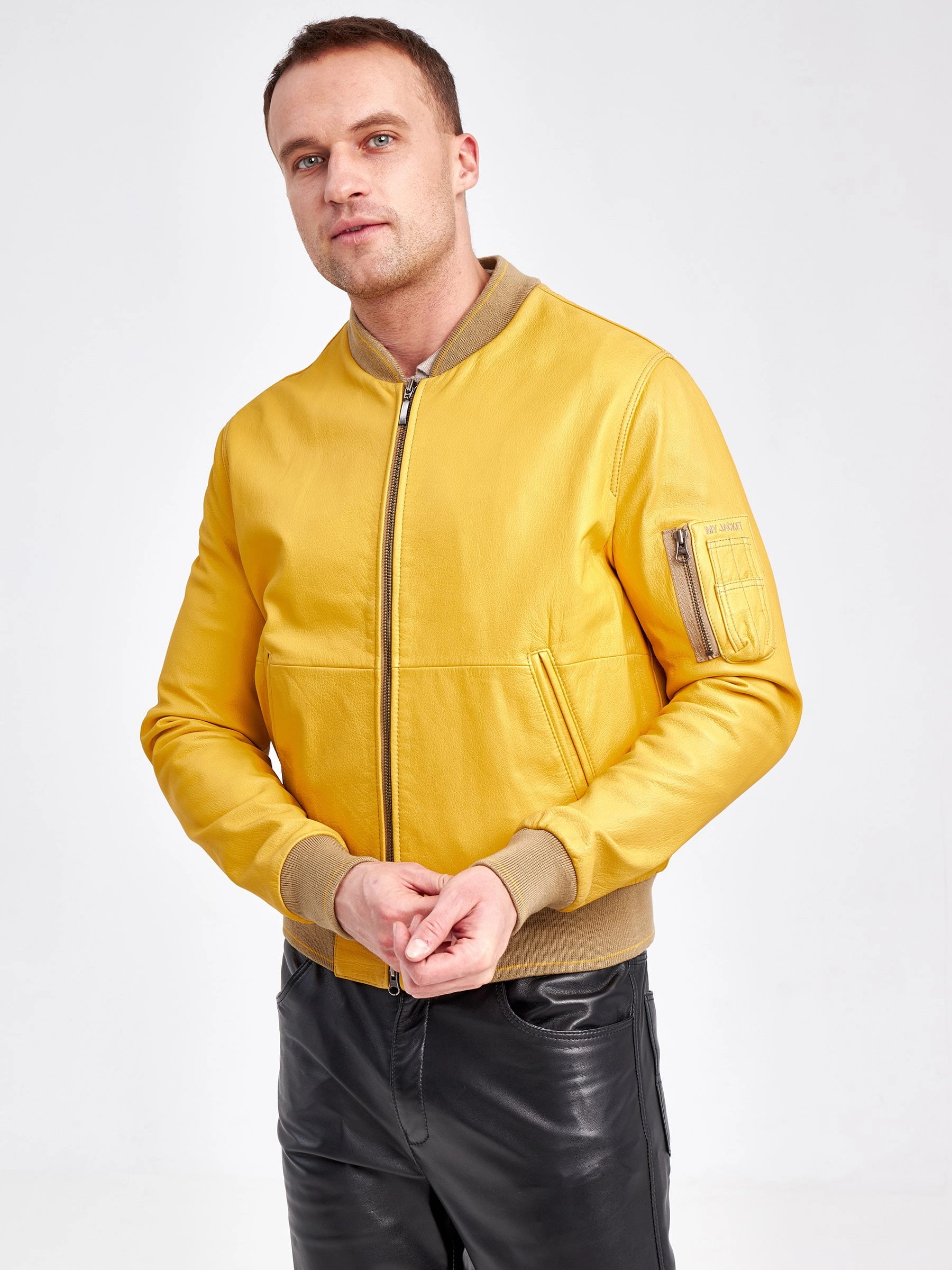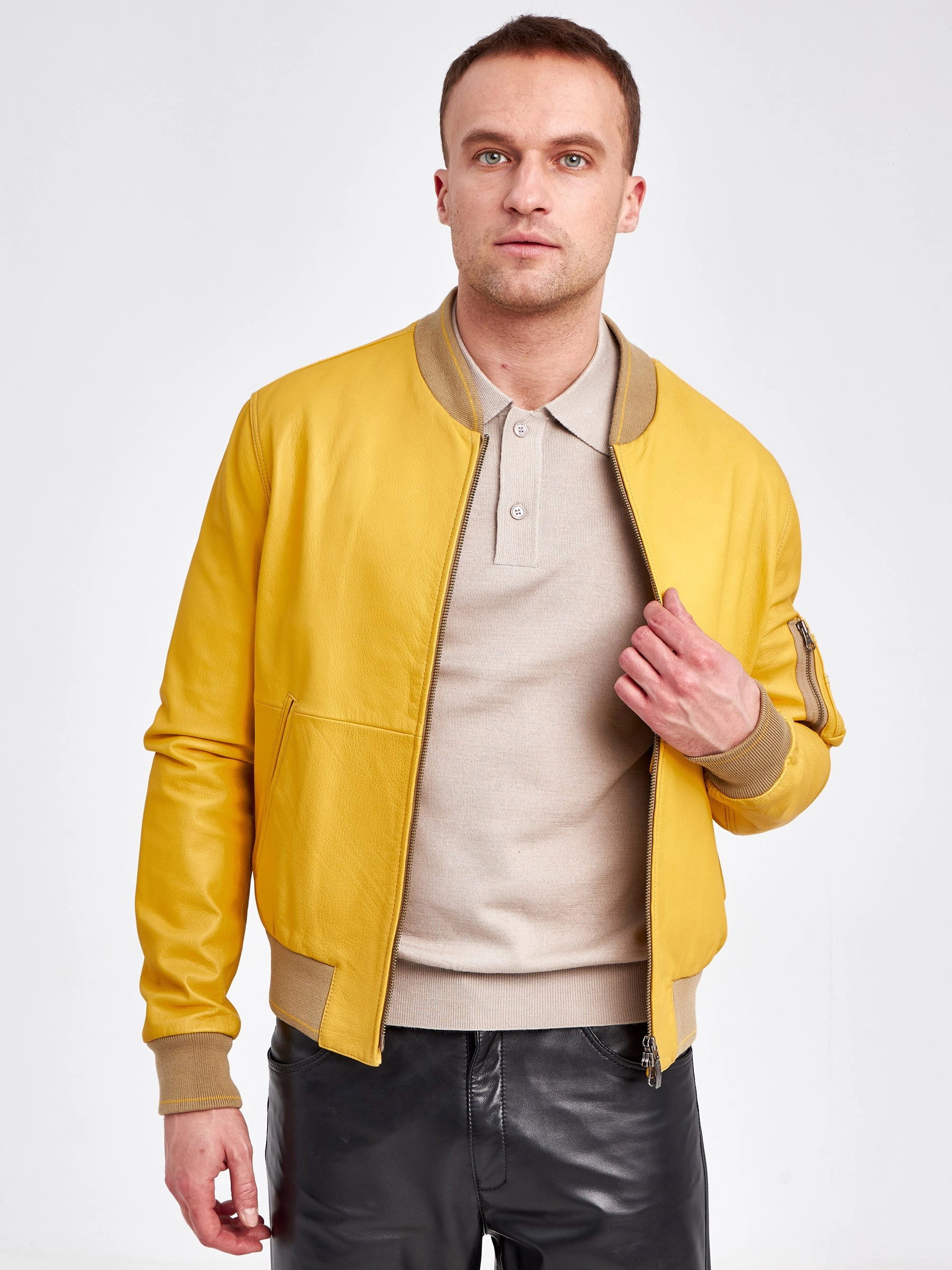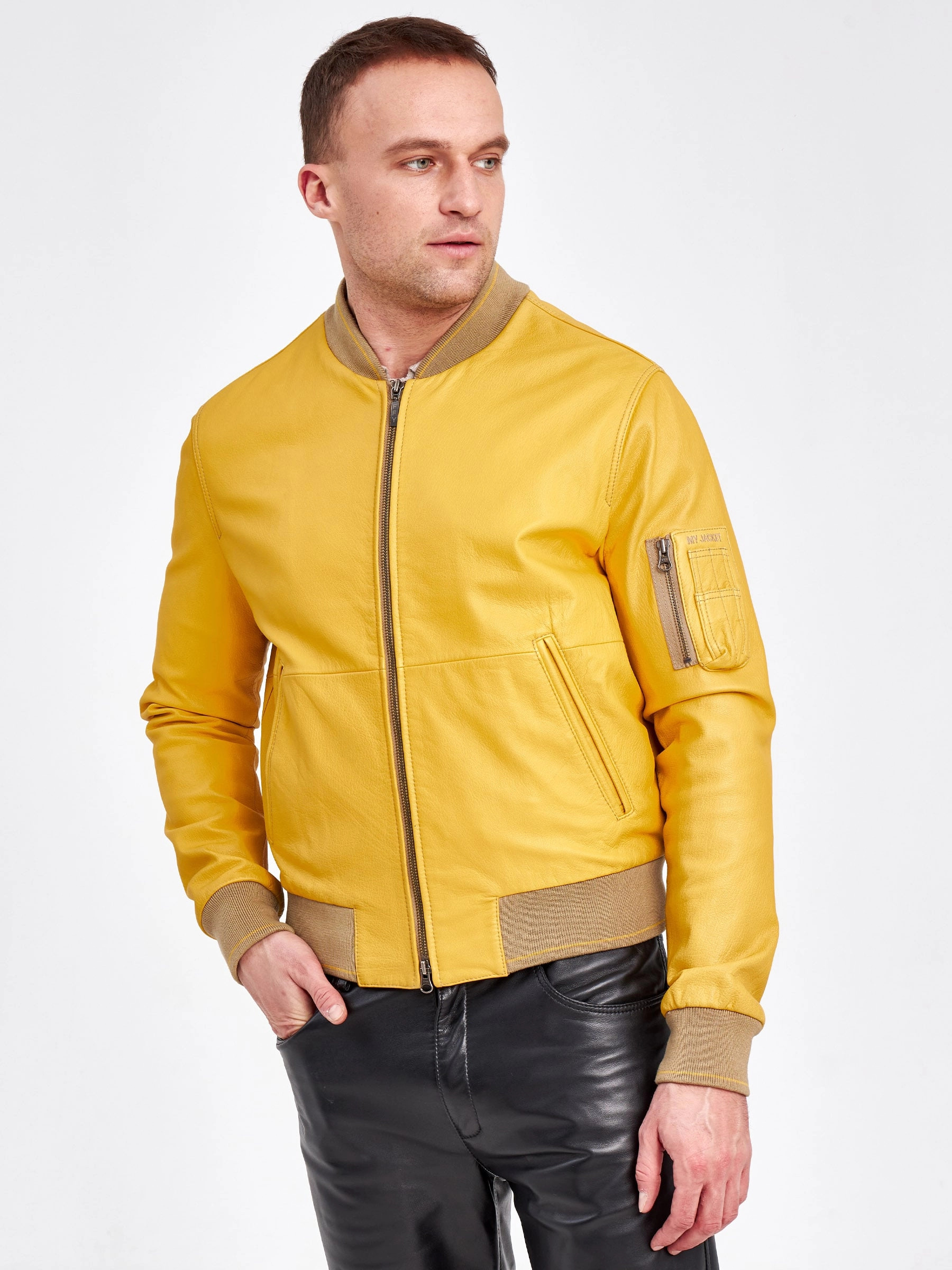 Кожаная куртка бомбер мужская 1119, желтая, размер 48, артикул 29520