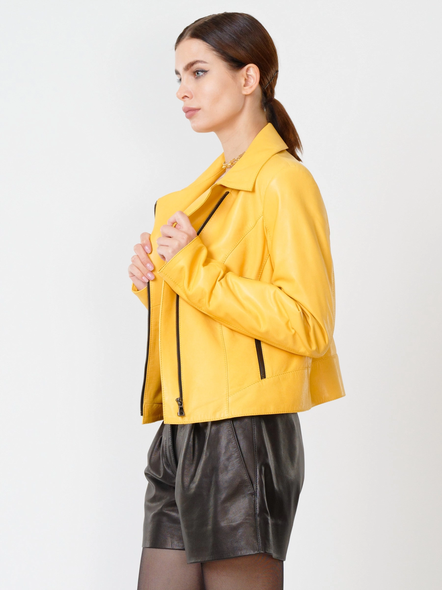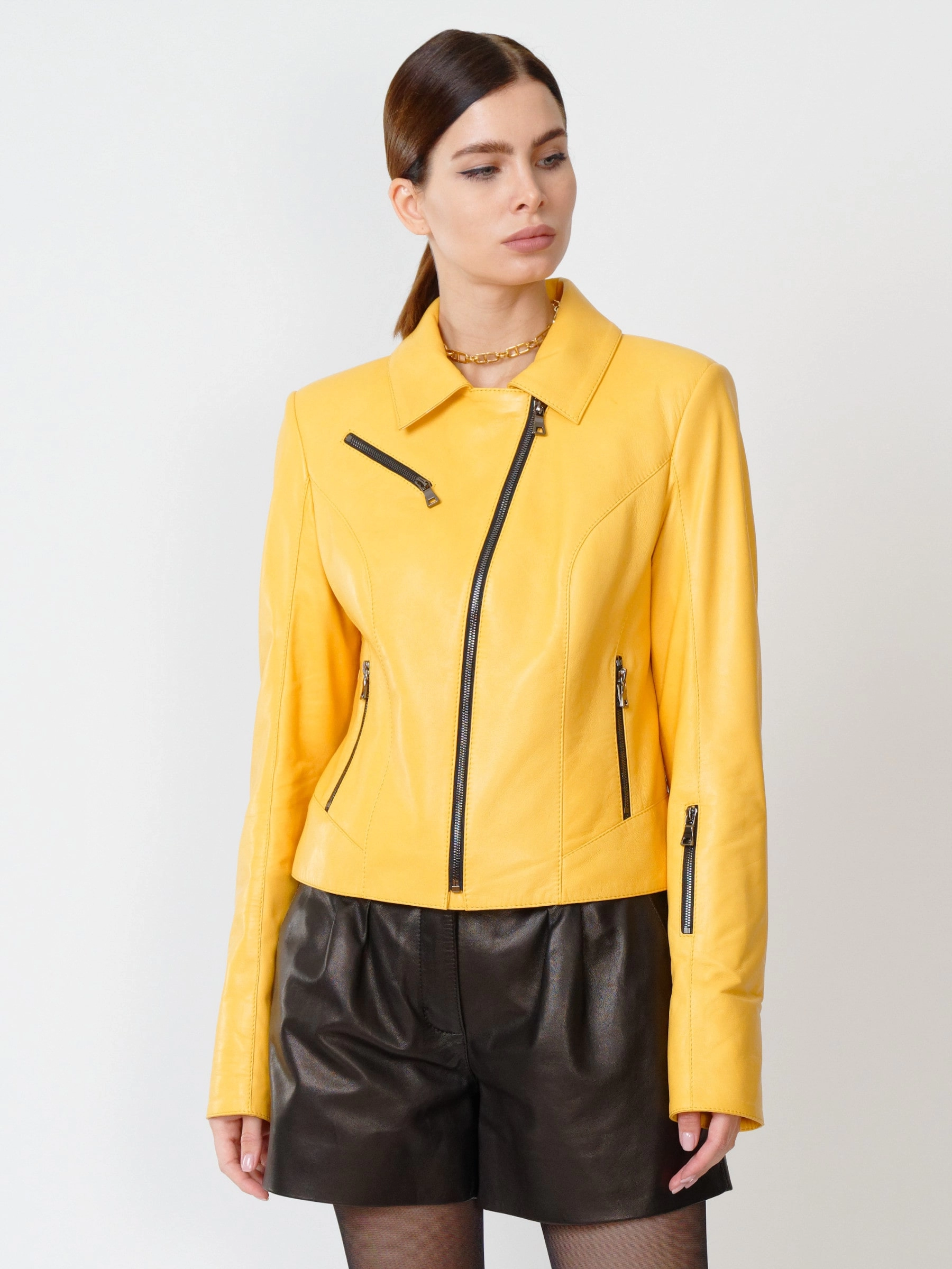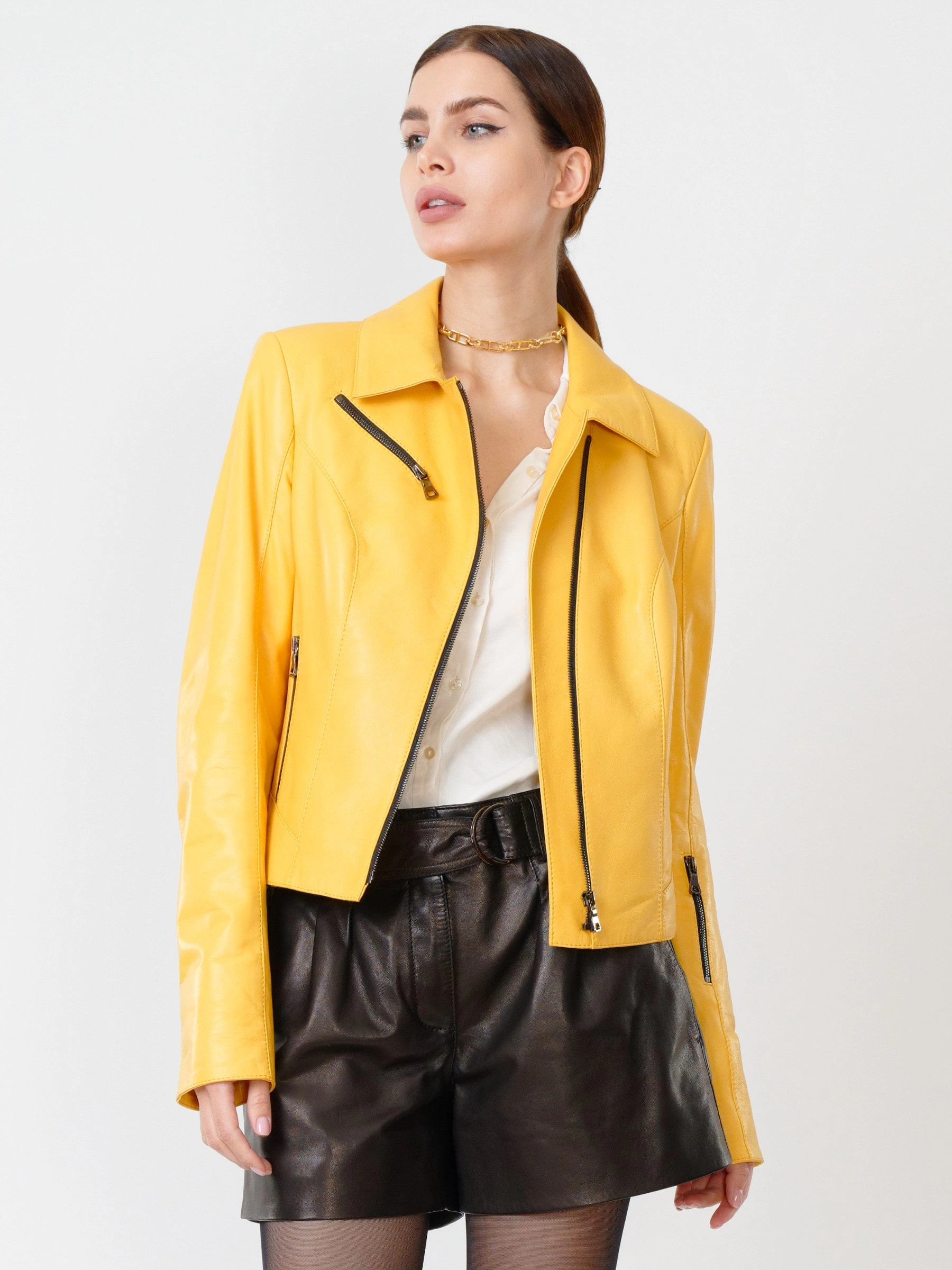 Кожаный комплект женский: Куртка 3005 + Шорты 01, желтый/черный, р. 44, арт. 111120