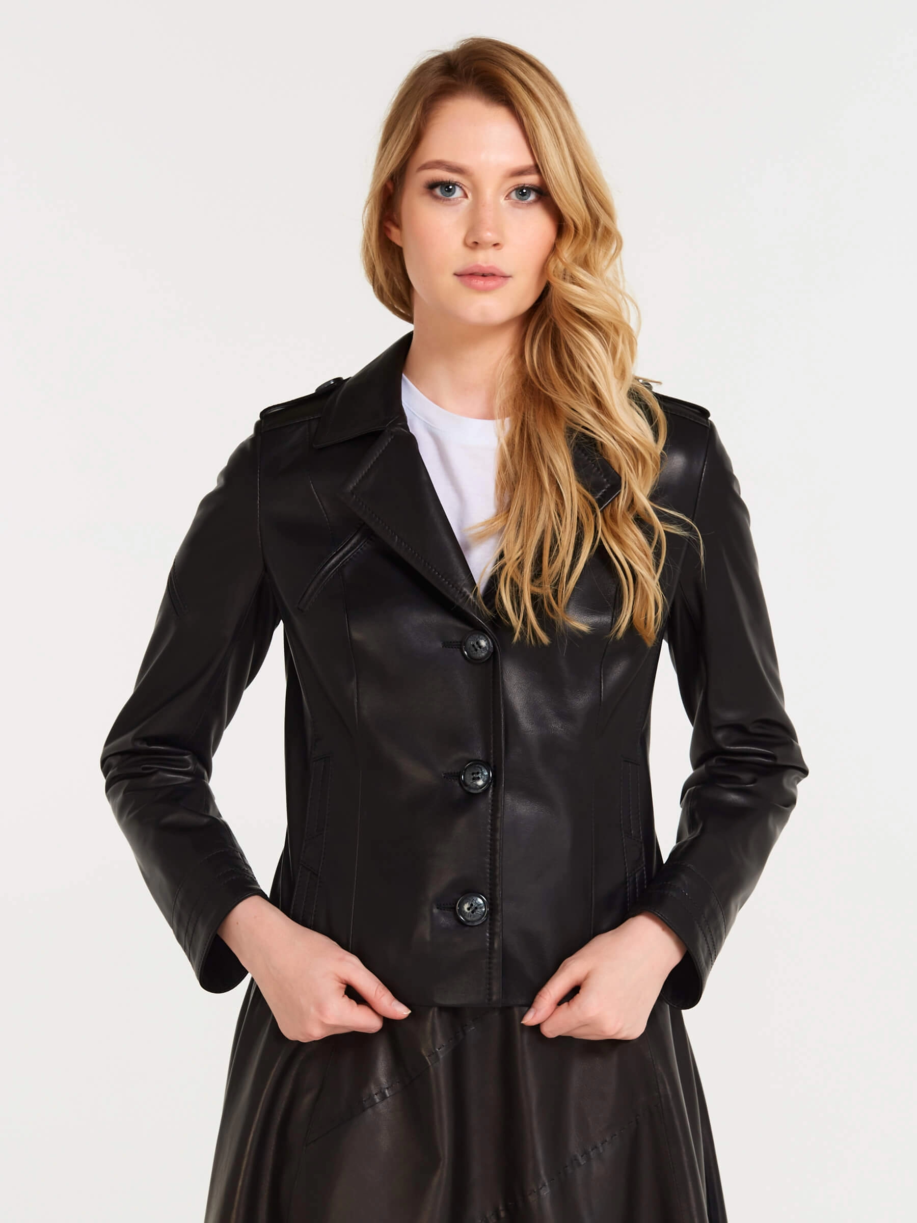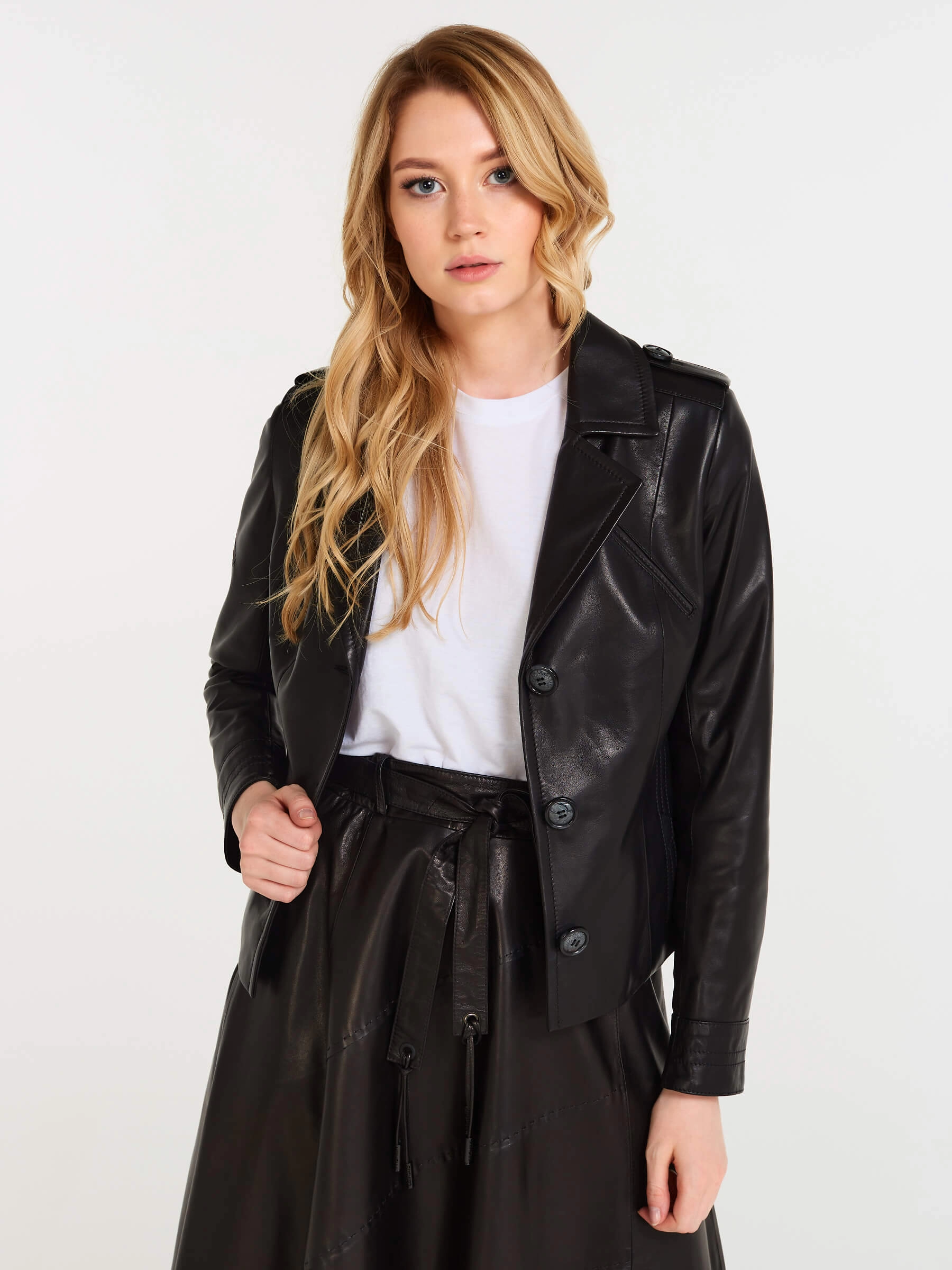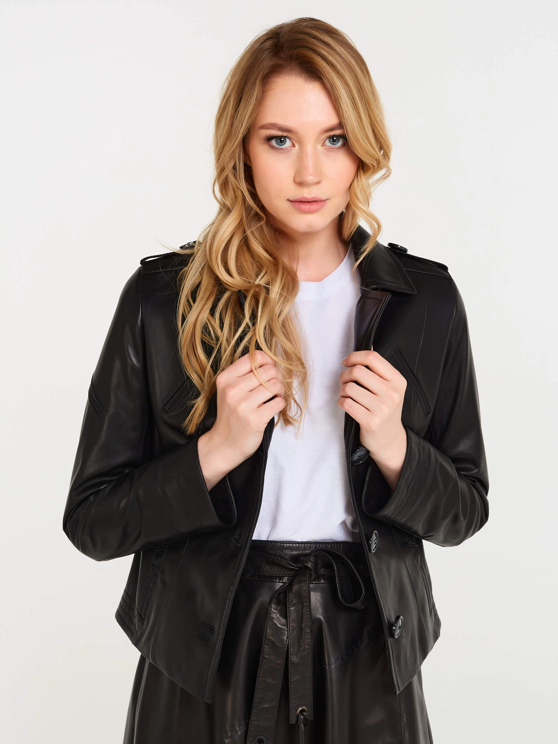 Товар кожаный комплект женский: куртка 304 + юбка 01рс, черный, р. 44, арт. 111143.