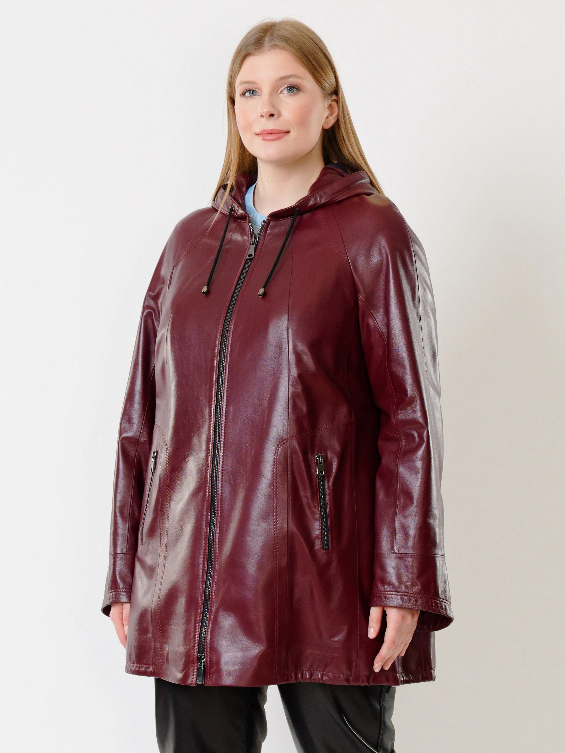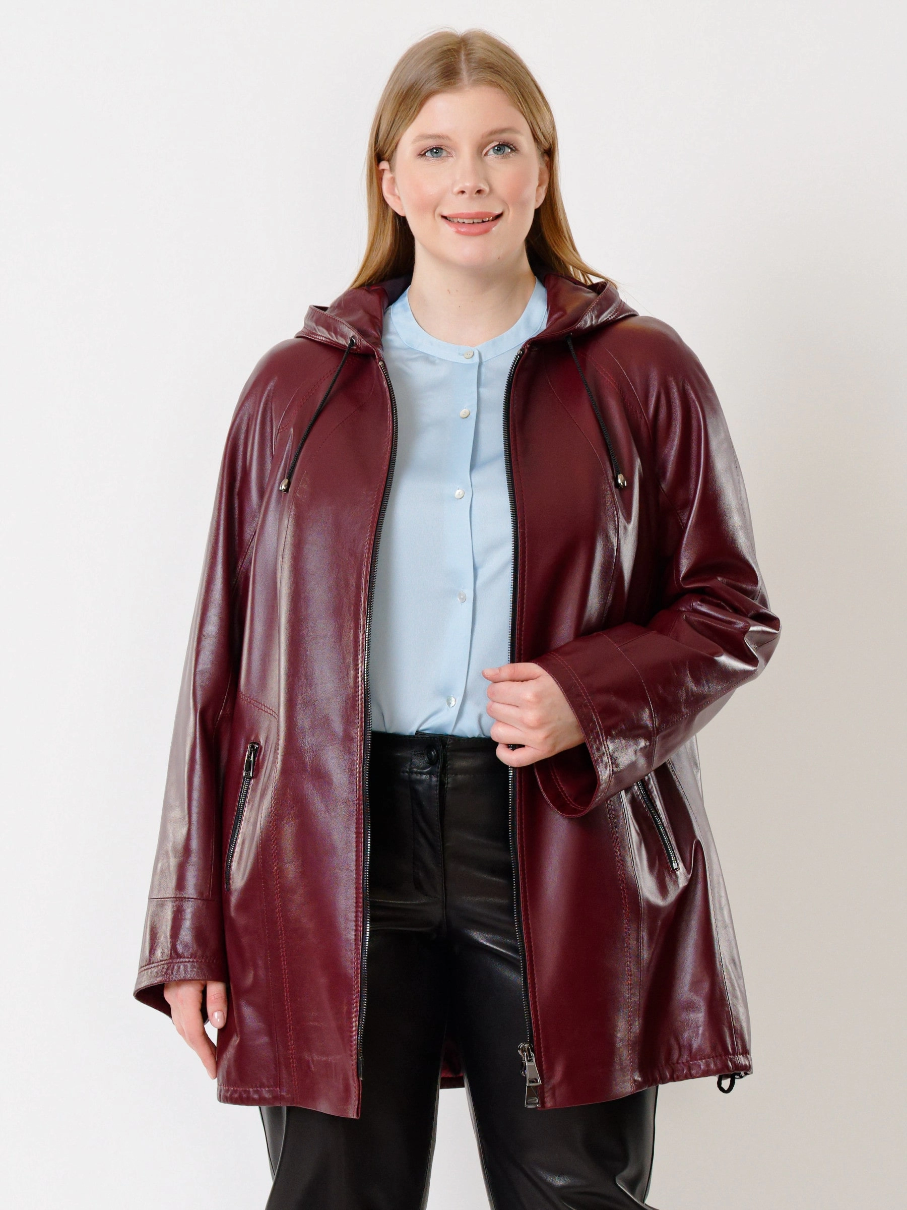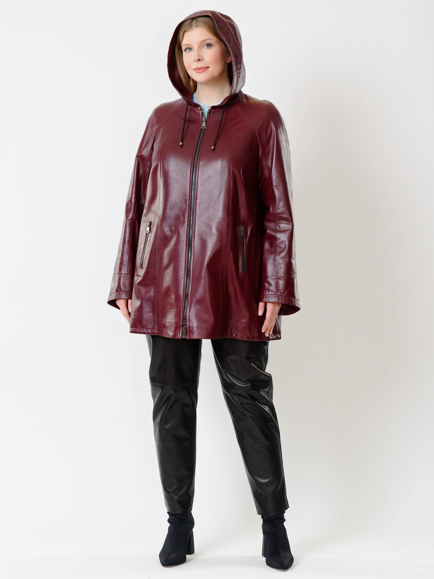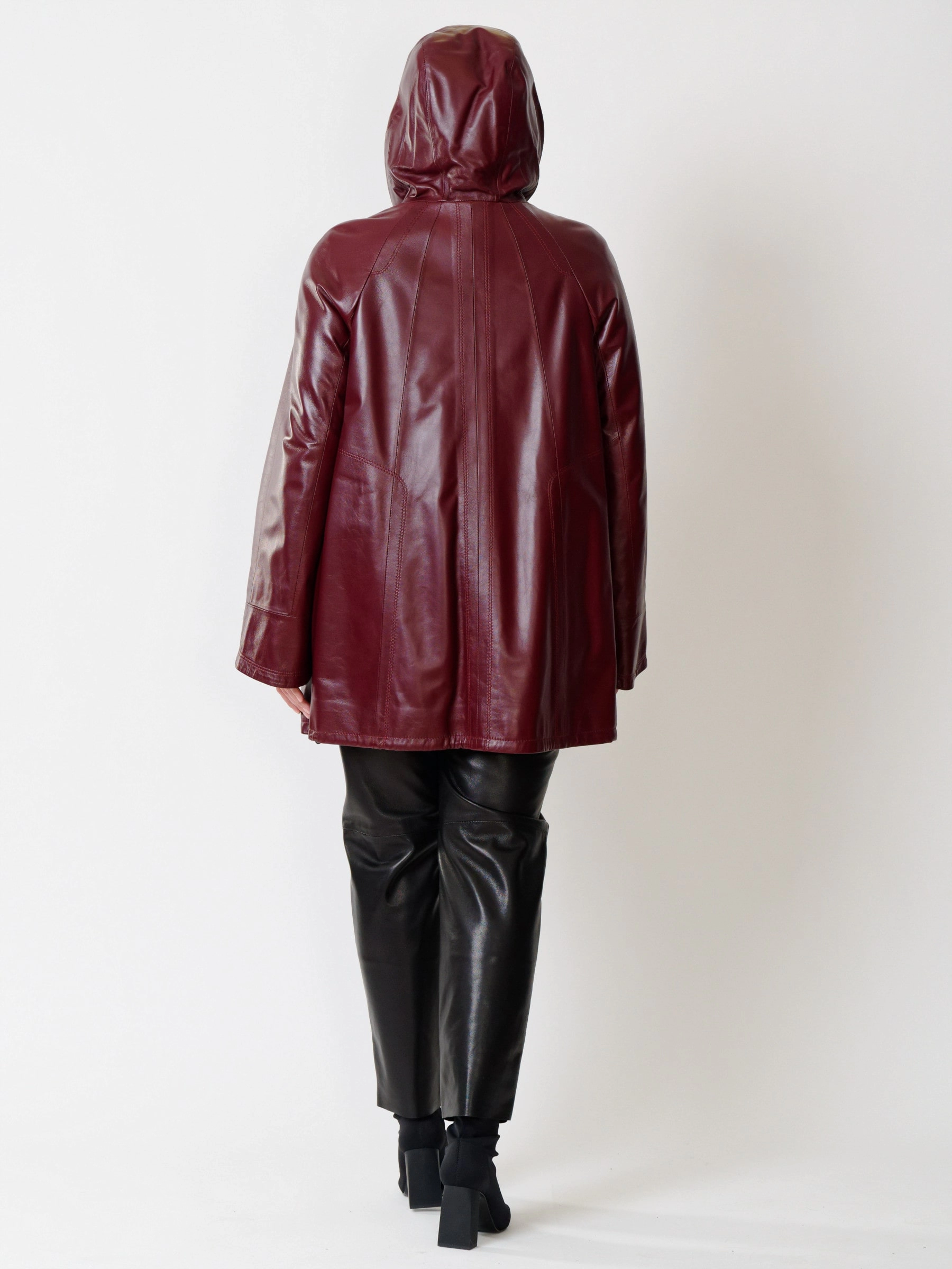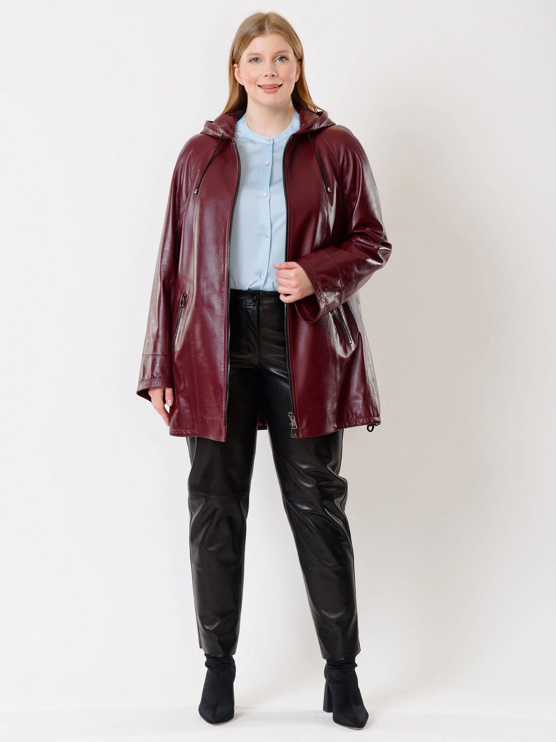 Товар кожаный комплект женский: куртка 383 + брюки 04, бордовый/черный, р. 48, арт. 111178.