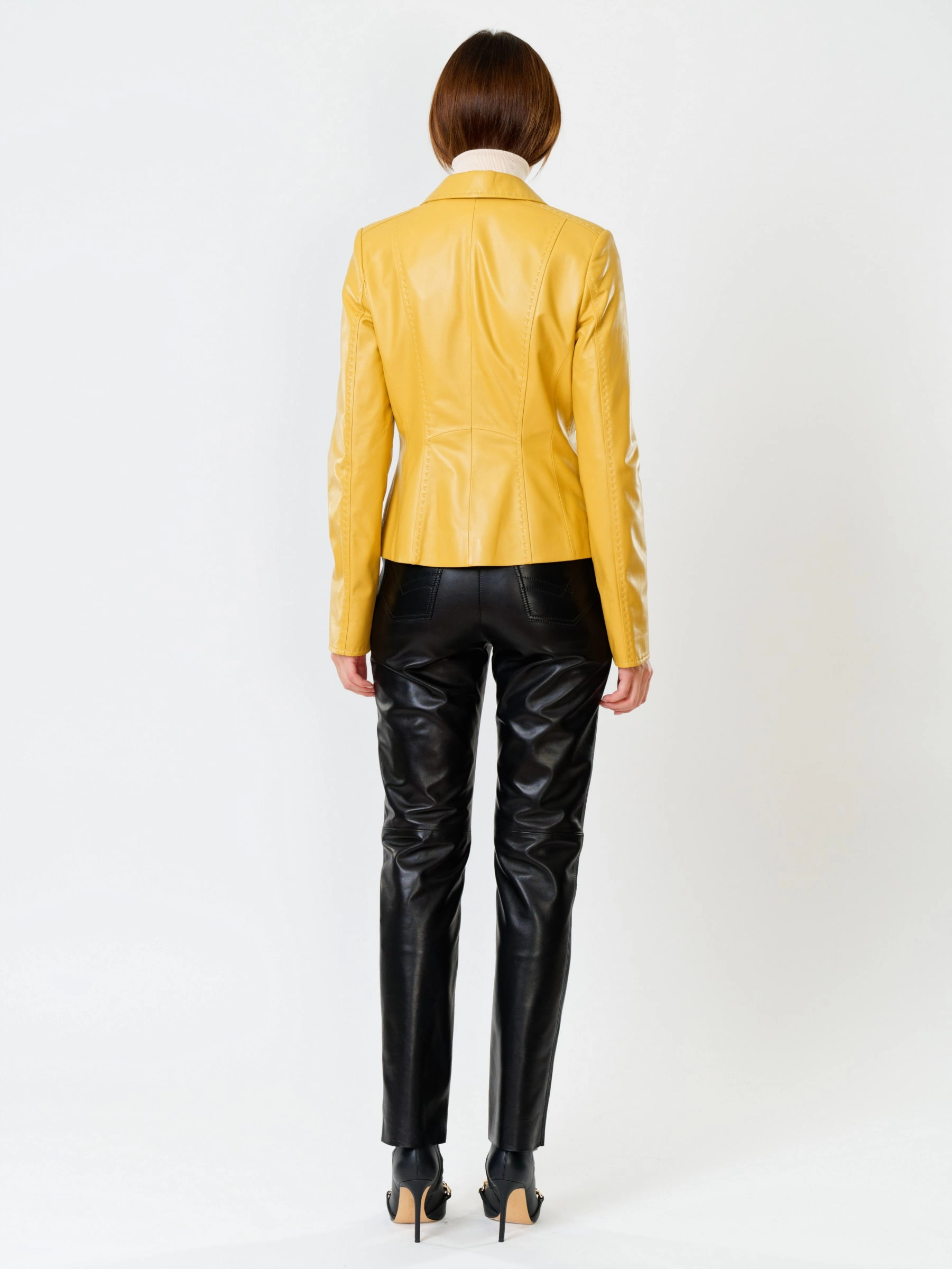 Кожаный костюм женский: Пиджак 316рс + Брюки 03, желтый/черный, р. 44, арт. 111152