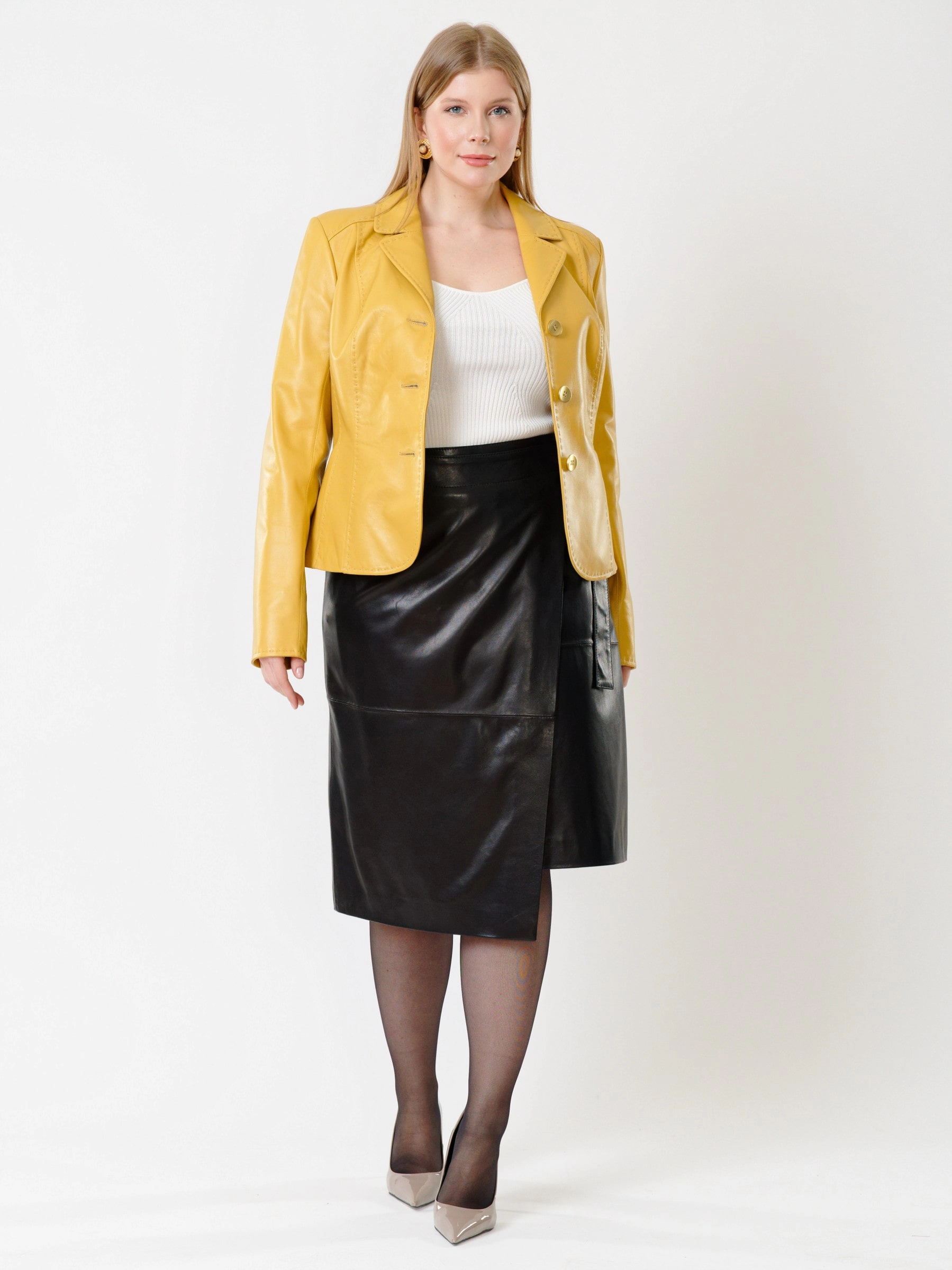 Товар кожаный костюм женский: пиджак 316рс + юбка 07, желтый/черный, р. 44, арт. 111204.