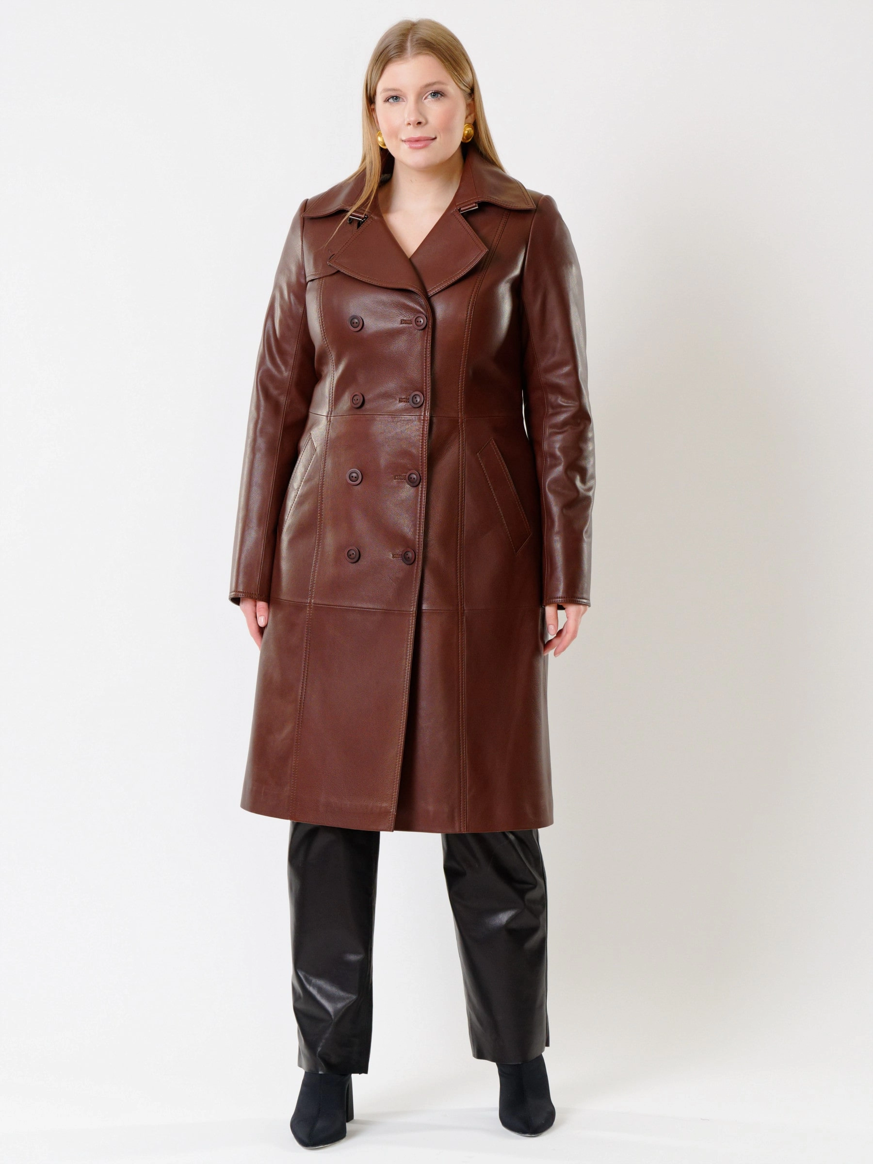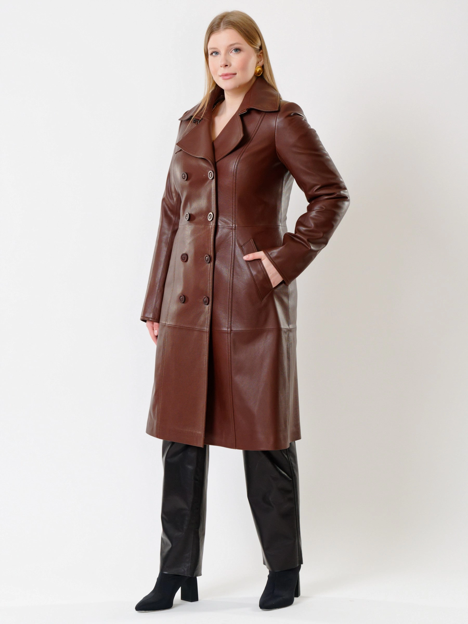 Кожаный комплект женский: Плащ 3003 + Брюки 04, ореховый/черный, р. 46, арт. 111131
