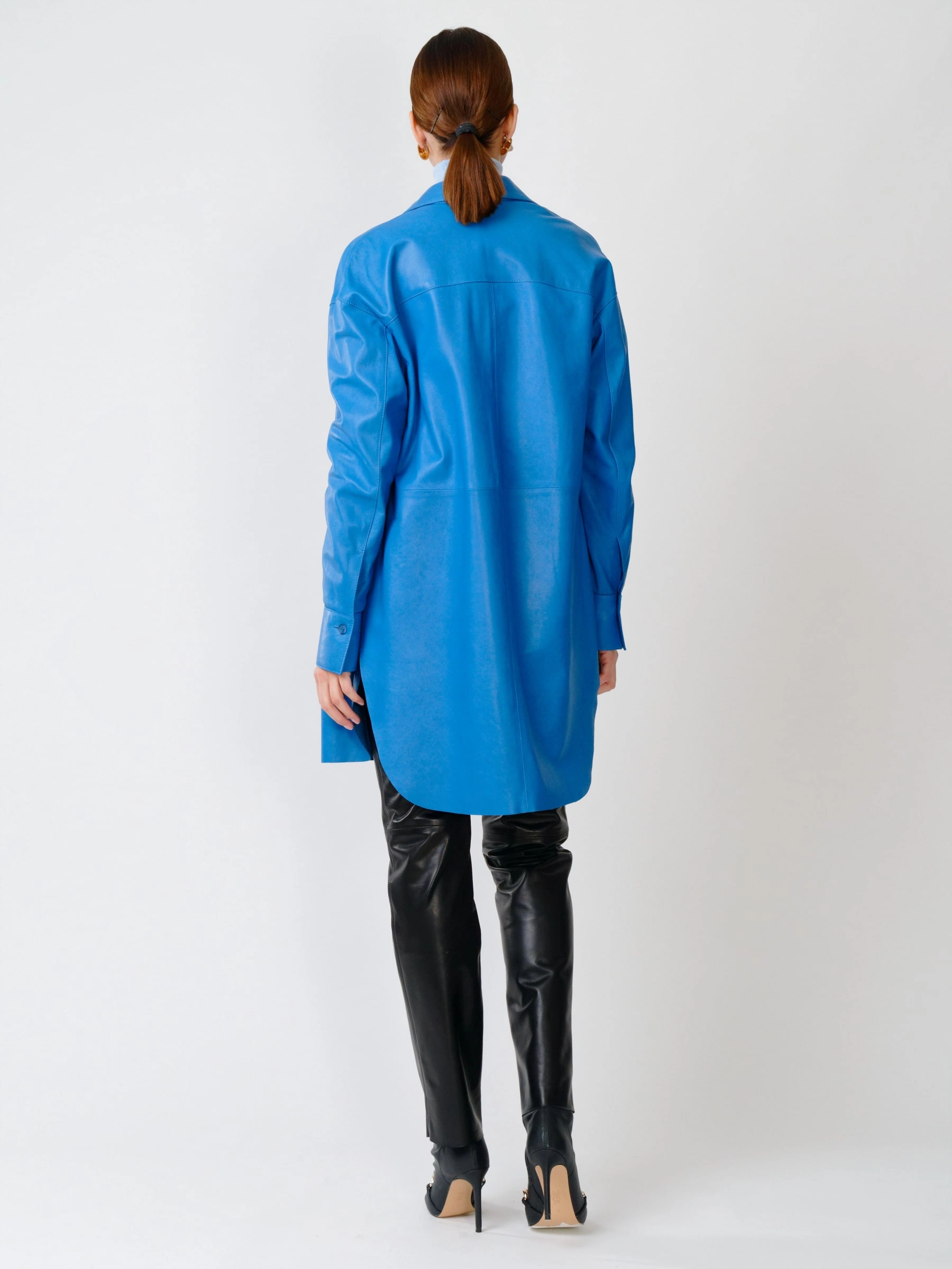 Кожаный костюм женский: Рубашка 01_1 + Брюки 02, голубой/черный, р. 46, арт. 111130