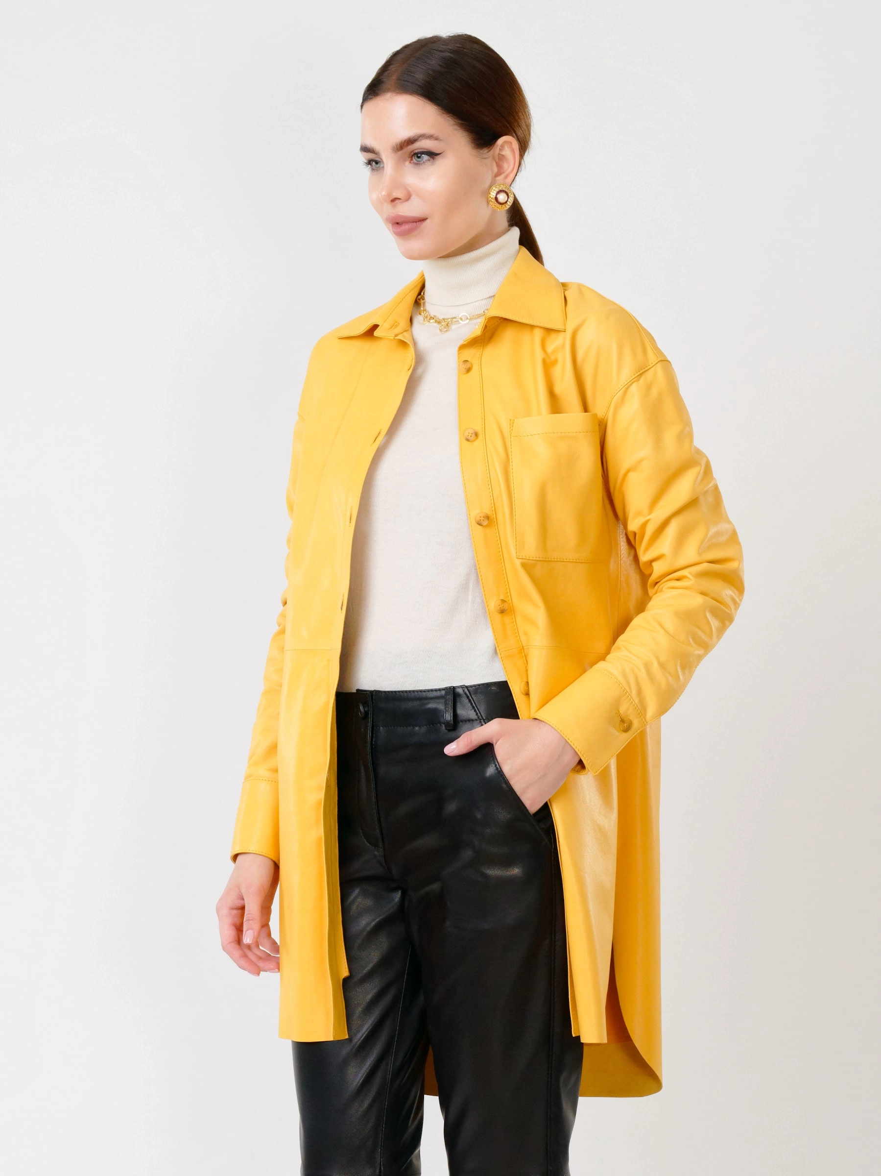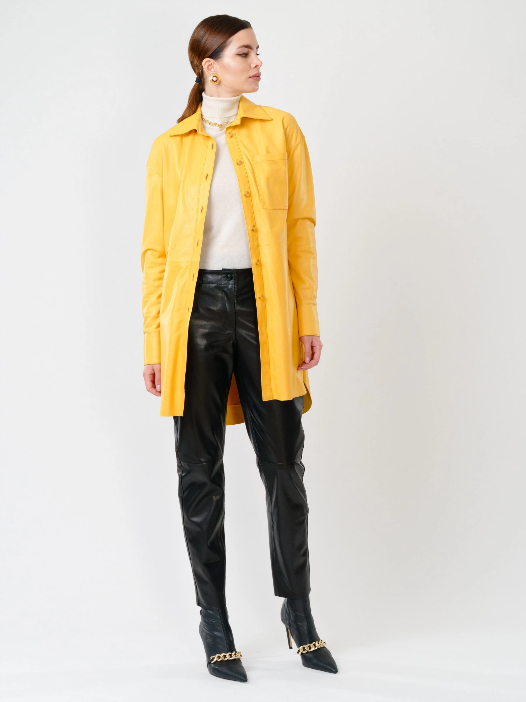 Товар кожаный костюм женский: рубашка 01_1 + брюки 03, желтый/черный, р. 46, арт. 111129. Рассчитан на сезон: весна-лето.