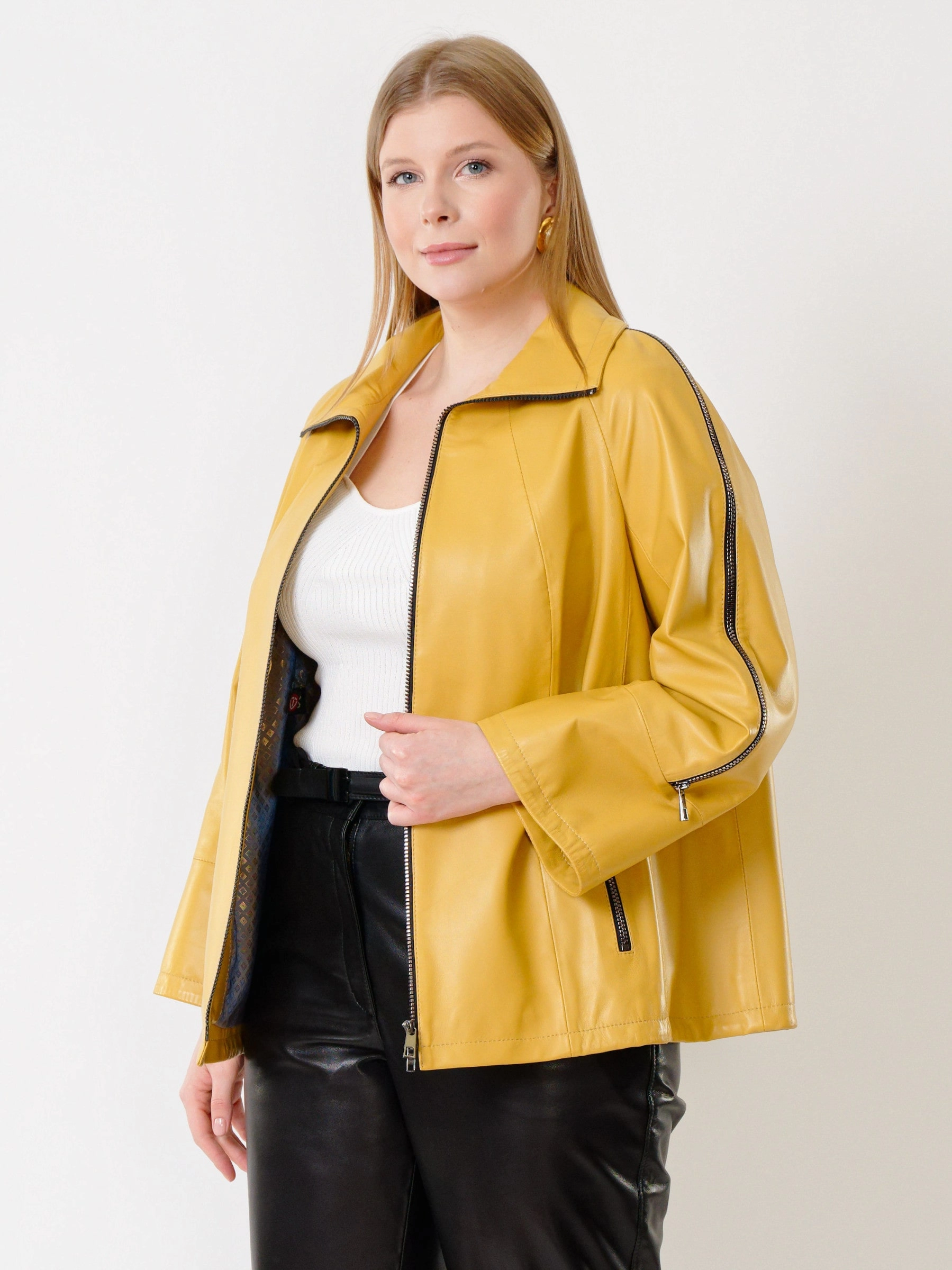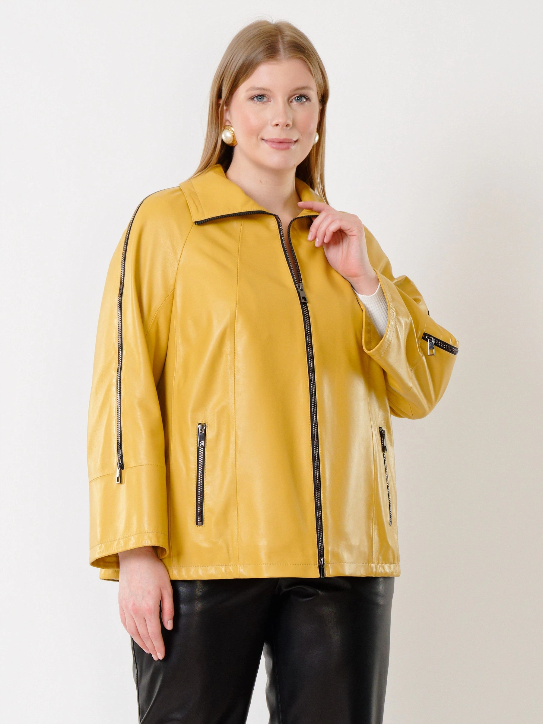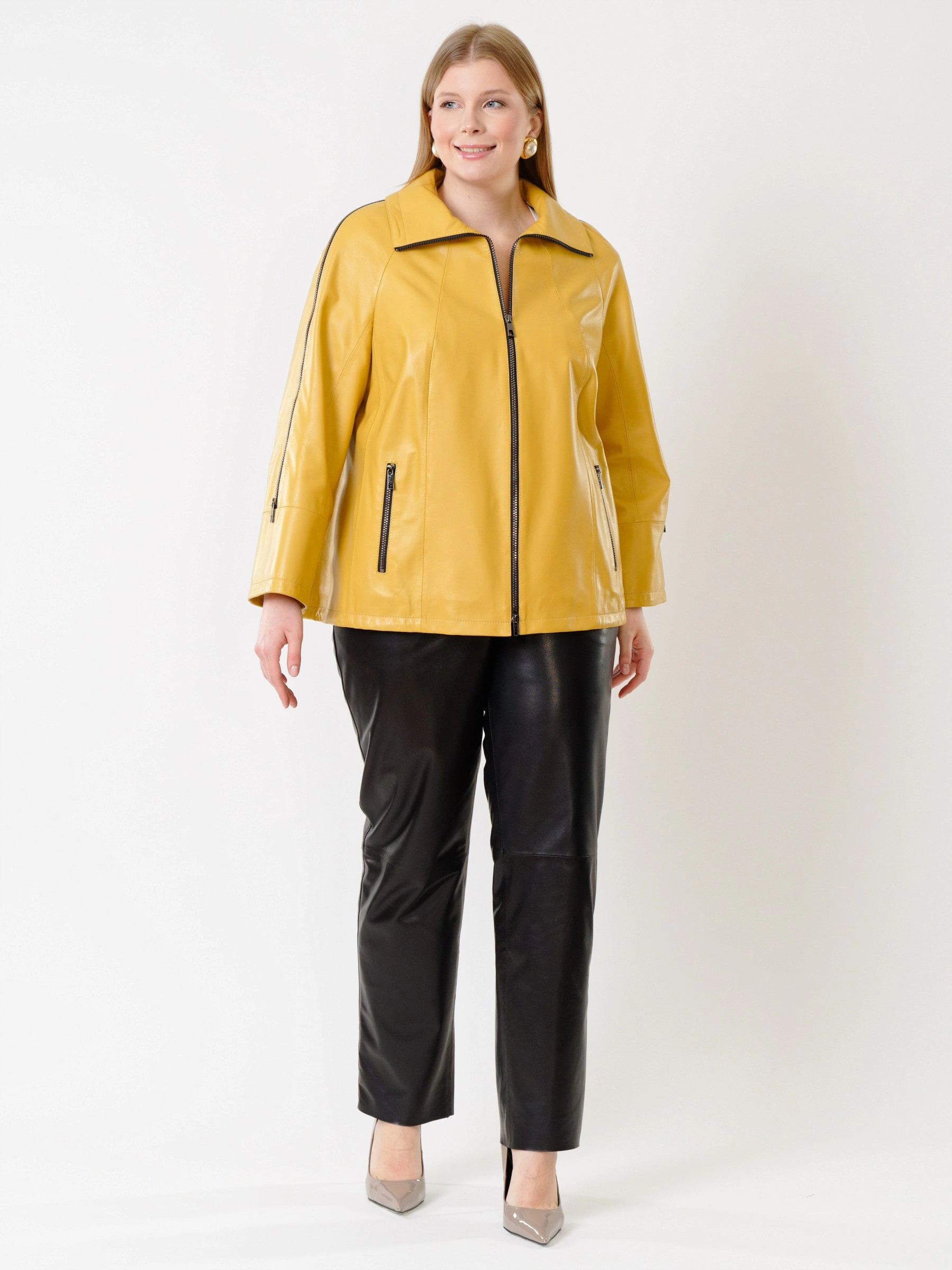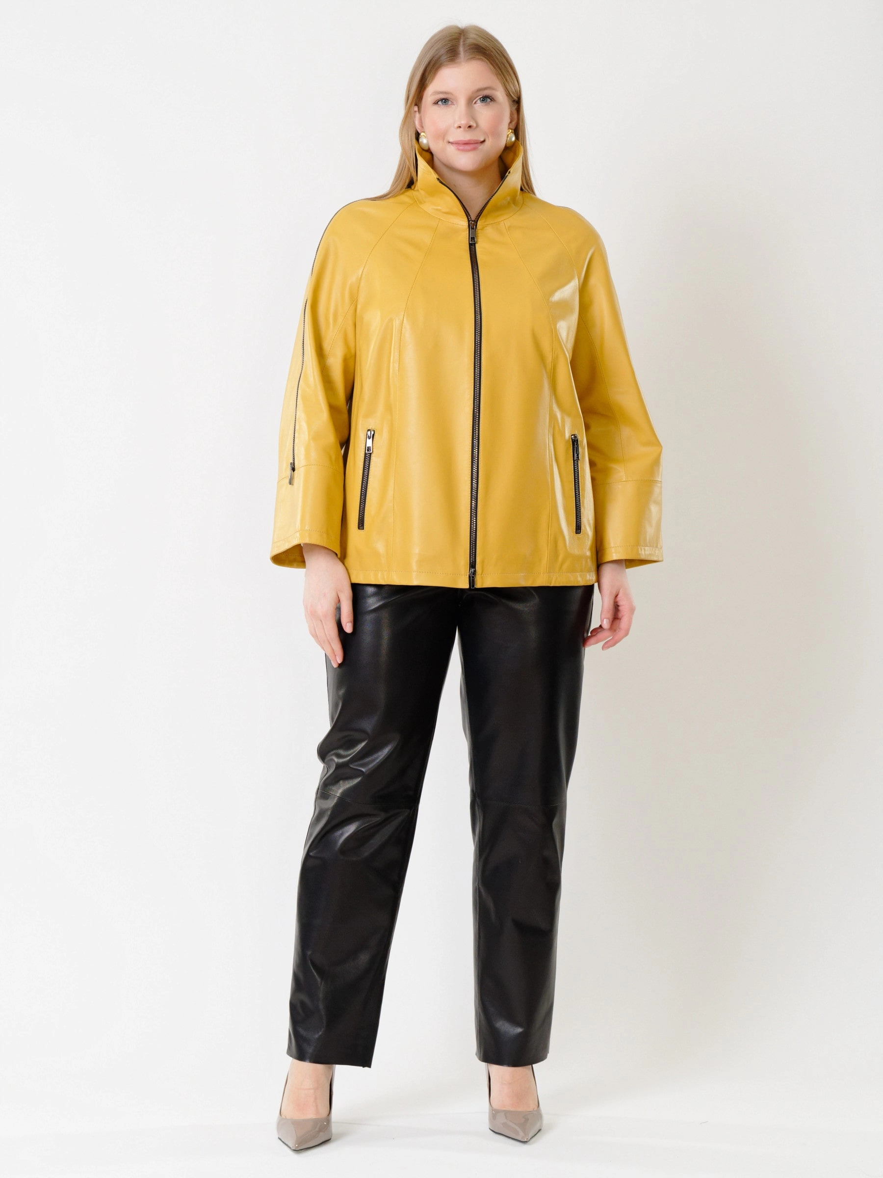 Кожаный комплект женский: Куртка 385 + Брюки 04, желтый/черный, р. 48, арт. 111382