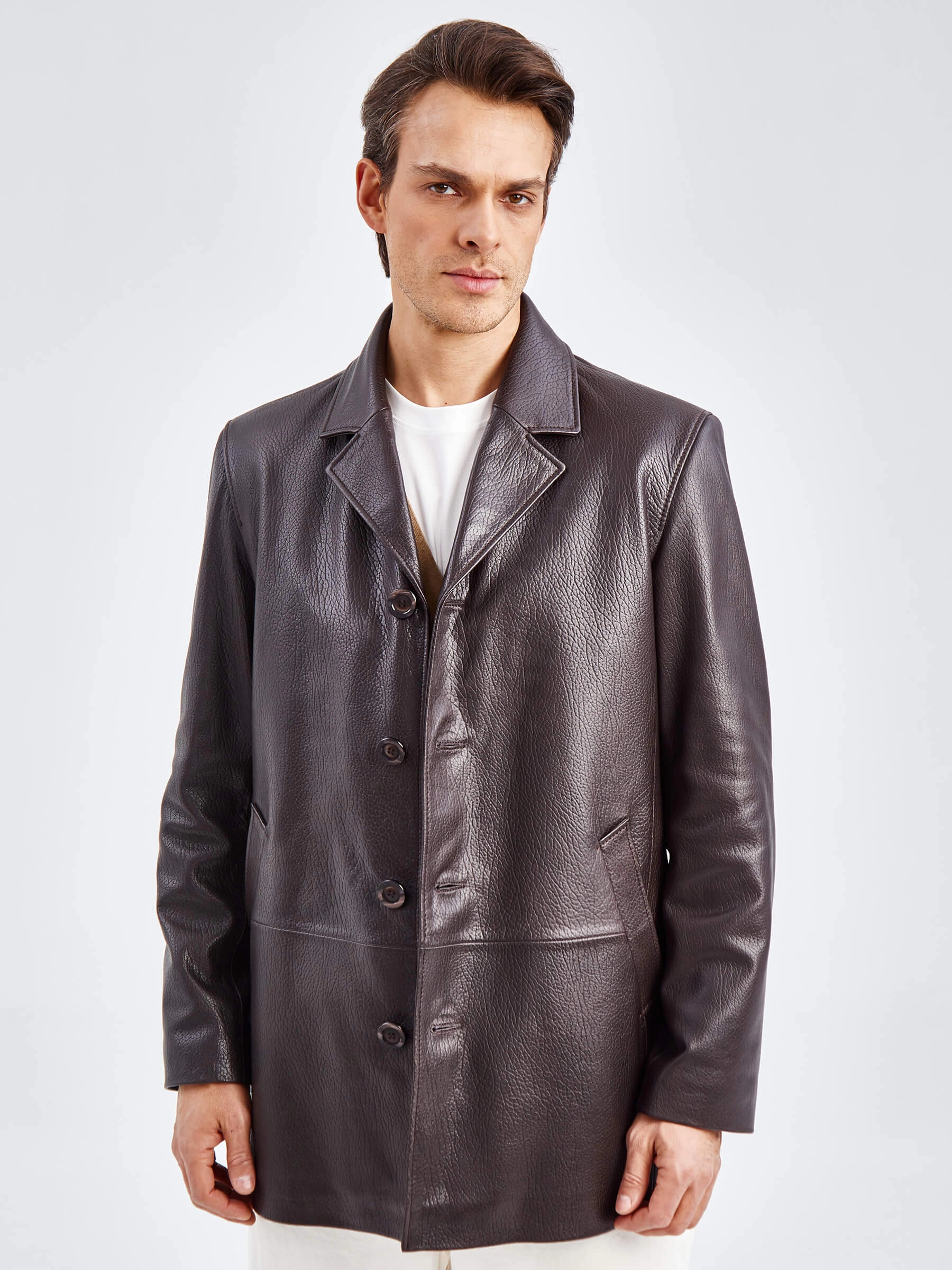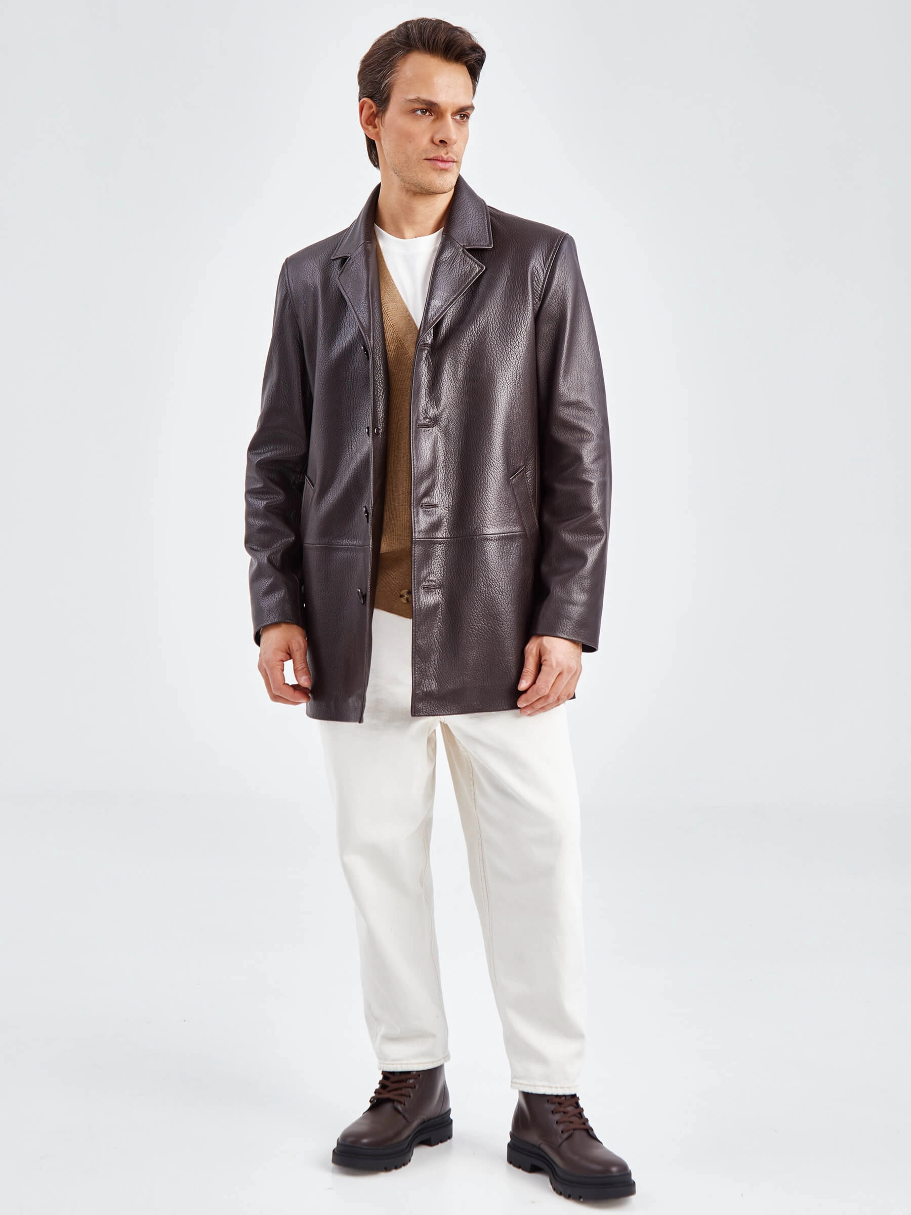 Кожаный пиджак мужской премиум класса 21/1, коричневый, размер 50, артикул 27300