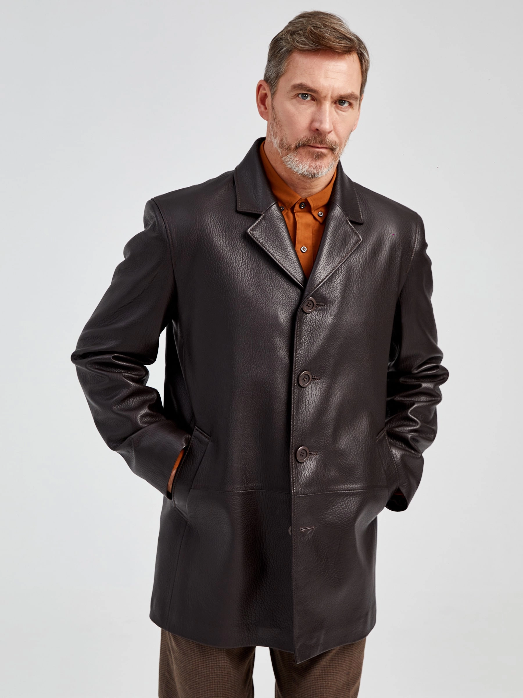 Товар кожаный пиджак мужской премиум класса 21/1, коричневый, размер 50, артикул 29021 выполнен из натуральной кожи с застежкой пуговицы. Рассчитан на сезон: демисезон. Длина изделия 86 см, силуэт прямой.