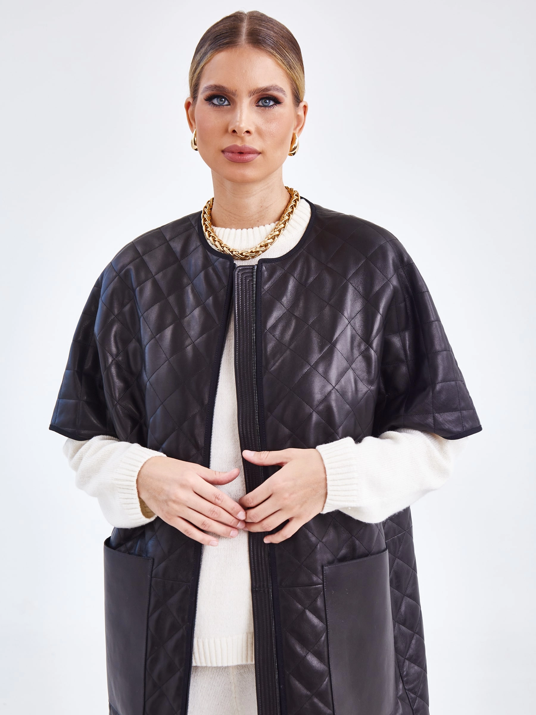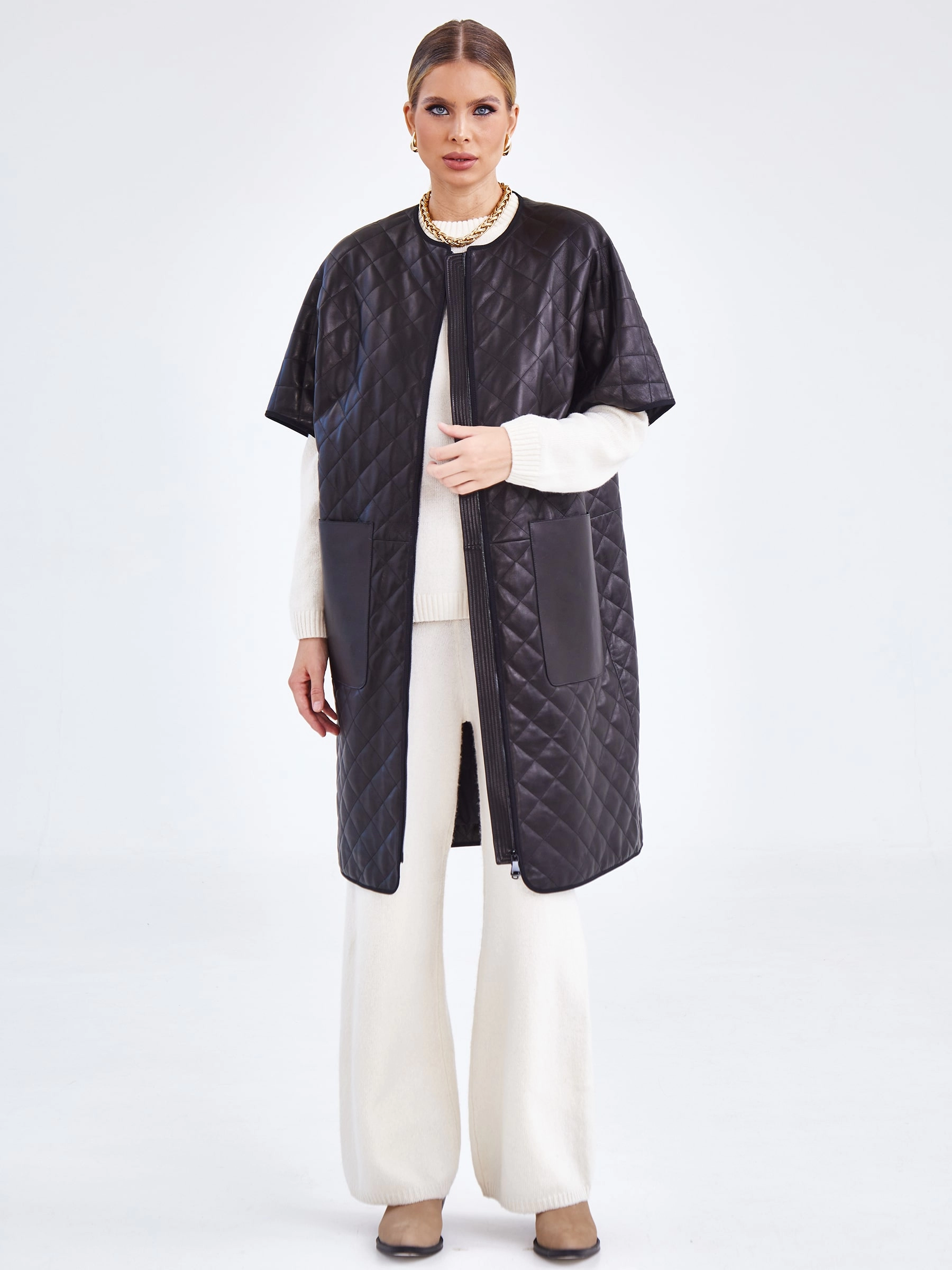 Кожаный женский стеганый жилет премиум класса 07, черный, размер 44, артикул 91971