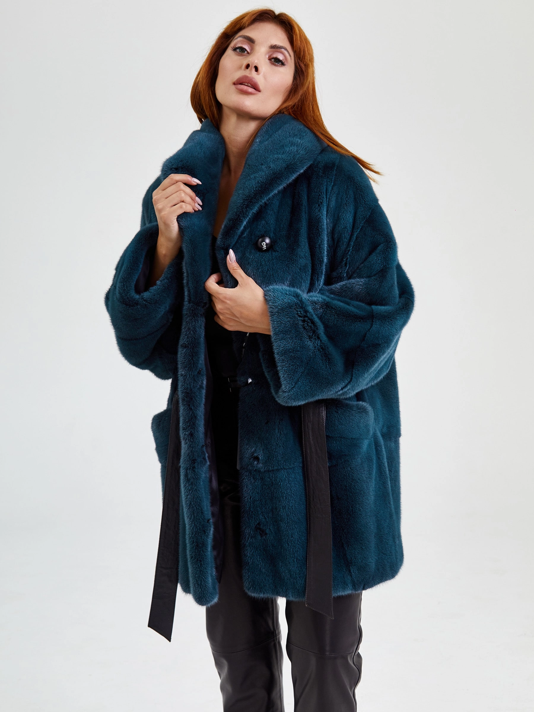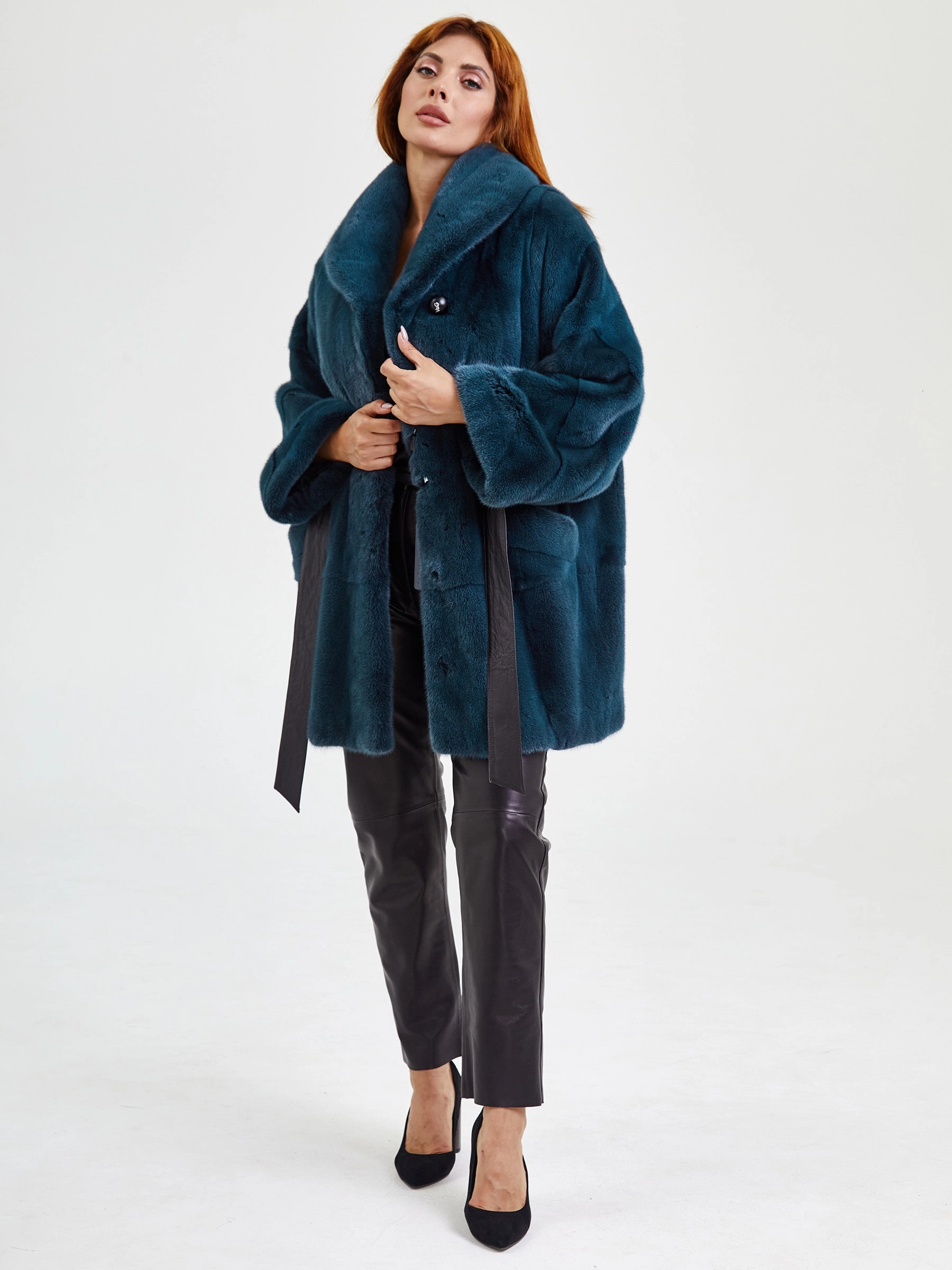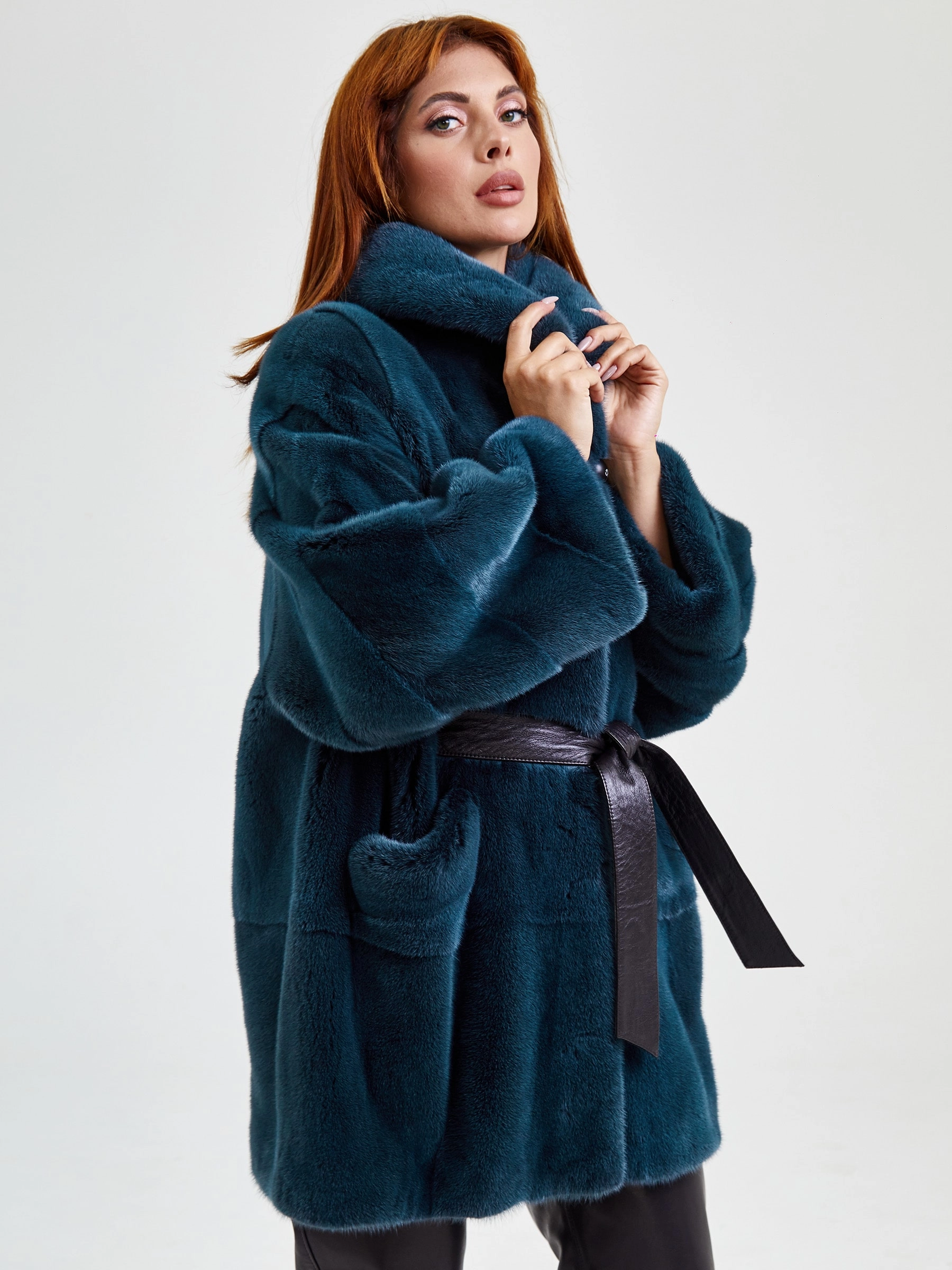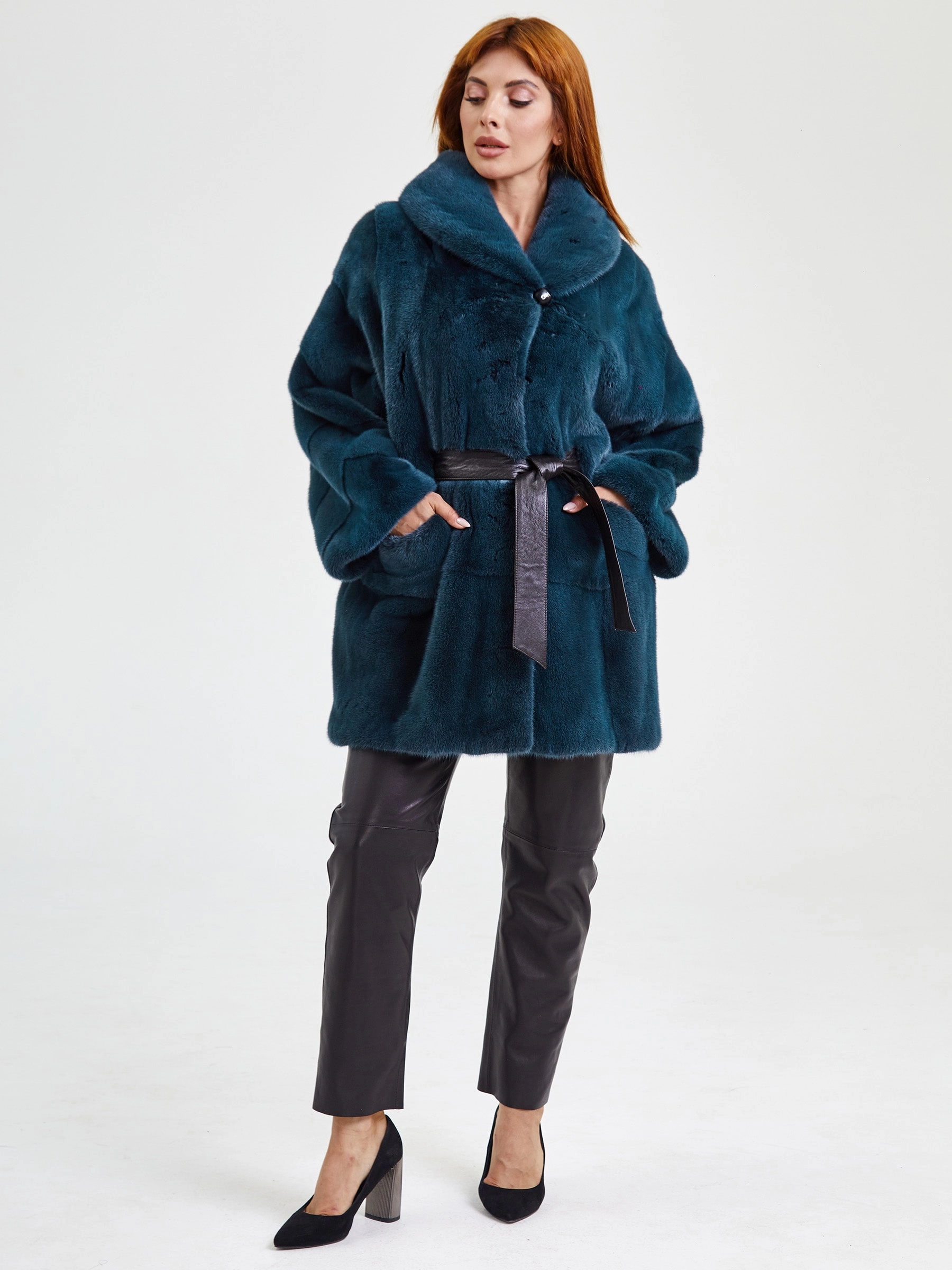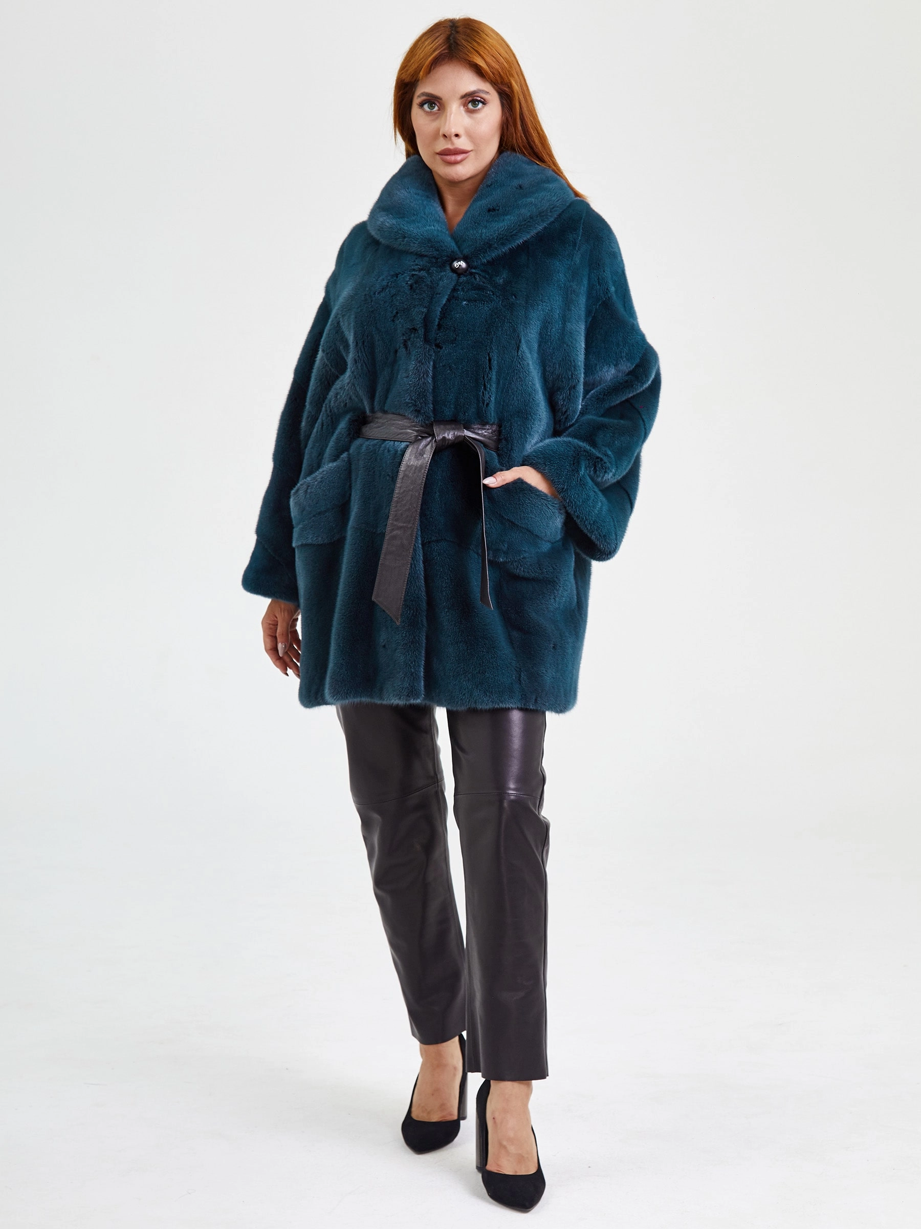 Товар шуба из меха норки с поясом для женщин 20701(в), зеленая, размер 44, артикул 33050 выполнен из мех норки с застежкой клипсы. Рассчитан на сезон: осень-зима. Длина изделия 75-90 см, силуэт прямой.