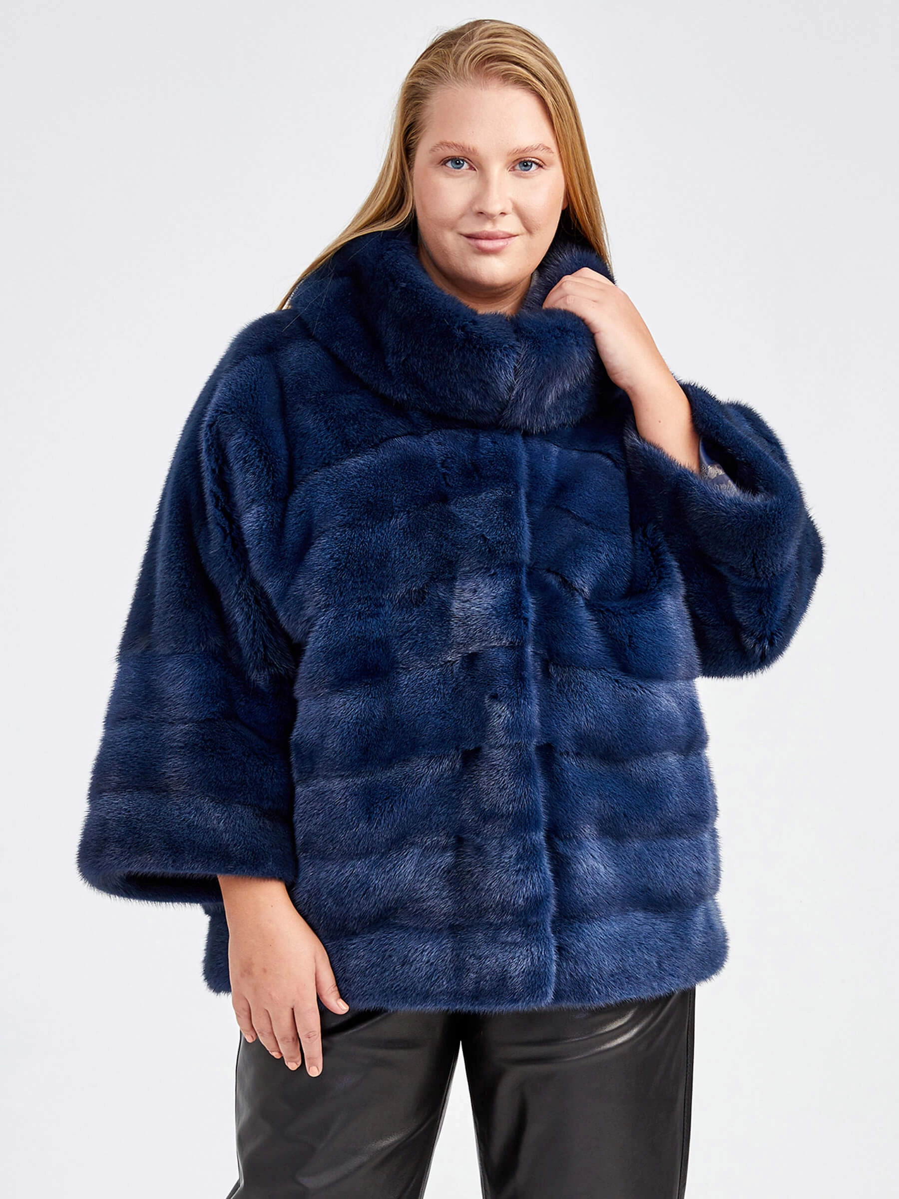 Товар куртка из меха норки женская соня(в), синяя, размер 50, артикул 32860 выполнен из мех норки с застежкой клипсы. Рассчитан на сезон: осень-зима. Длина изделия 51-74 см, силуэт прямой.