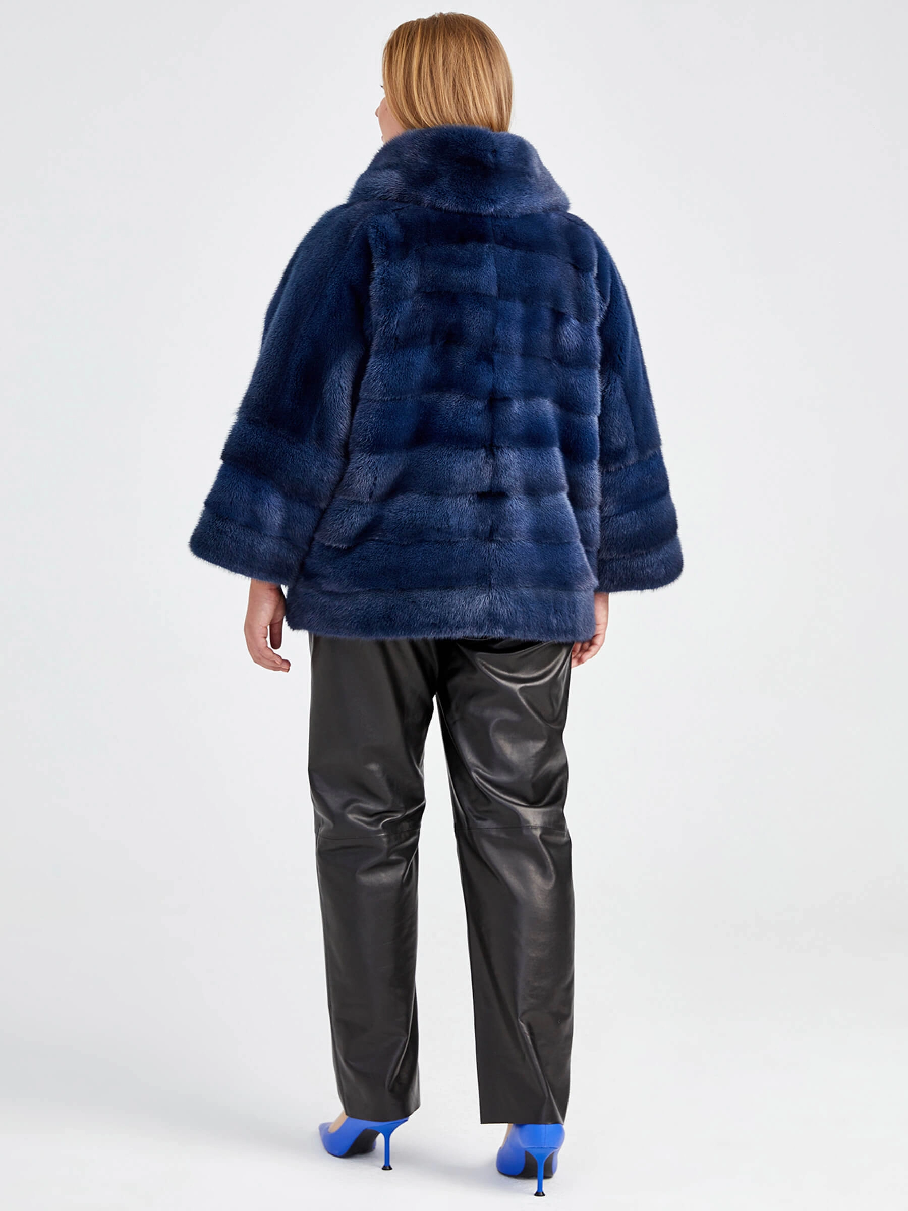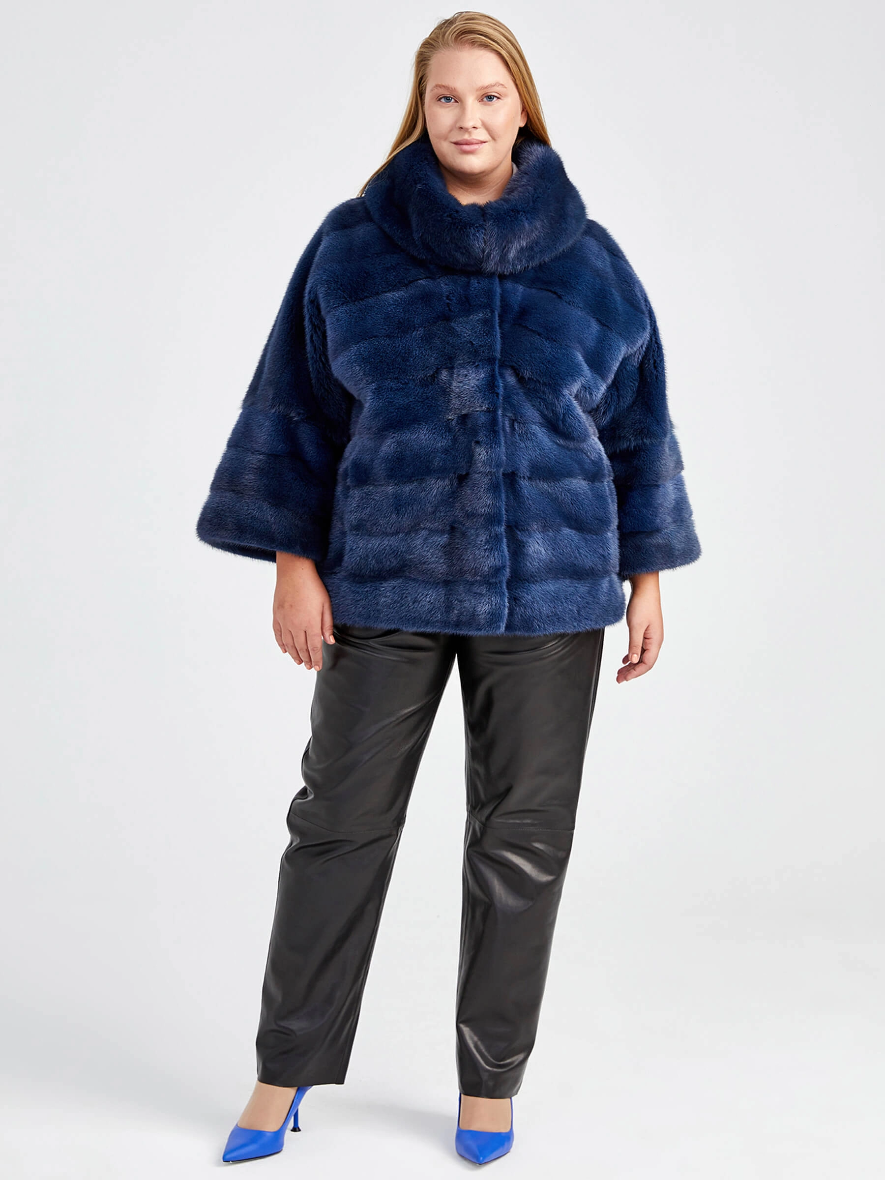 Куртка из меха норки женская Соня(в), синяя, размер 50, артикул 32860