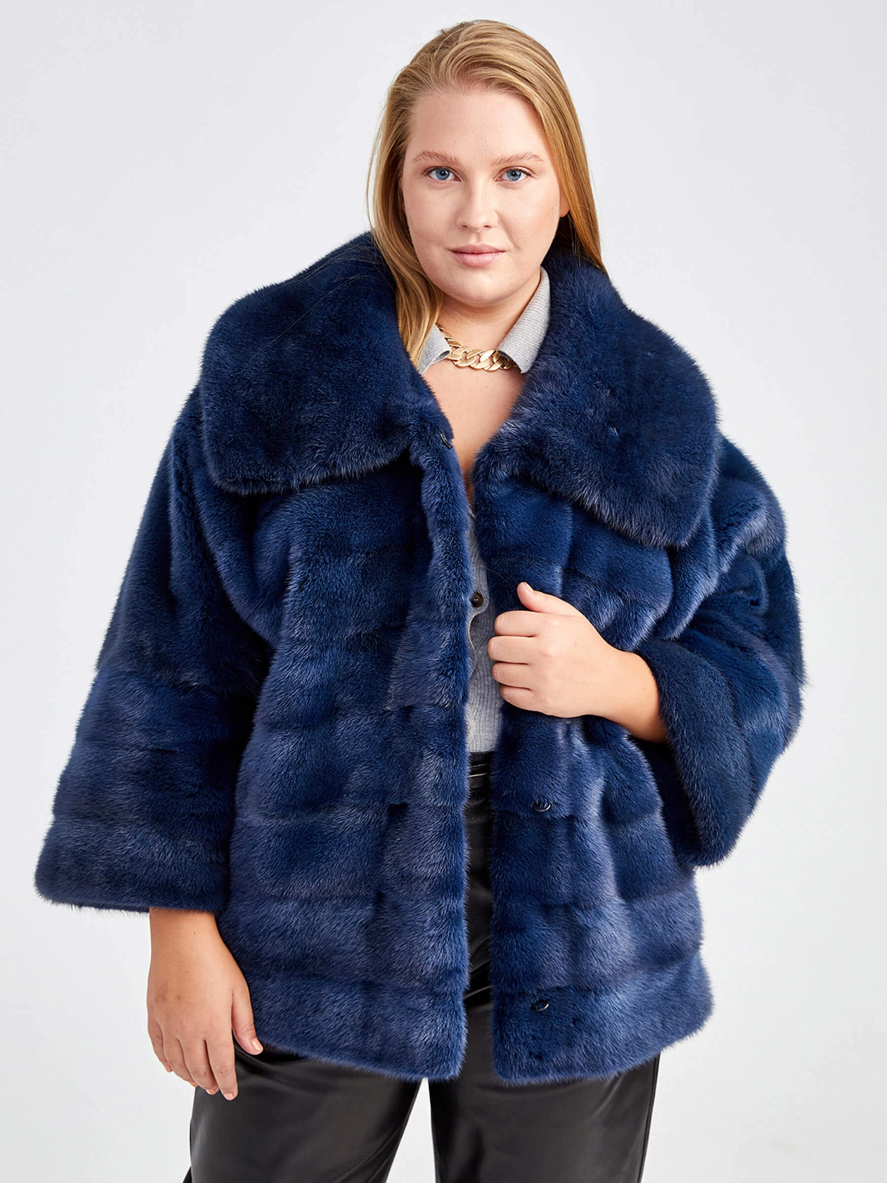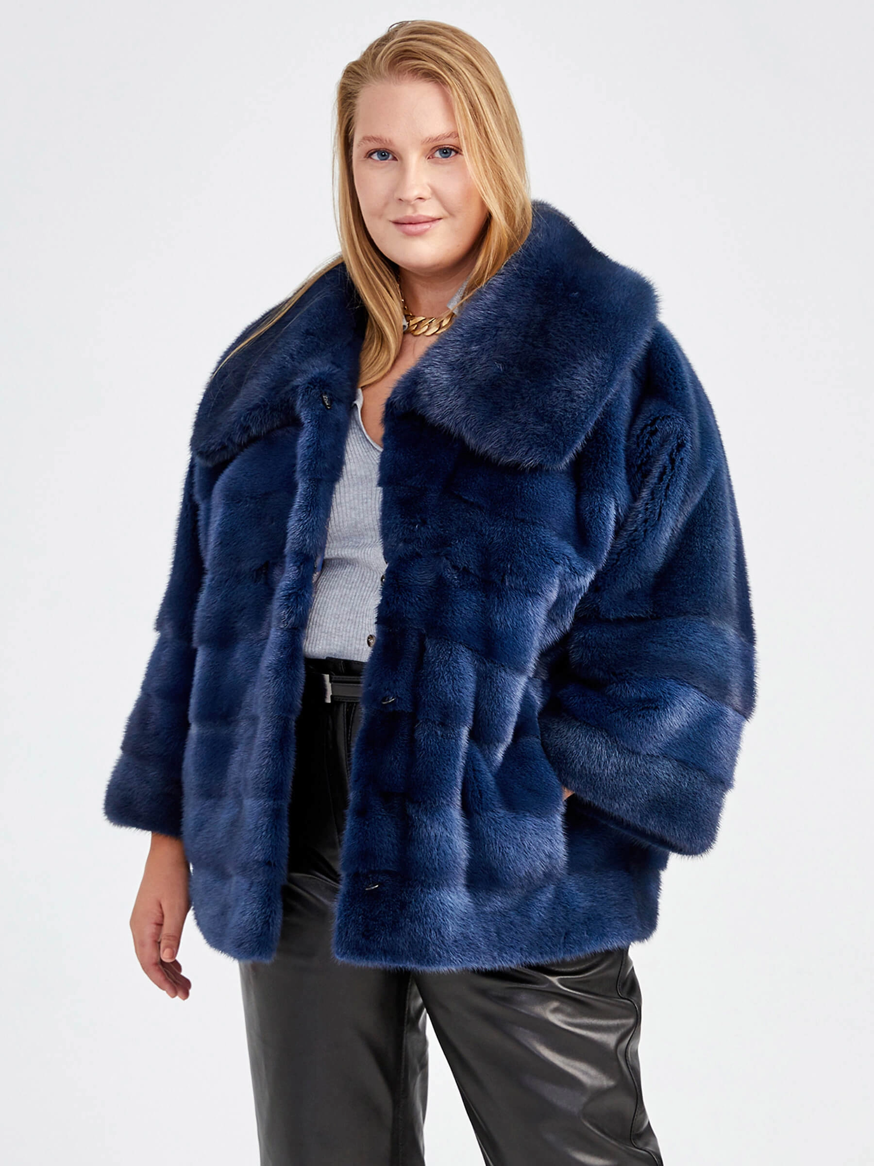Это пальто из натурального меха норки укороченного кроя (длина 51-74 см), идеальное для динамичной городской жизни. Прямой силуэт с втачными рукавами и строгим отложным воротником подчеркивает фигуру, сохраняя элегантность и современный вид. Удобная застёжка на клипсы позволяет легко регулировать посадку. Лаконичный дизайн делает эту модель универсальной жемчужиной гардероба, которая обеспечит роскошную теплозащиту и безупречный стиль в осенне-зимний сезон.