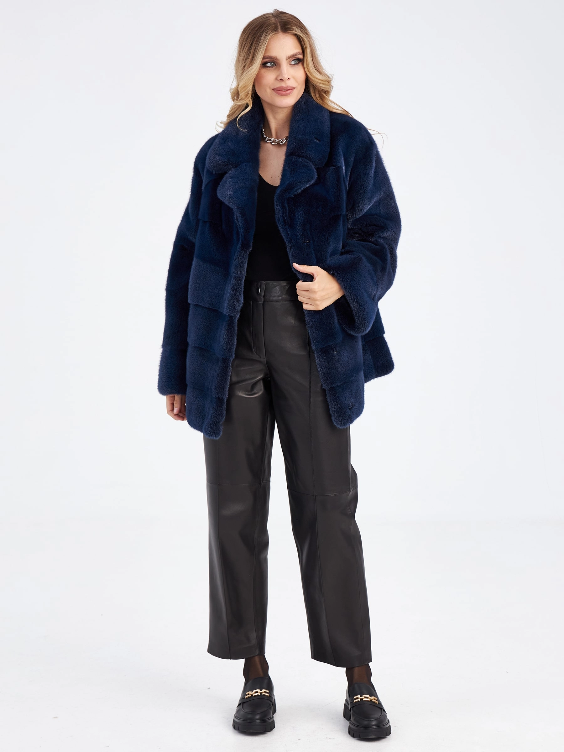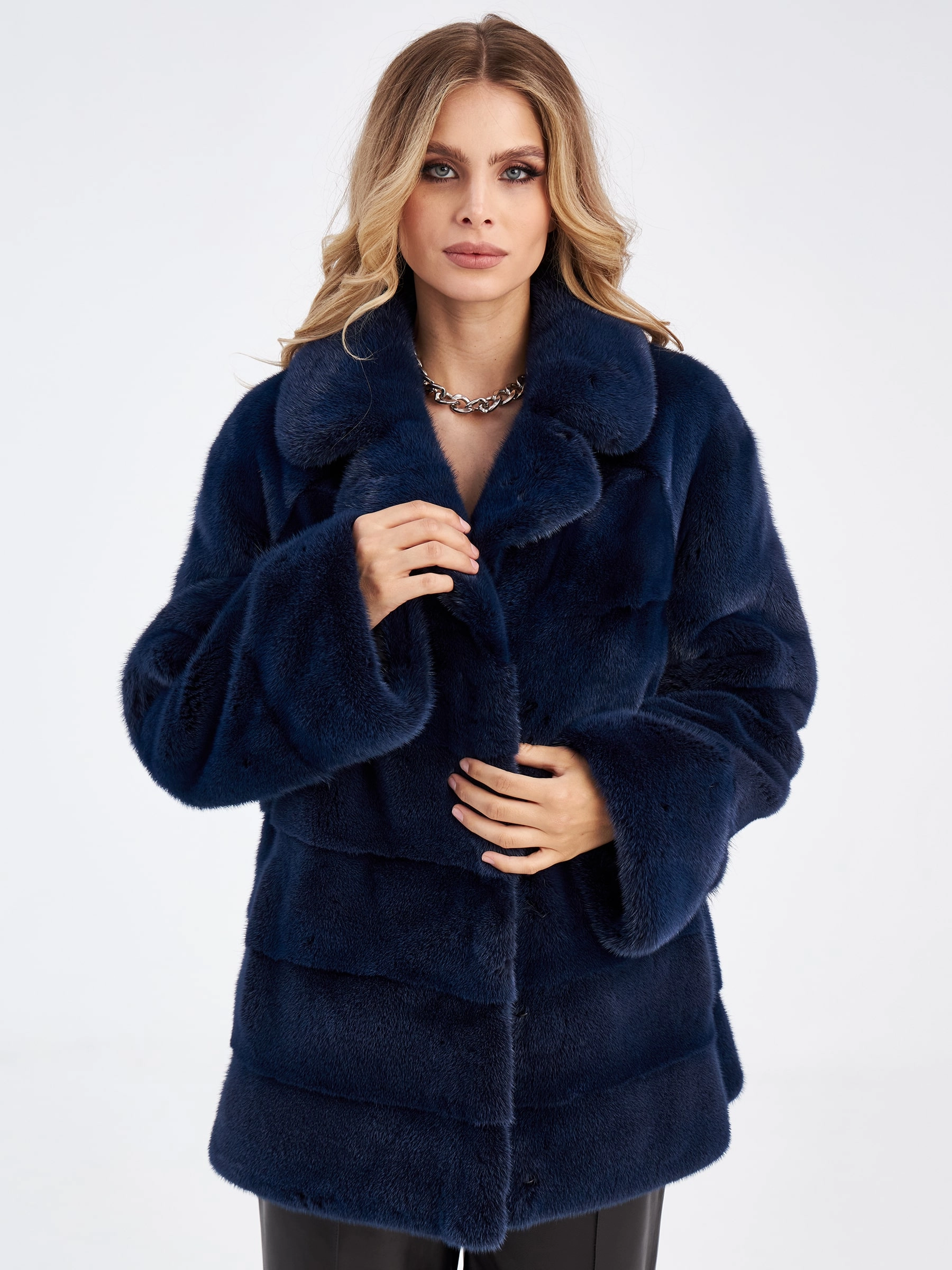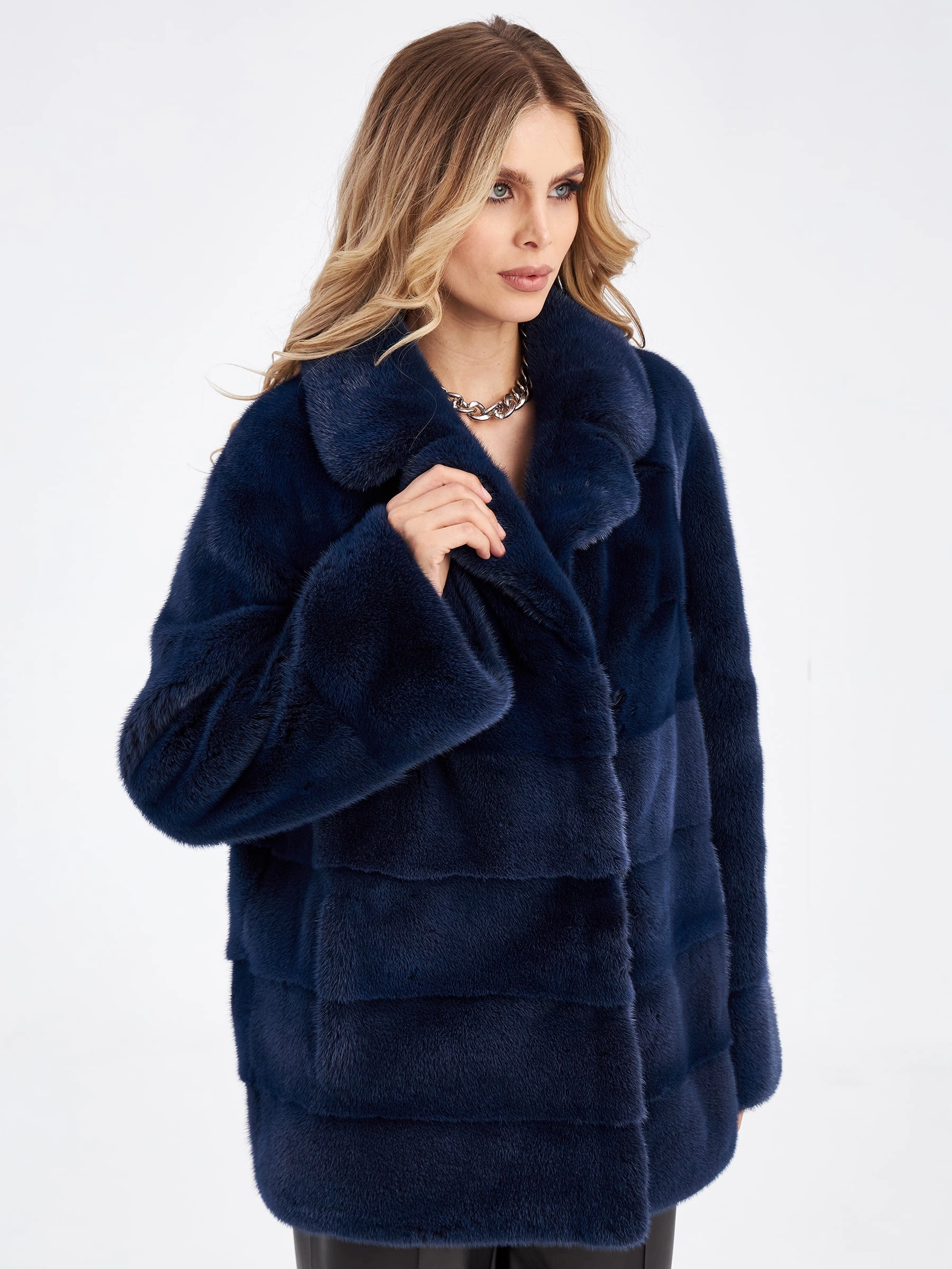 Товар женская куртка автоледи поперечка из меха норки кейт, синяя, размер 56, артикул 33910 выполнен из норка с застежкой клипсы. Рассчитан на сезон: зима. Длина изделия 70 см, силуэт прямой.