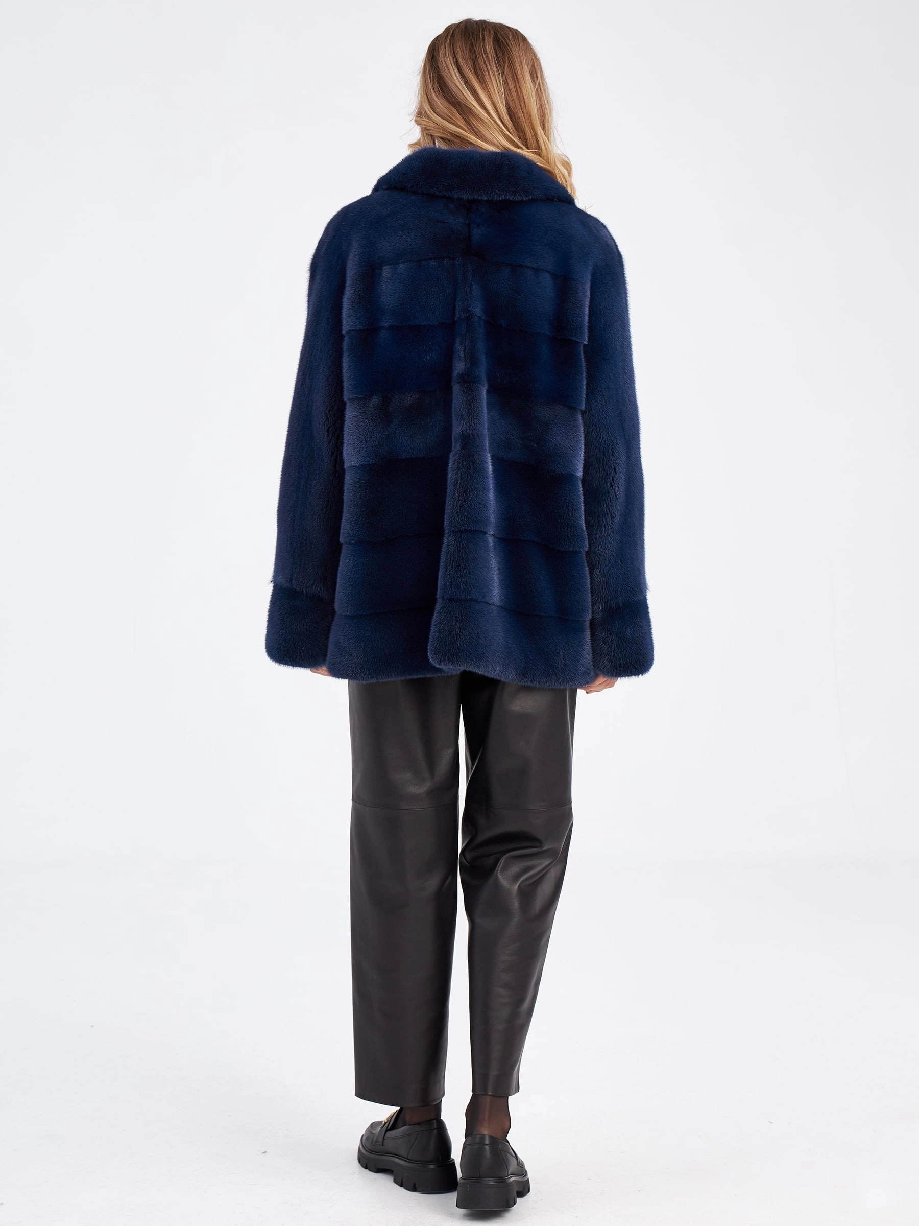 Женская куртка автоледи поперечка из меха норки Кейт, синяя, размер 56, артикул 33910