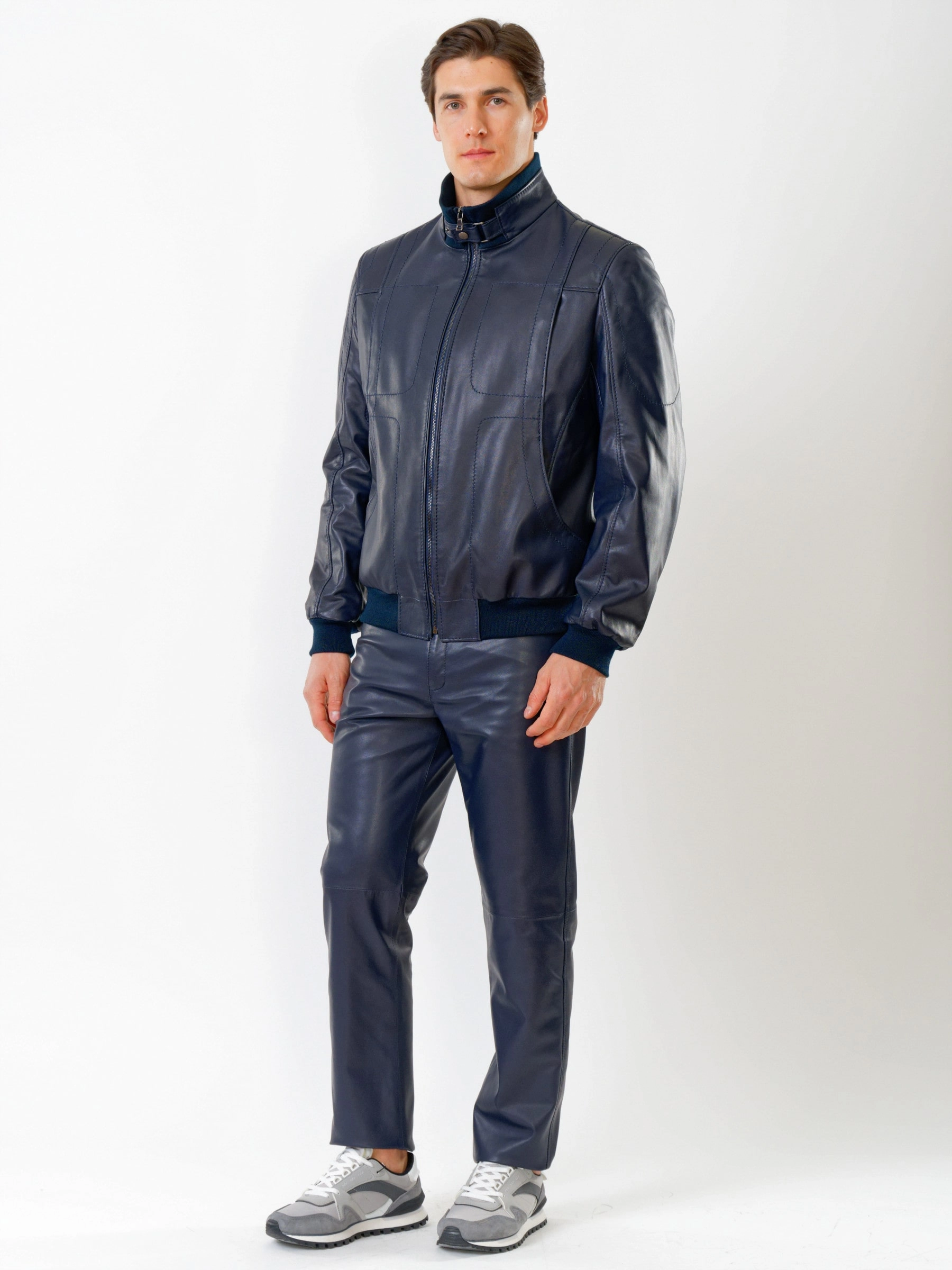 Кожаный комплект мужской: Куртка 521 + Брюки 01, cиний, р. 48, артикул 140120