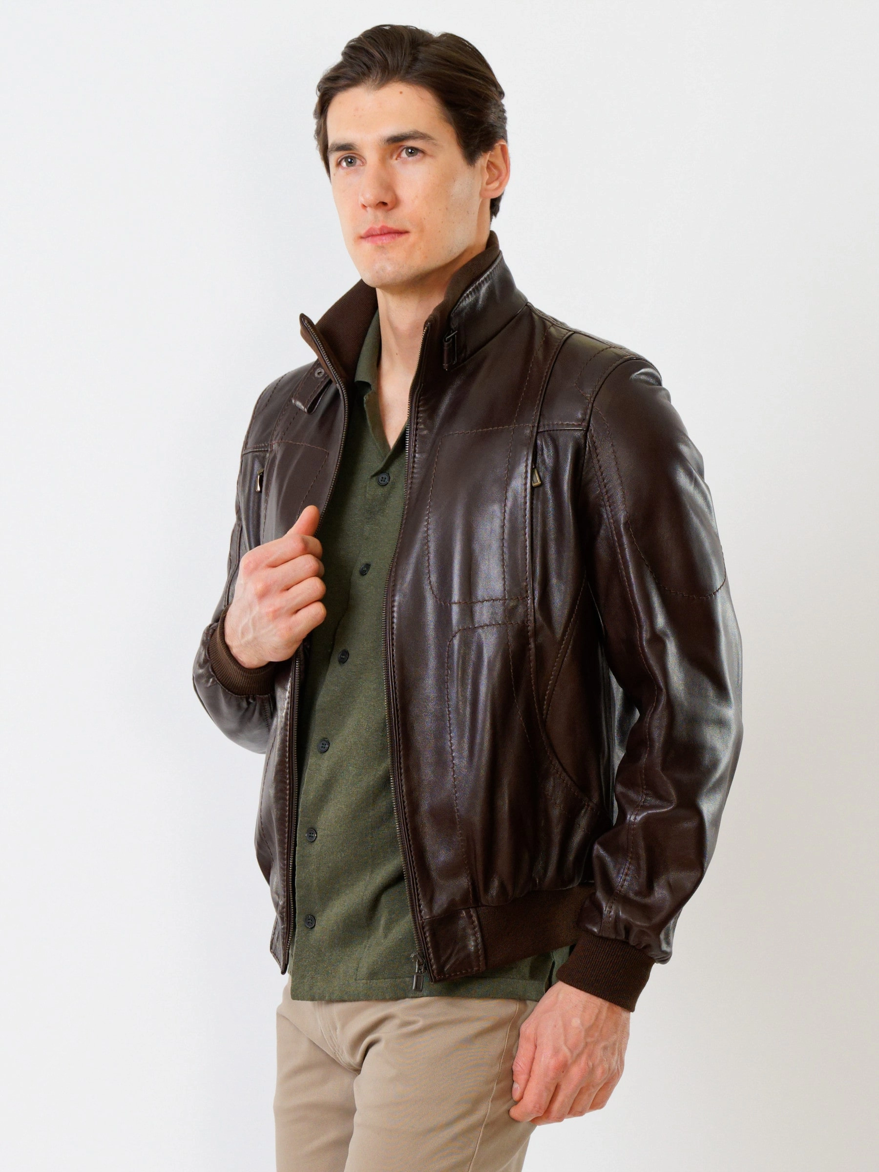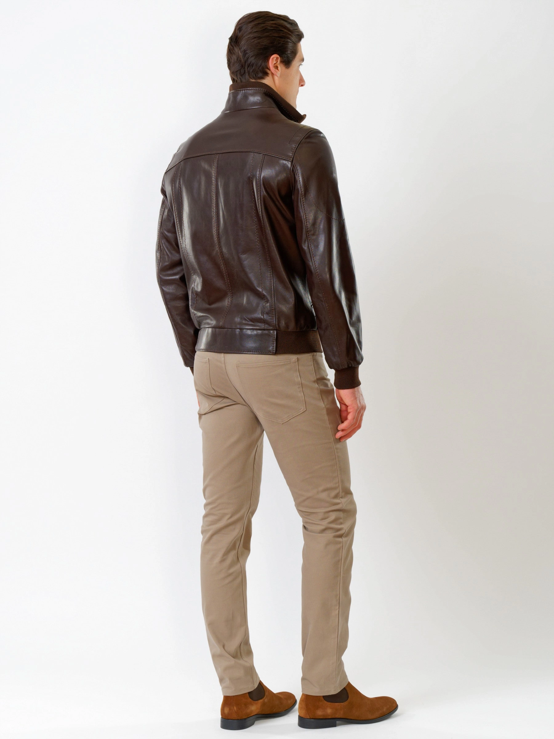 Кожаная куртка бомбер мужская премиум класса 521, коричневая, размер 50, артикул 27890