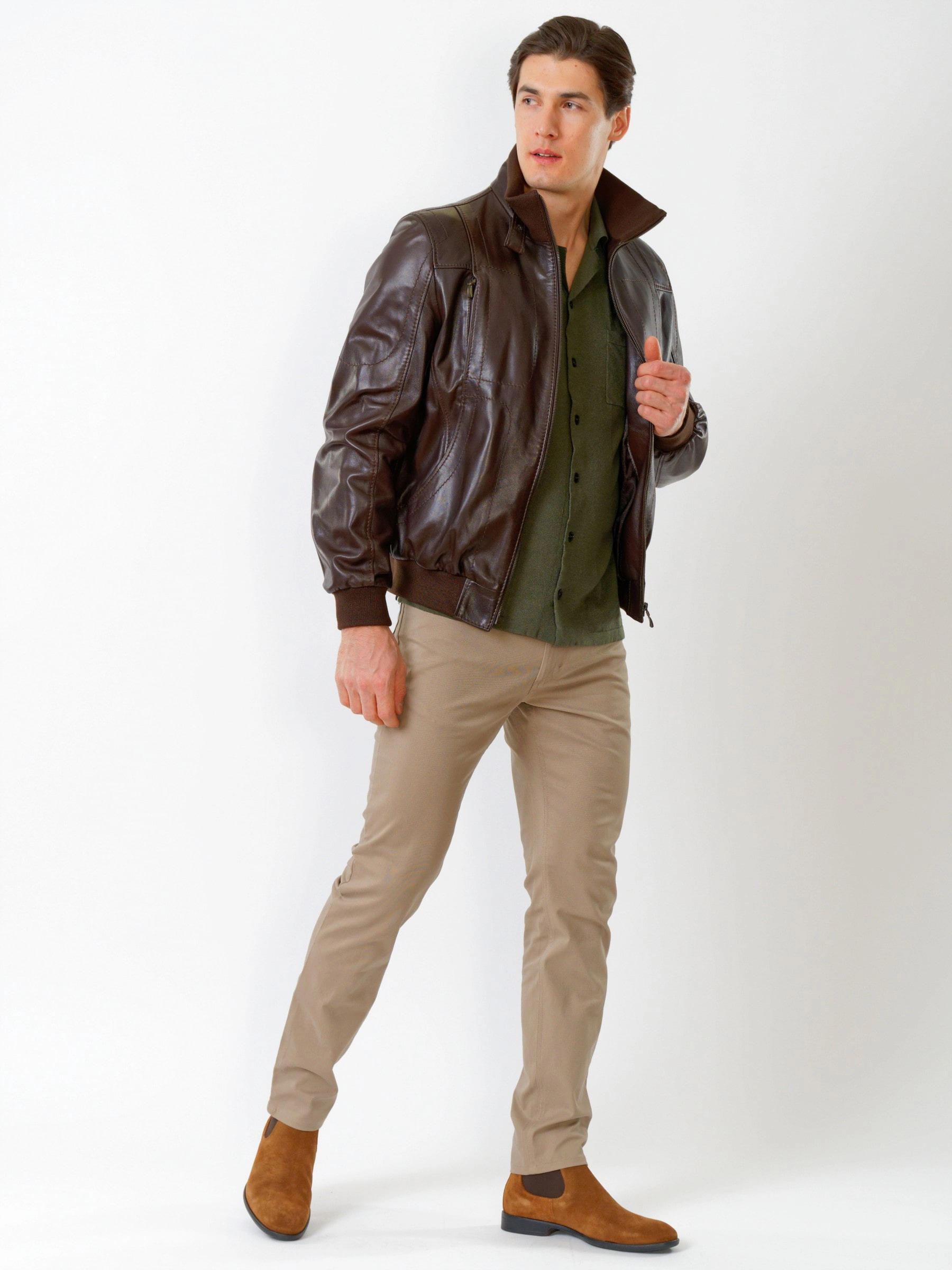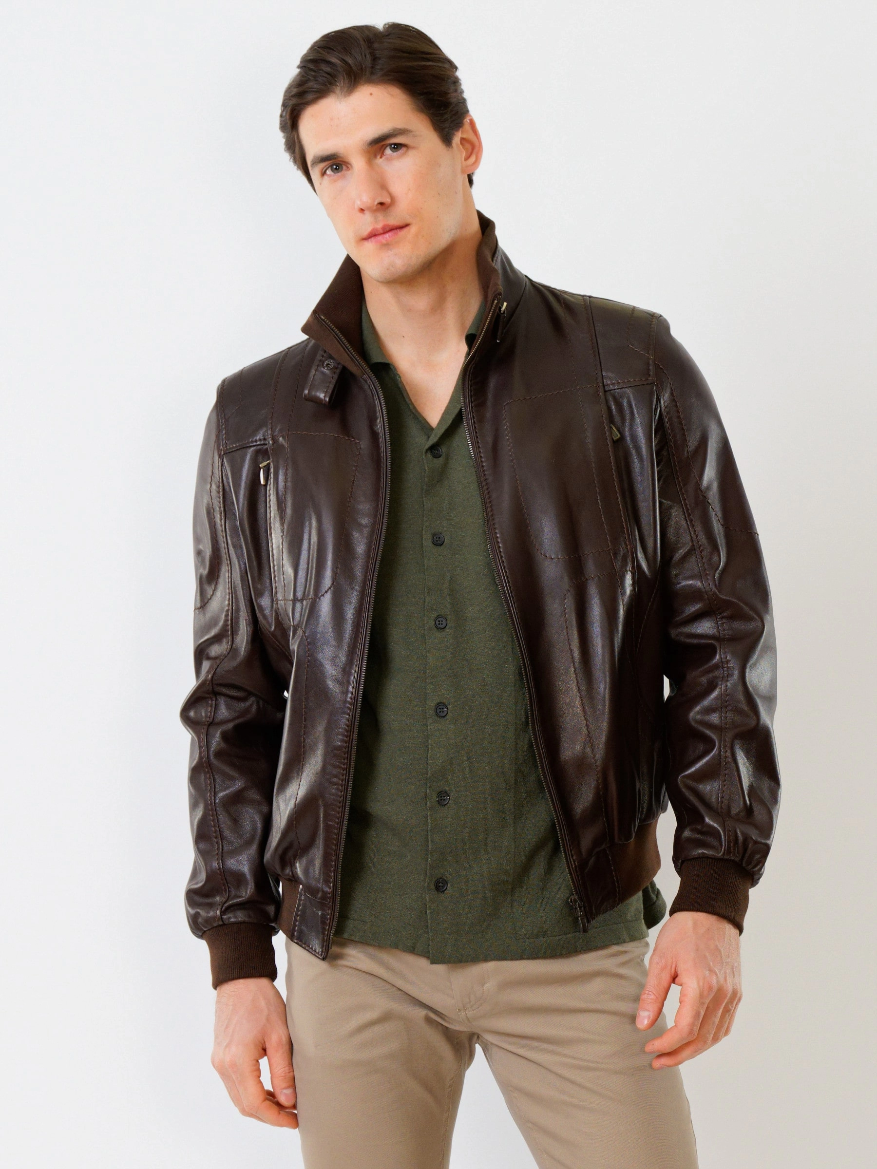 Товар кожаная куртка бомбер мужская премиум класса 521, коричневая, размер 50, артикул 27890 выполнен из натуральной кожи с застежкой молния. Рассчитан на сезон: весна-лето. Длина изделия 69 см, силуэт свободный.