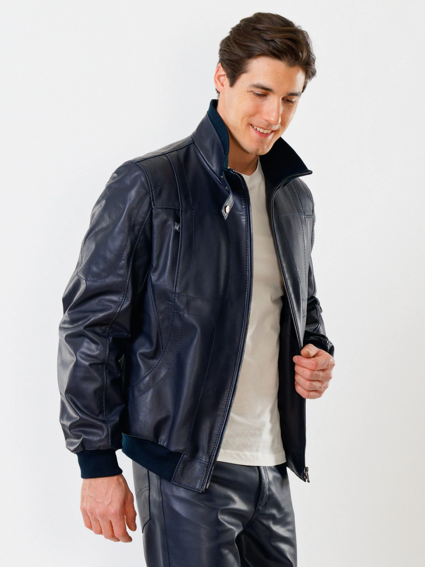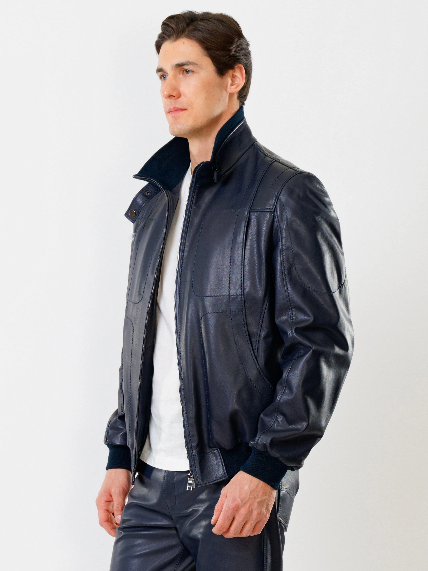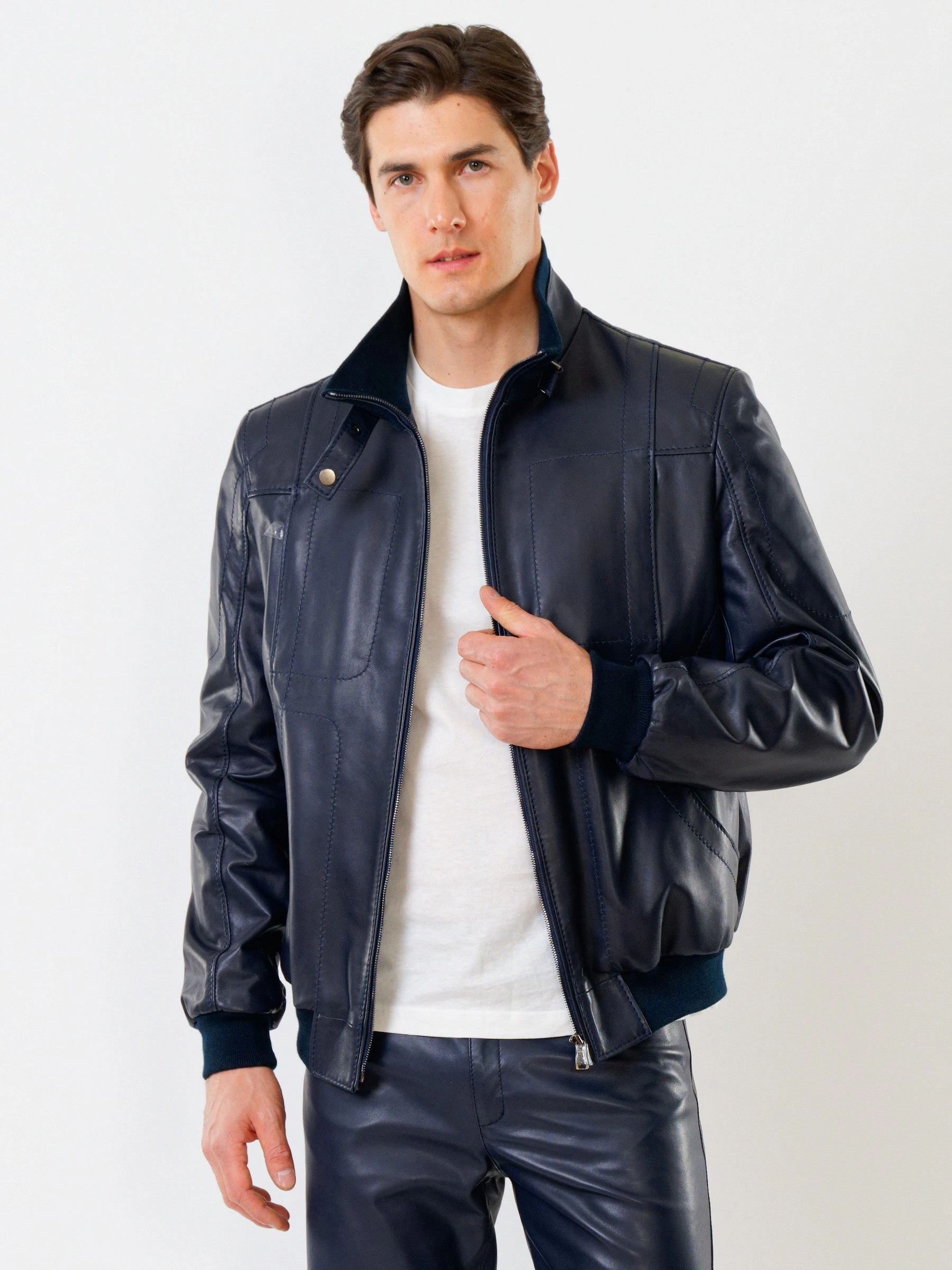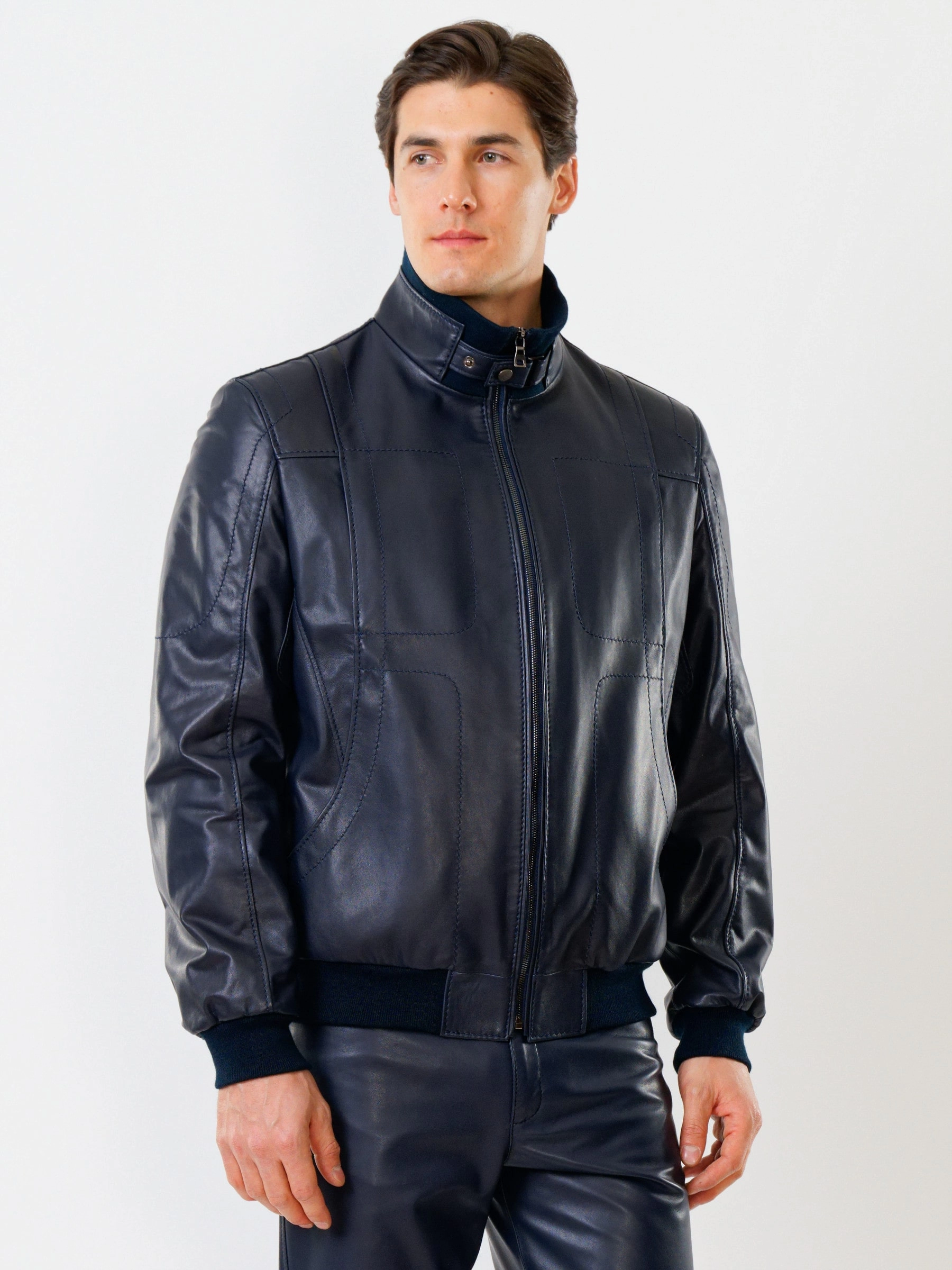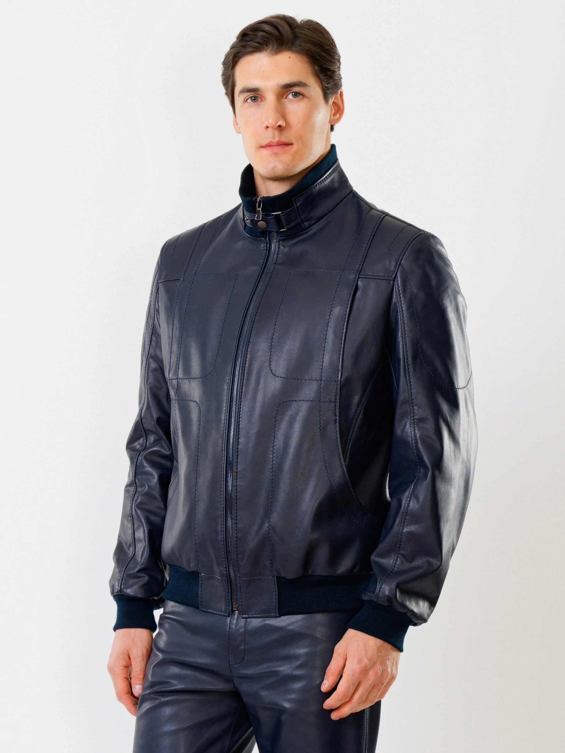 Спортивный стиль. Кожа премиального качества. Воротник-стойка. Застёжка-молния. Рукав втачной. Манжеты и низ модели выполнены из износостойкой трикотажной резинки. Предусмотрены удобные внутренние карманы для документов. Безупречная работа наших портных. Комфортная посадка по фигуре.