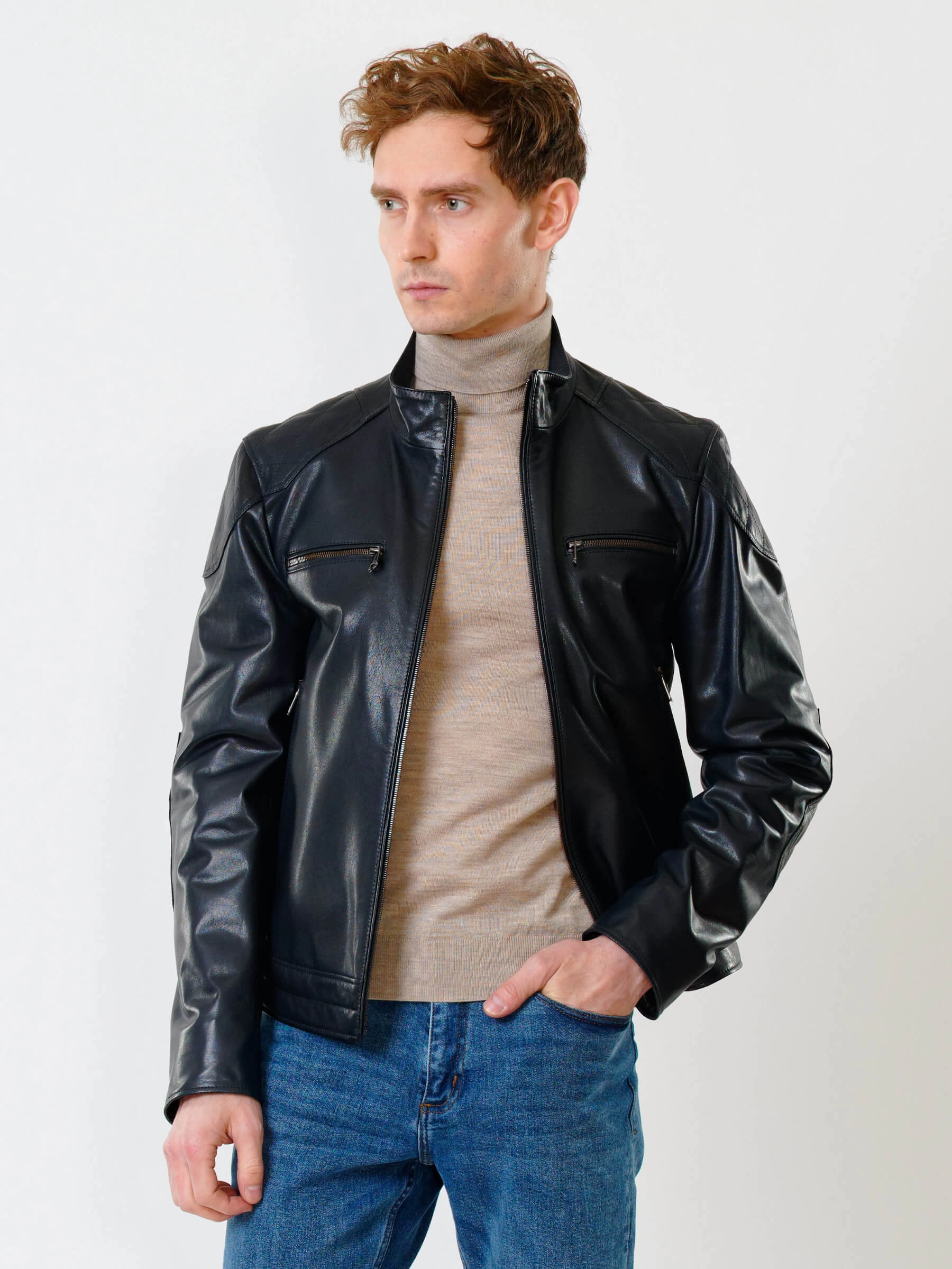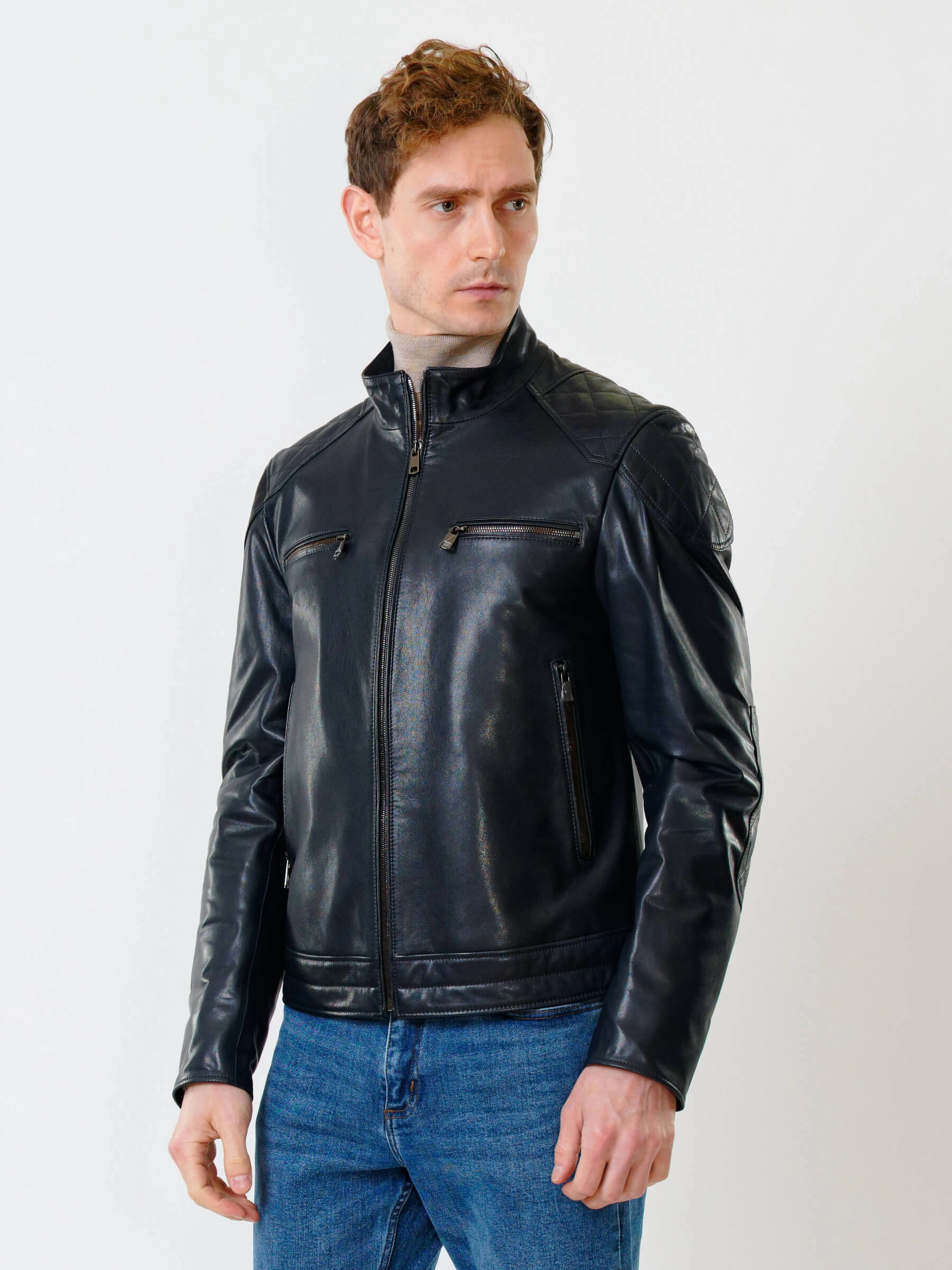 Кожаная куртка мужская 545, синяя, размер 50, артикул 28510