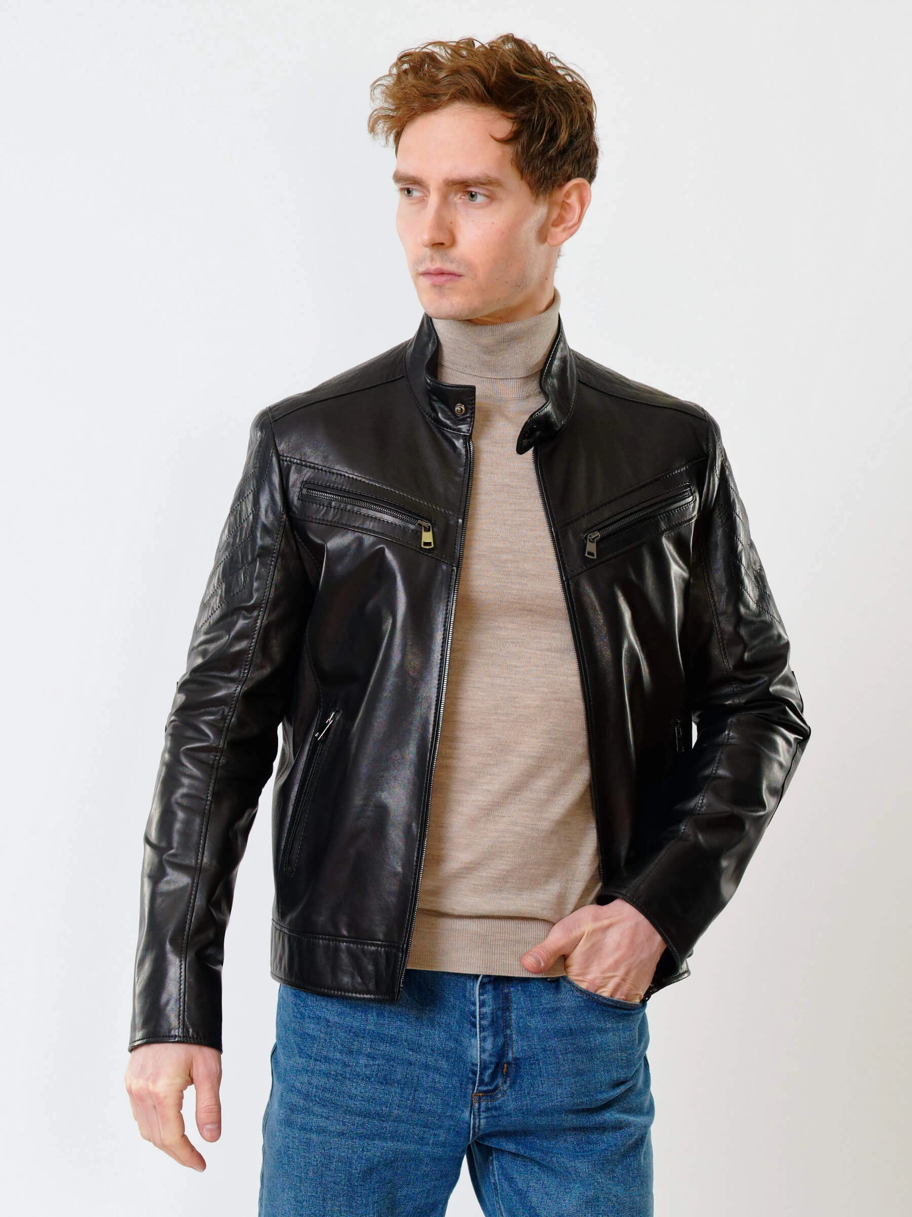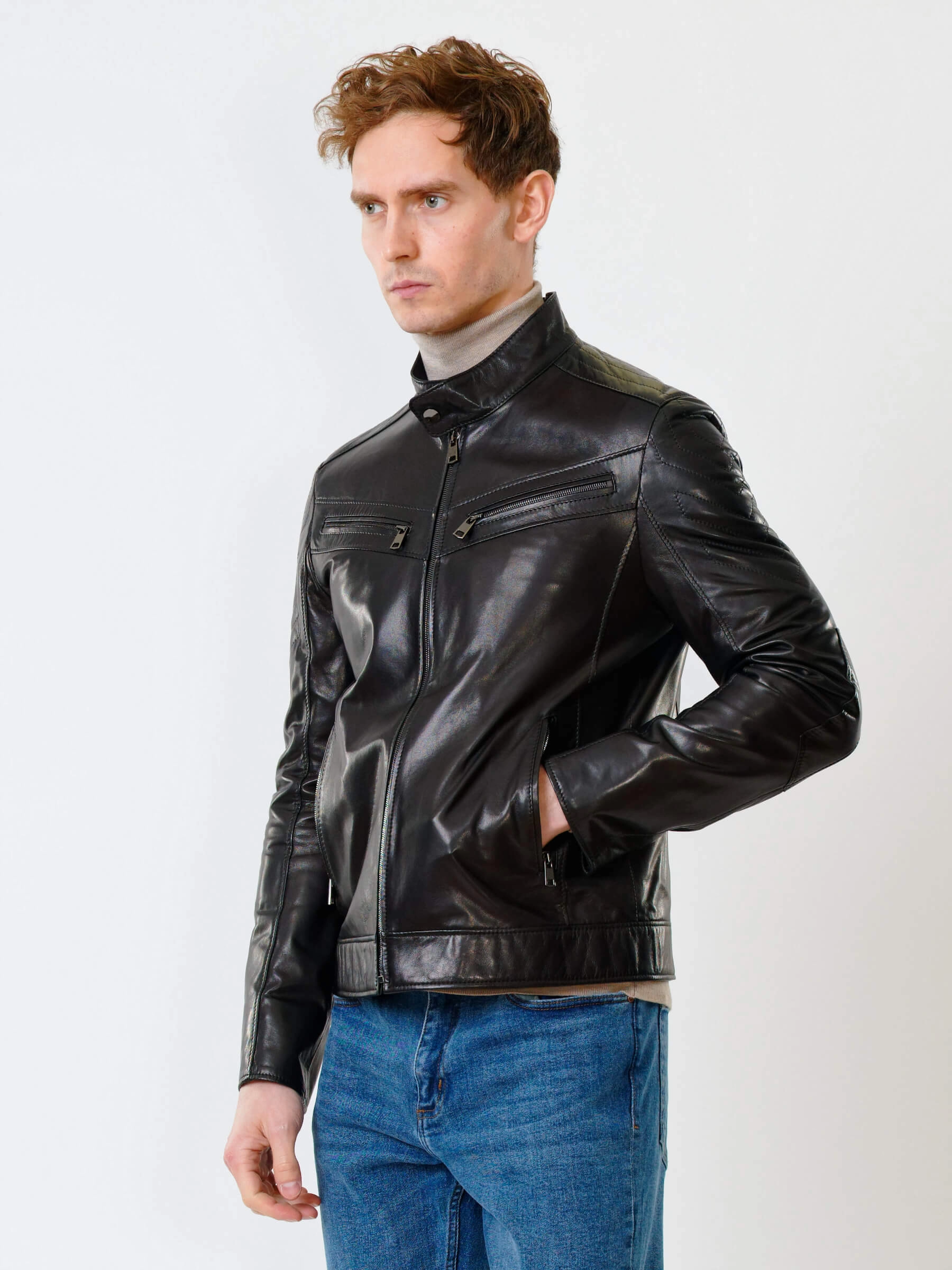 Кожаная куртка мужская 546, черная, размер 50, артикул 28520