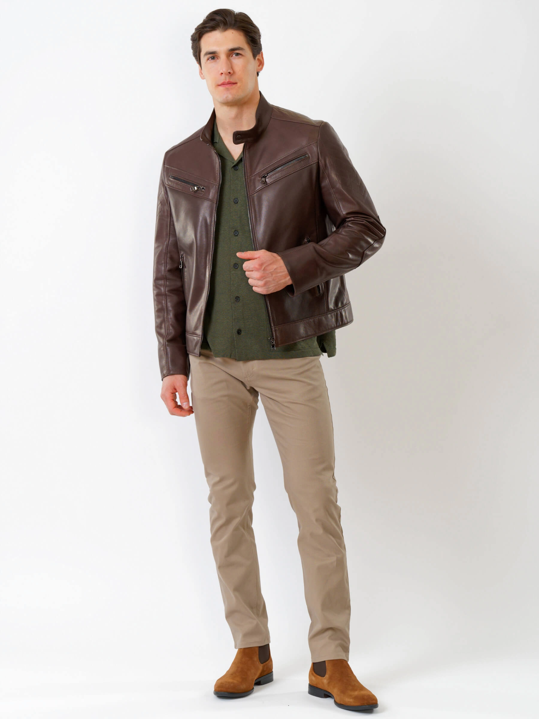 Товар кожаная куртка мужская 546, коричневая, размер 50, артикул 28711 выполнен из натуральной кожи с застежкой молния. Рассчитан на сезон: весна-лето. Длина изделия 67 см, силуэт полуприлегающий.