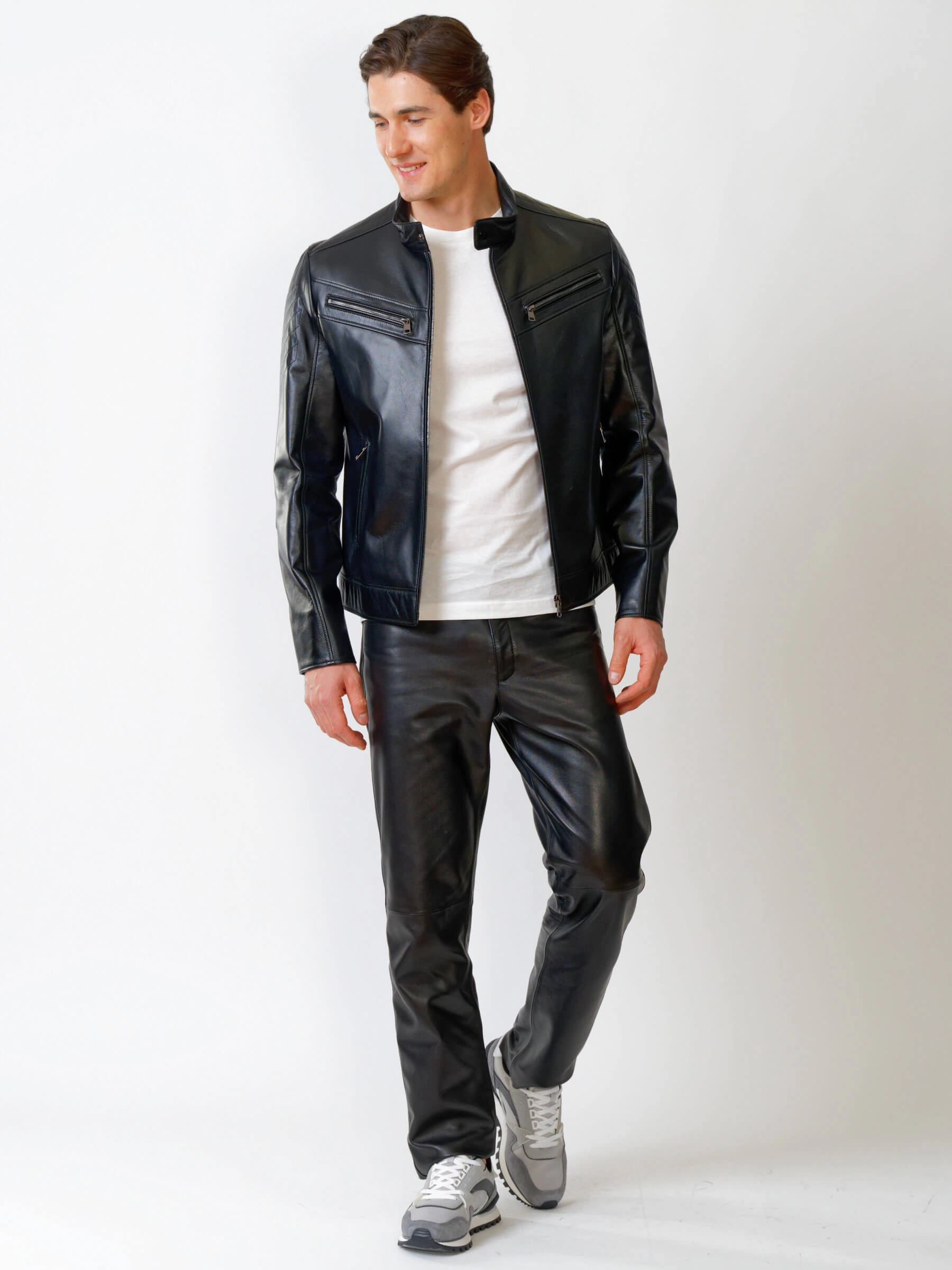 Товар кожаная куртка мужская 546, черная, размер 50, артикул 28721 выполнен из натуральной кожи с застежкой молния. Рассчитан на сезон: весна-лето. Длина изделия 67 см, силуэт полуприлегающий.