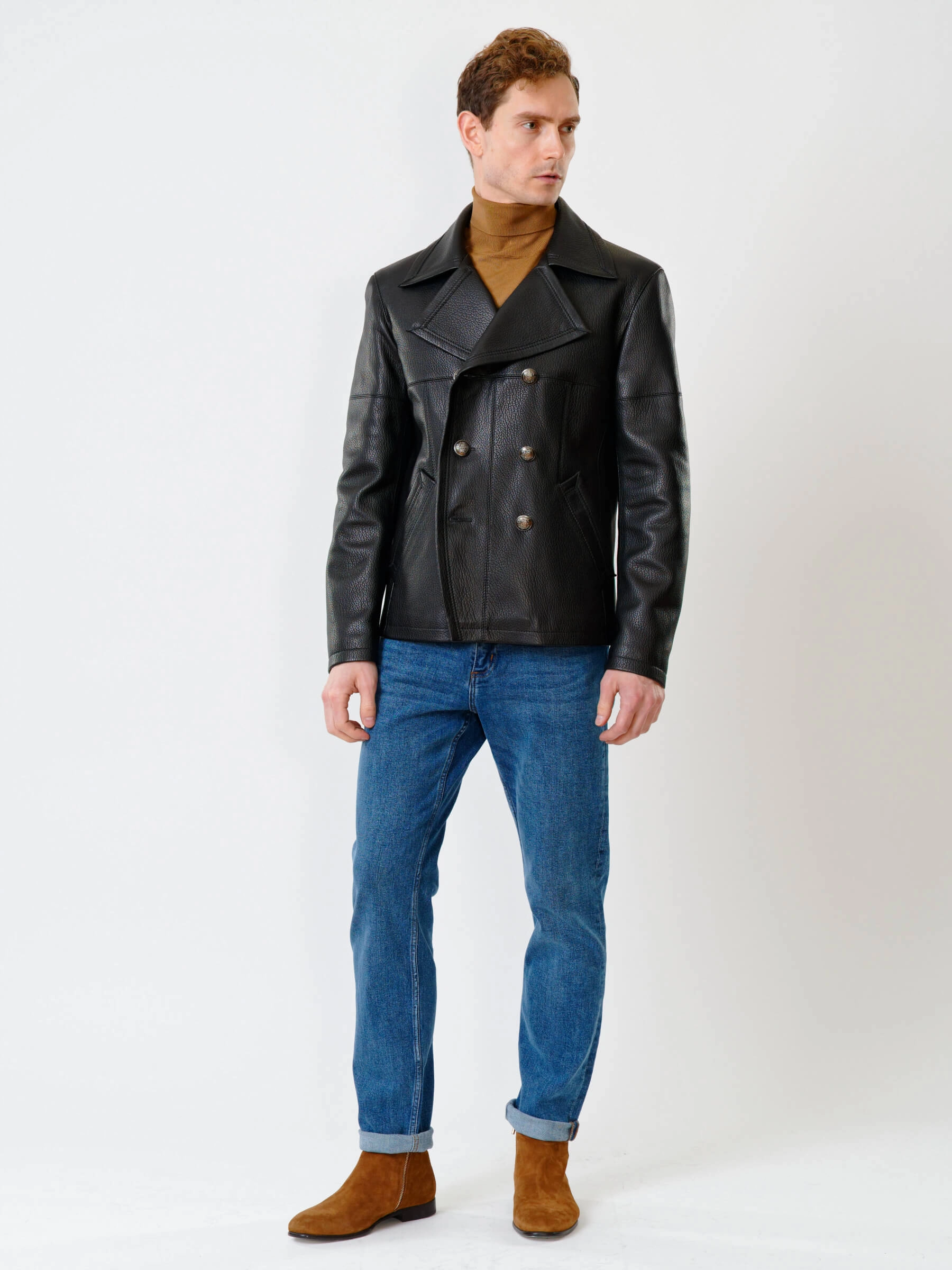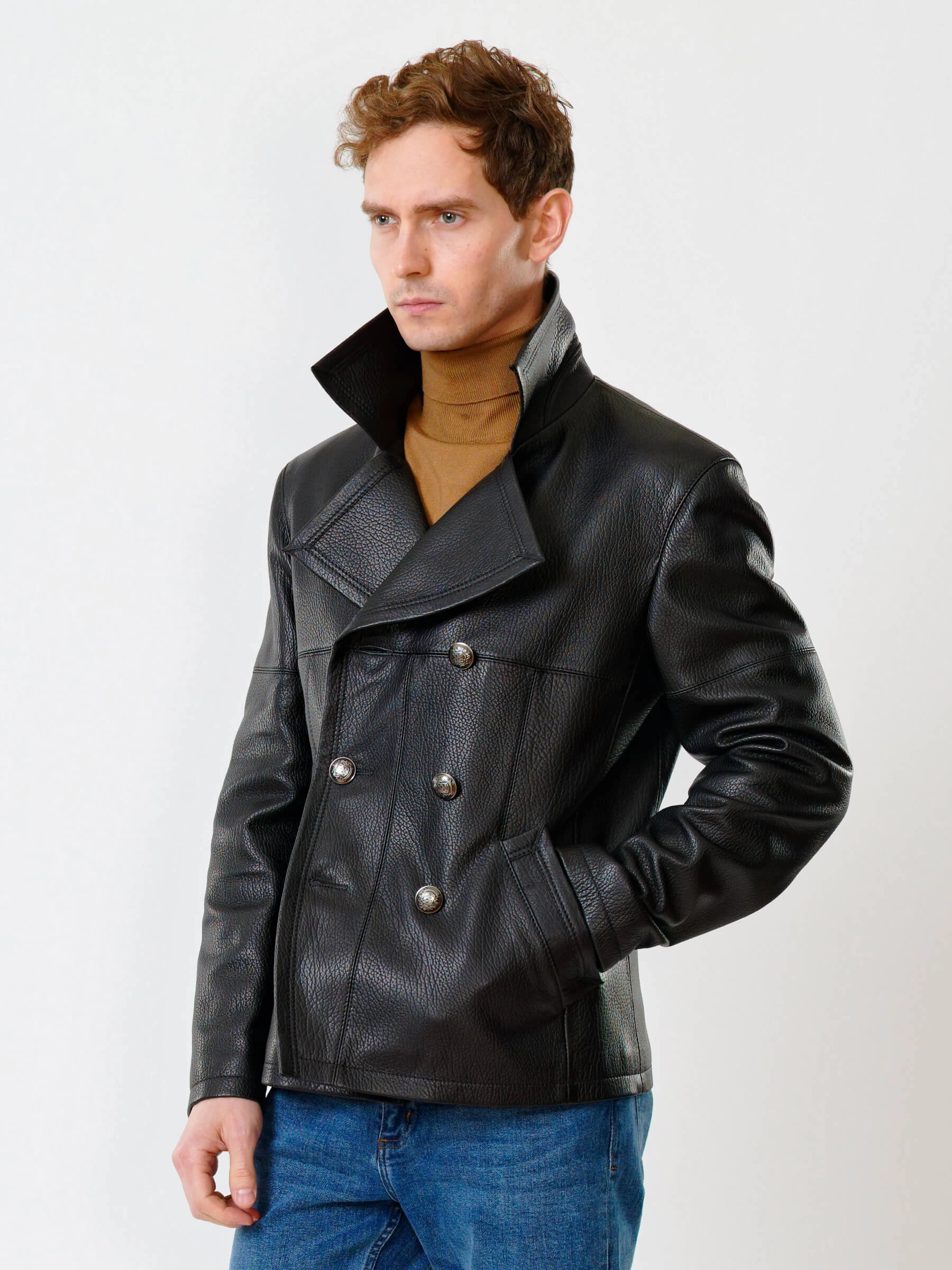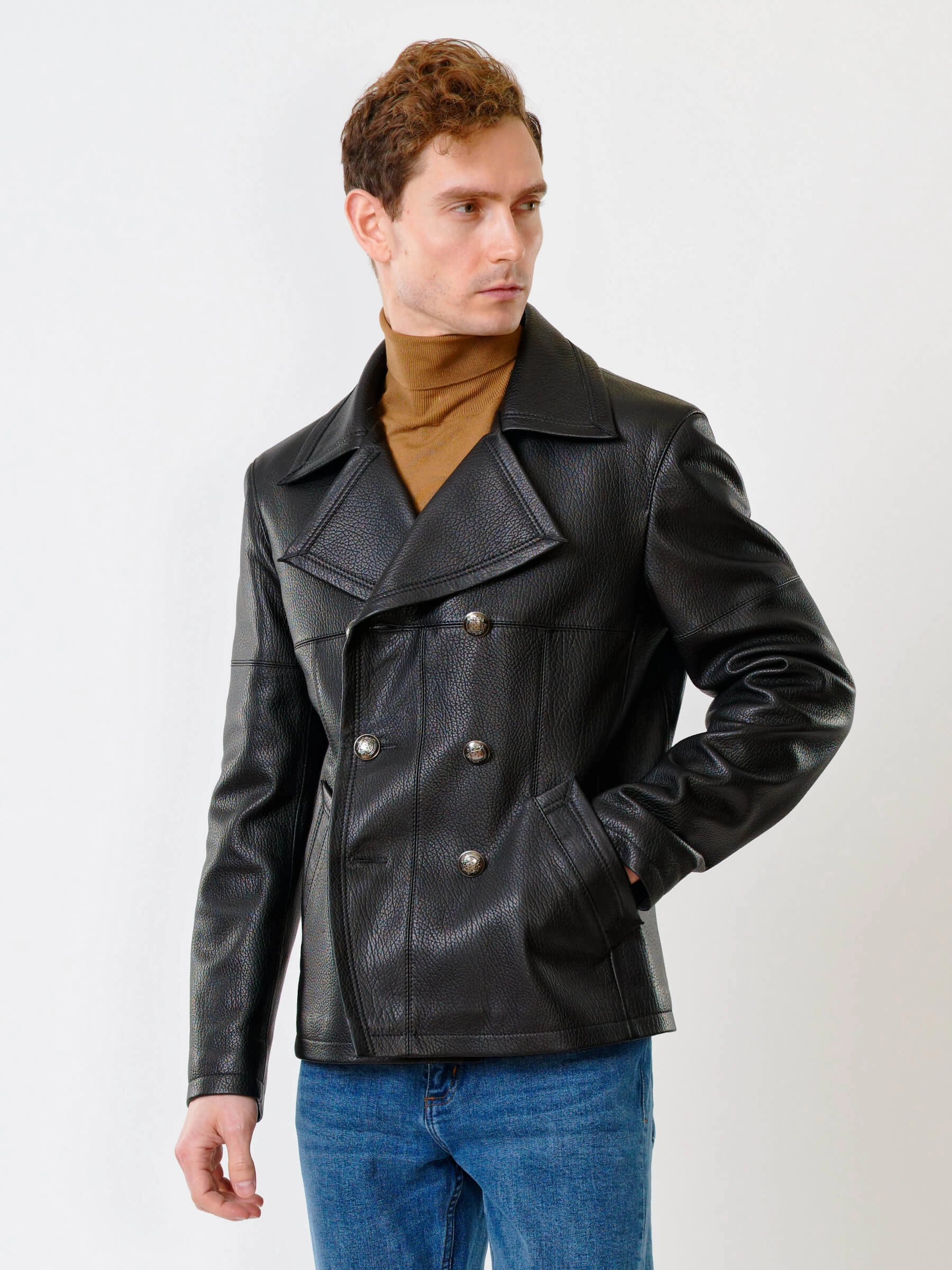 Двубортная мужская кожаная куртка Клуб, черная, размер 48, артикул 28400