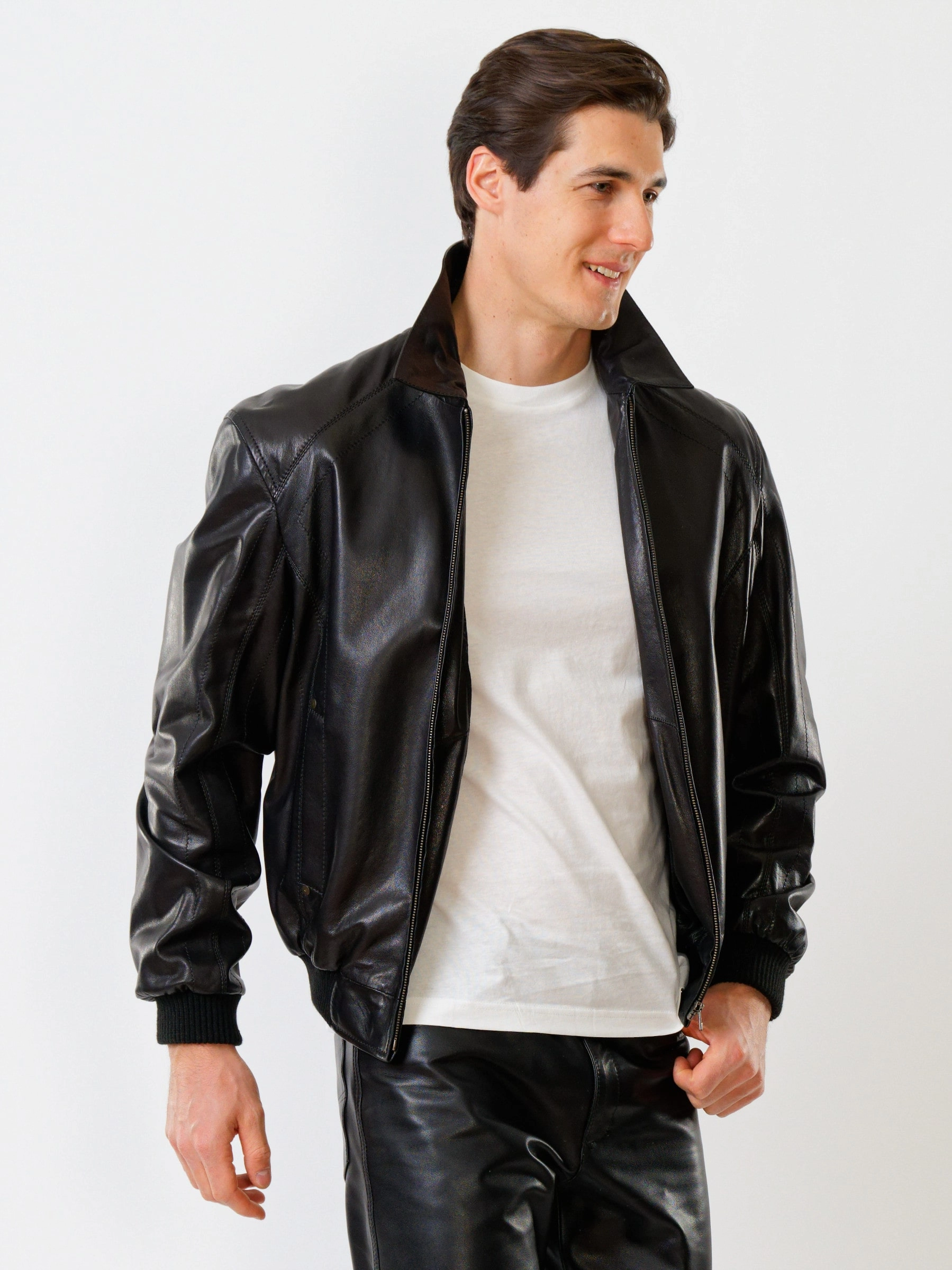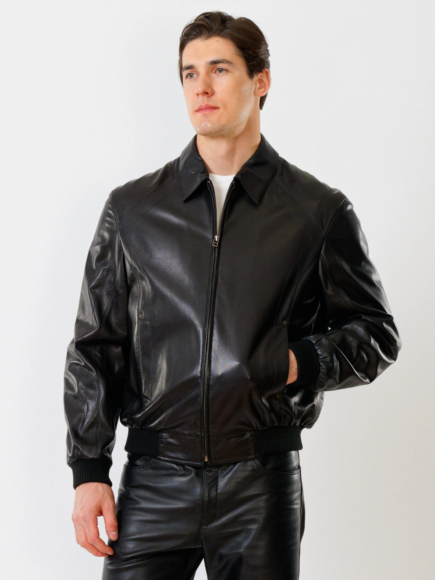 Кожаная куртка свободного кроя и кожаные брюки. Кожа премиального качества. Безупречная работа портных. Комфортная посадка по фигуре.