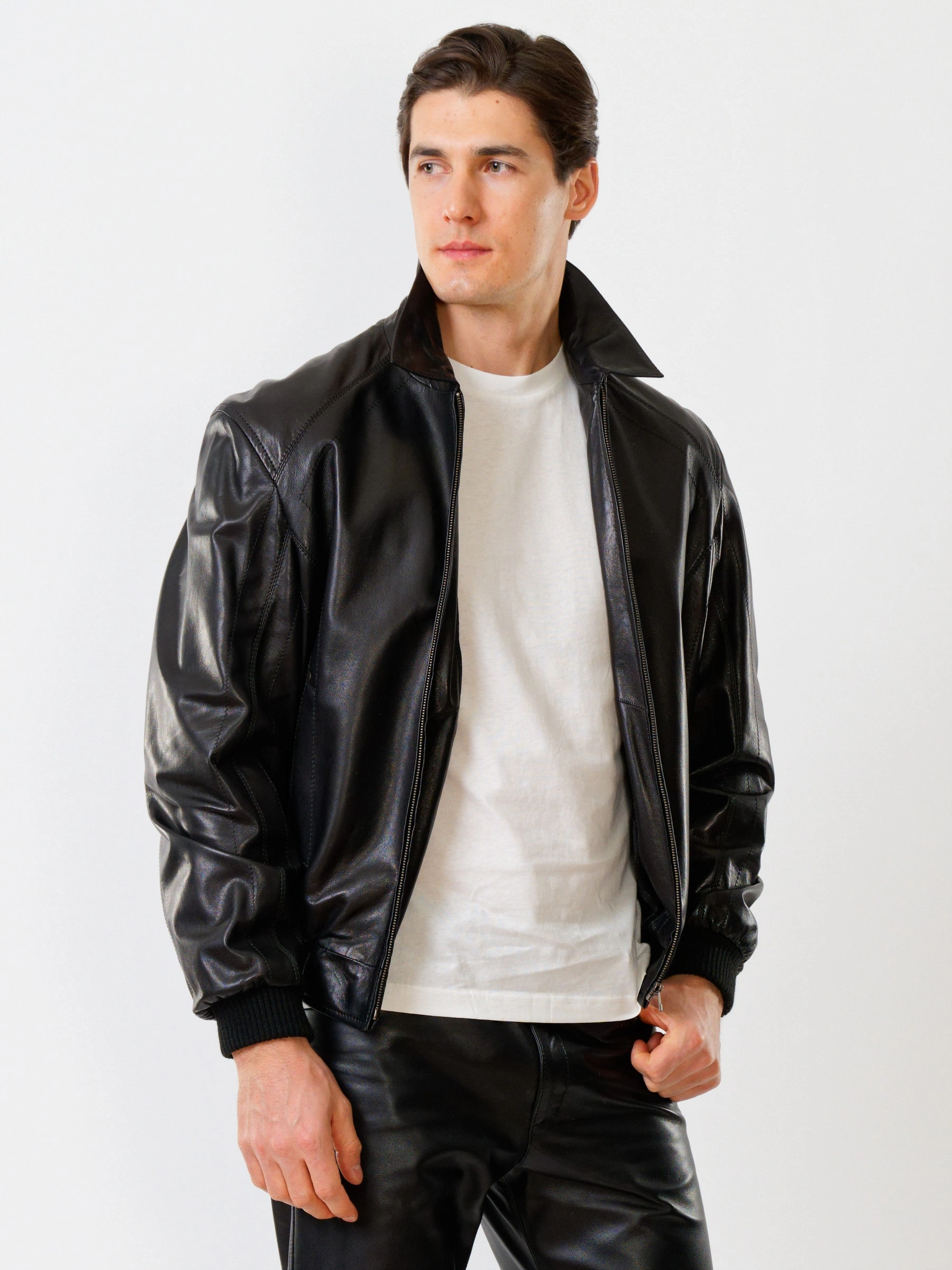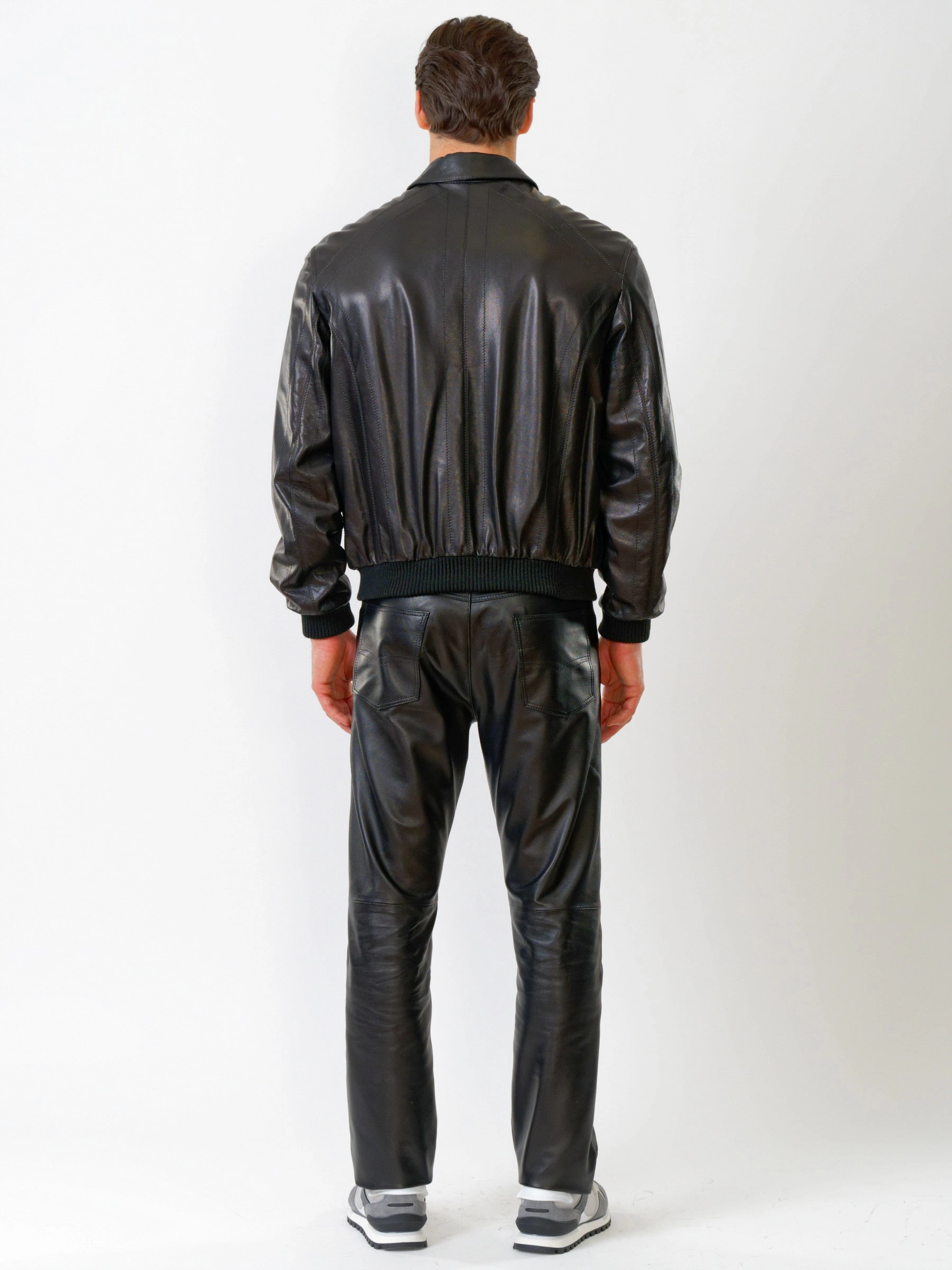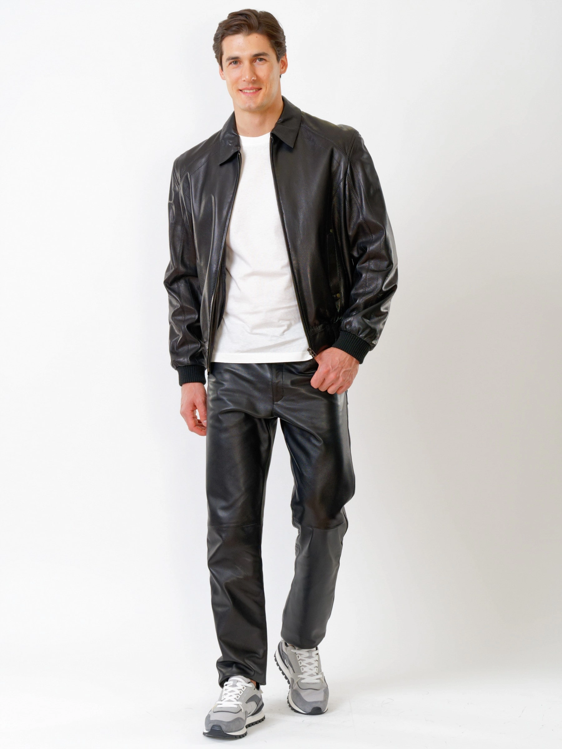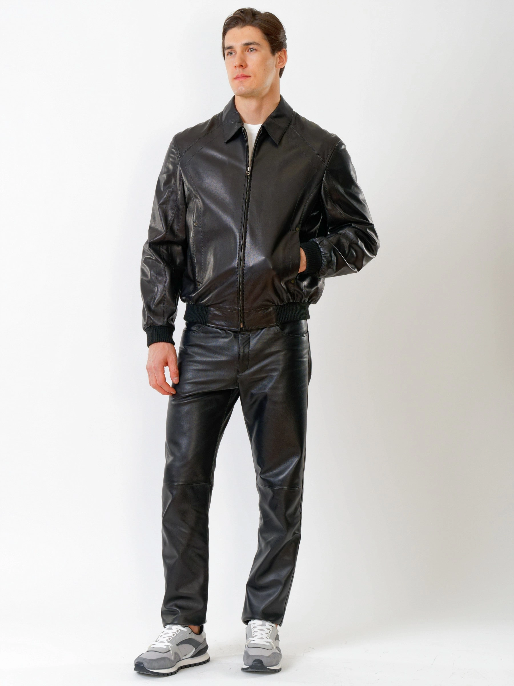 Кожаный комплект мужской: Куртка Мауро + Брюки 01, черный, р. 48, артикул 140220