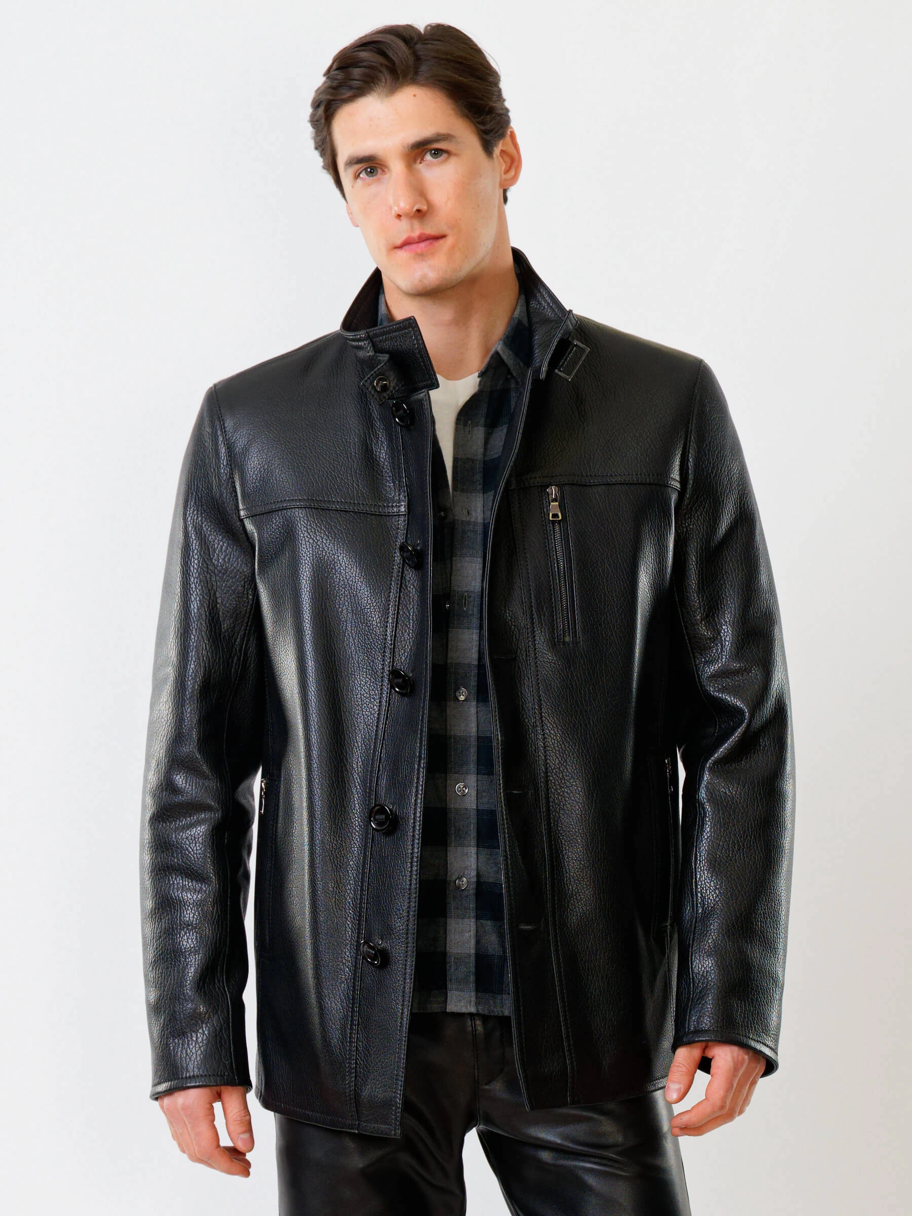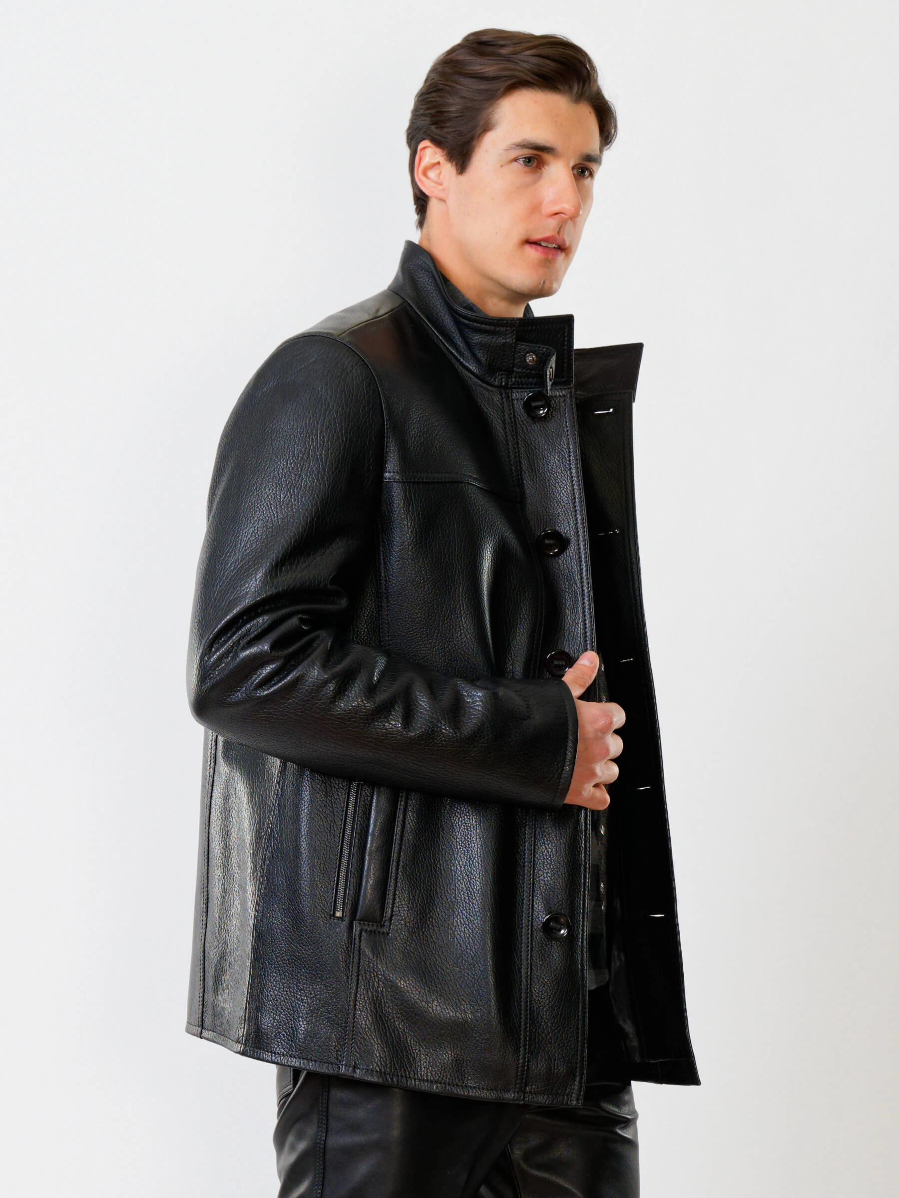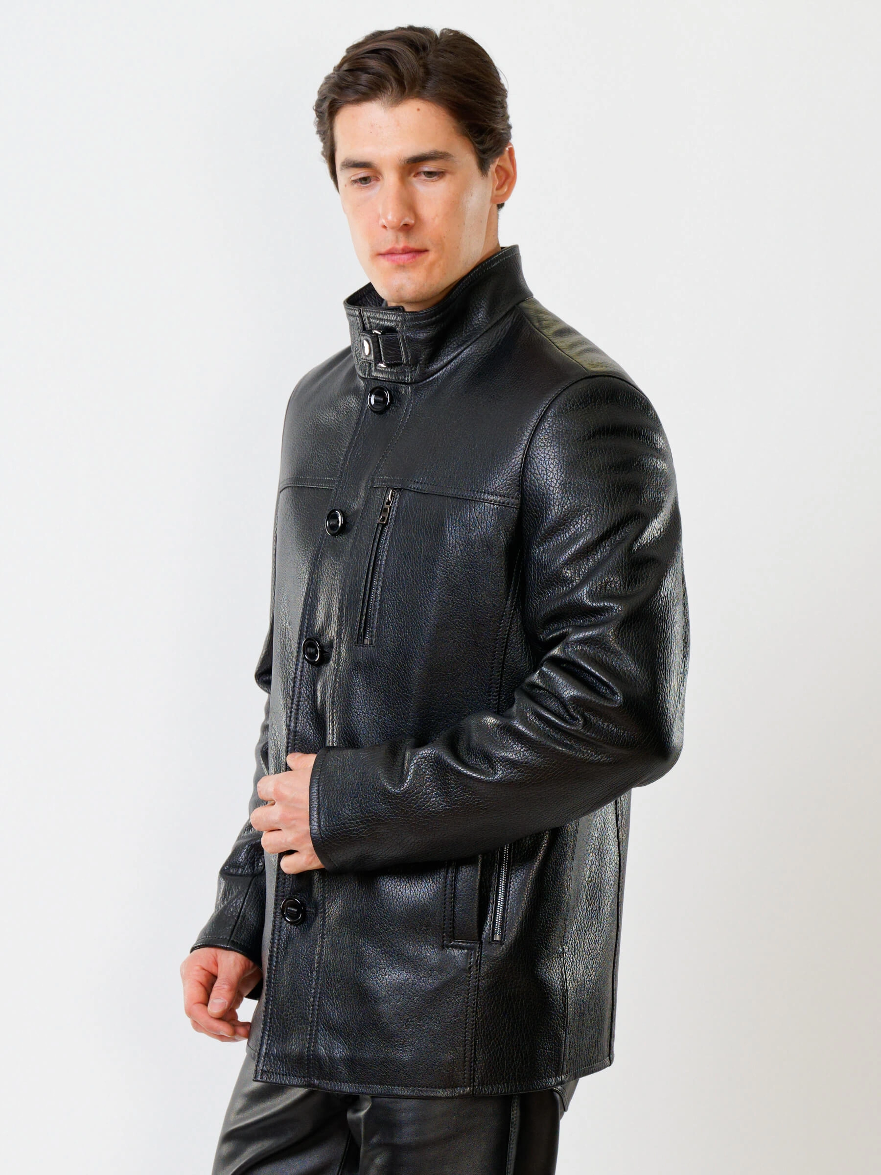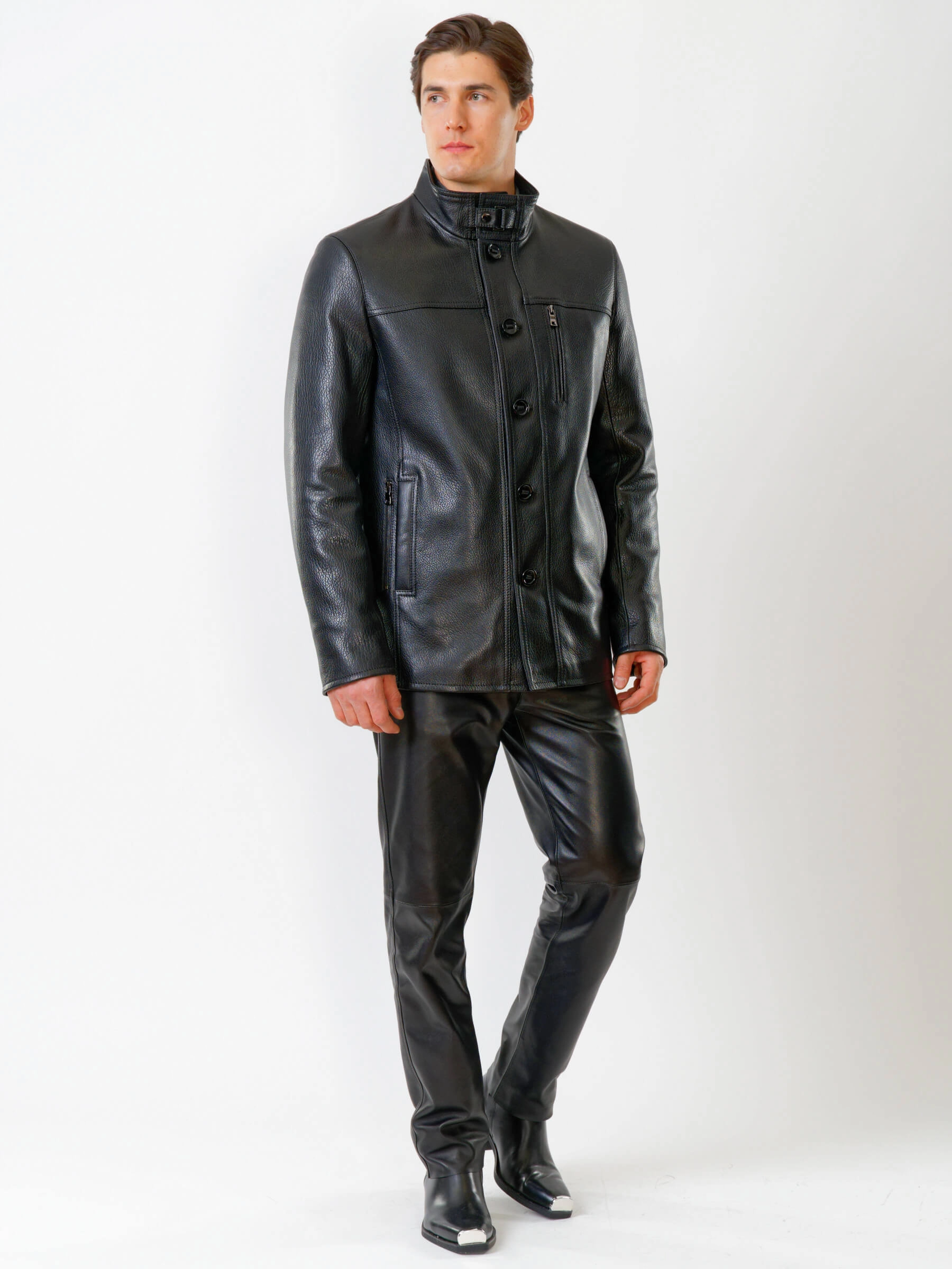 Товар кожаная куртка утепленная мужская 518ш, черная, размер 46, артикул 40370 выполнен из натуральной кожи с застежкой пуговицы. Рассчитан на сезон: демисезон. Длина изделия 81 см, силуэт прямой.