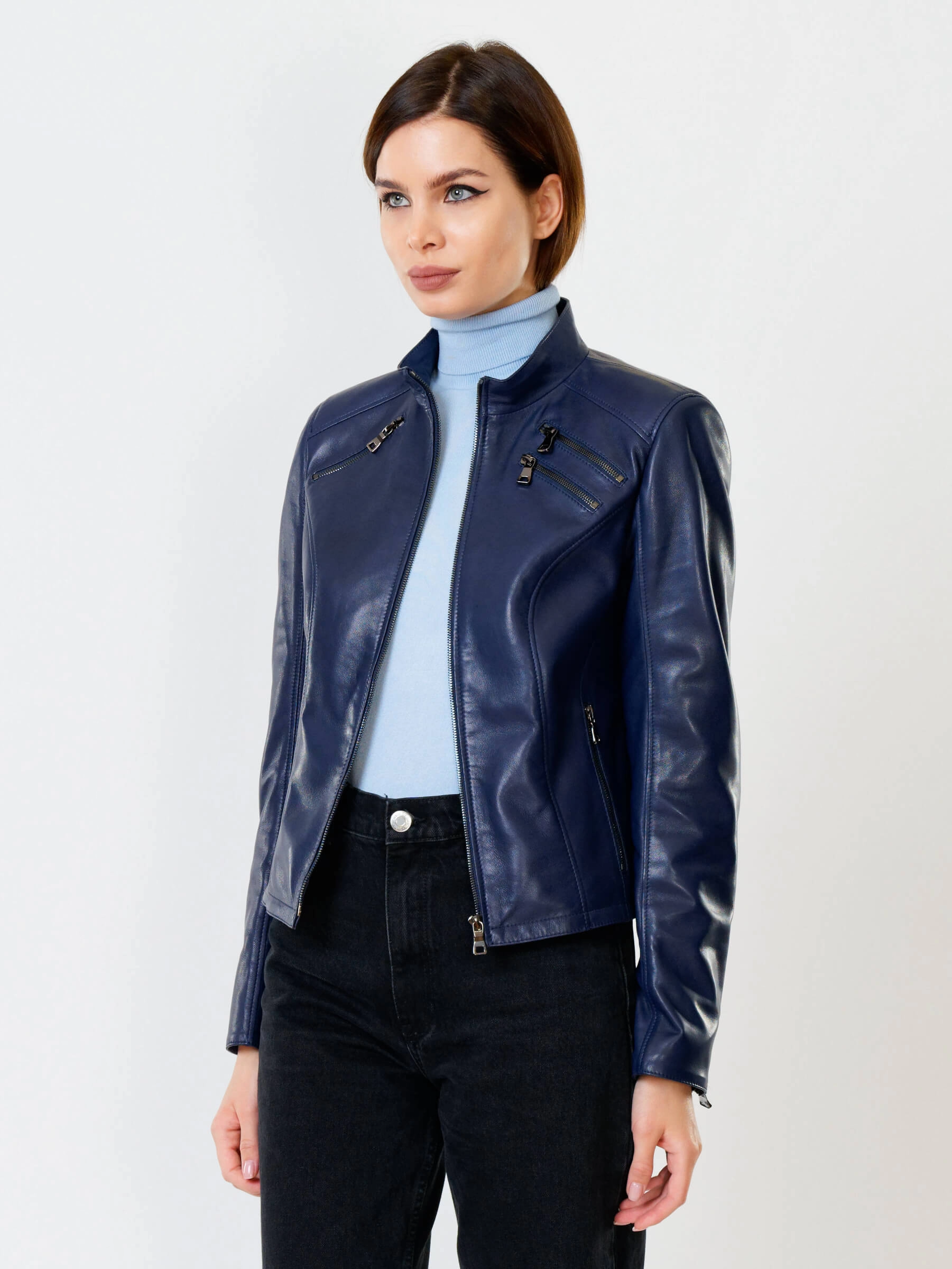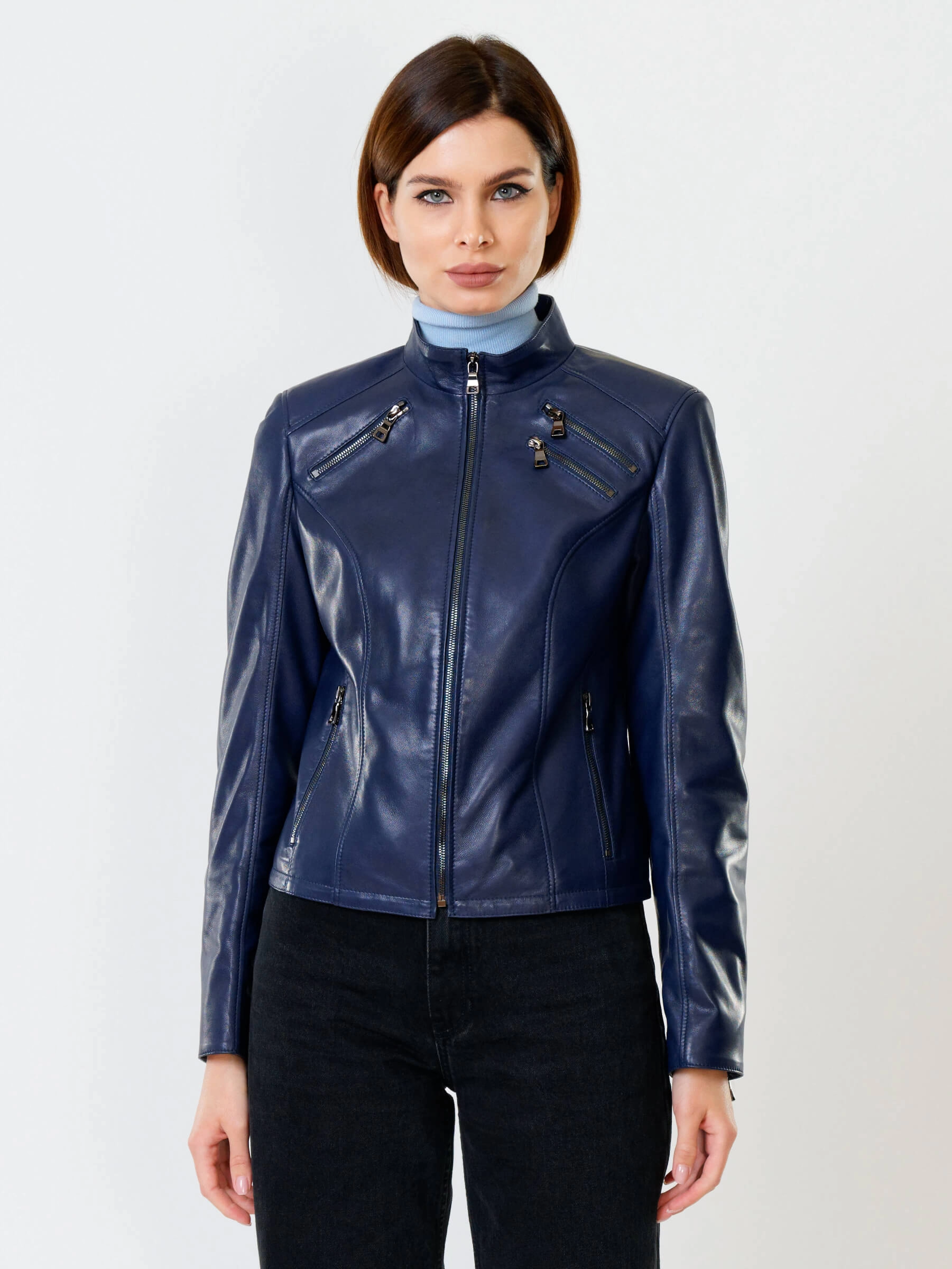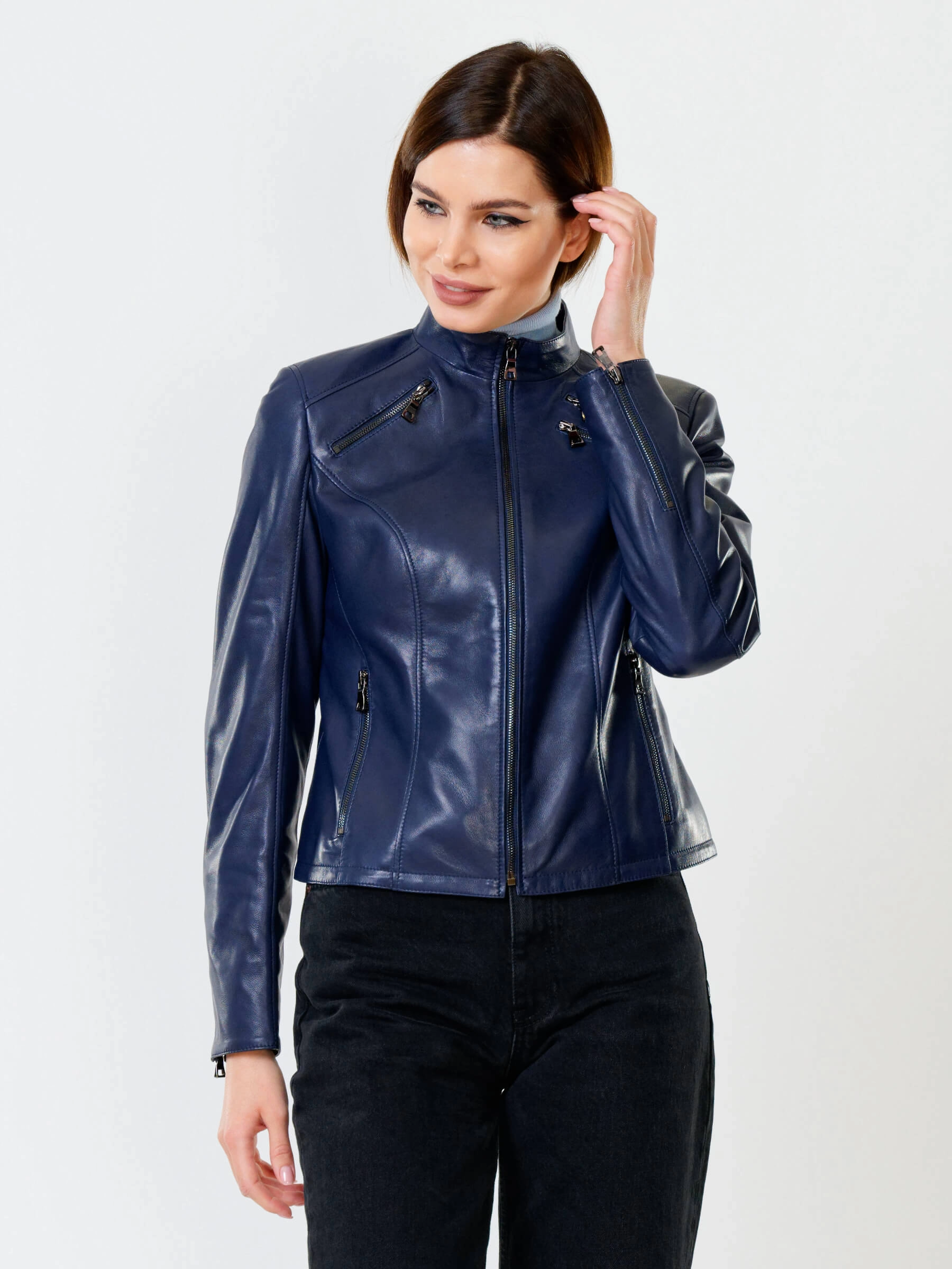 Кожаная куртка женская 3004, синяя, размер 48, артикул 91020