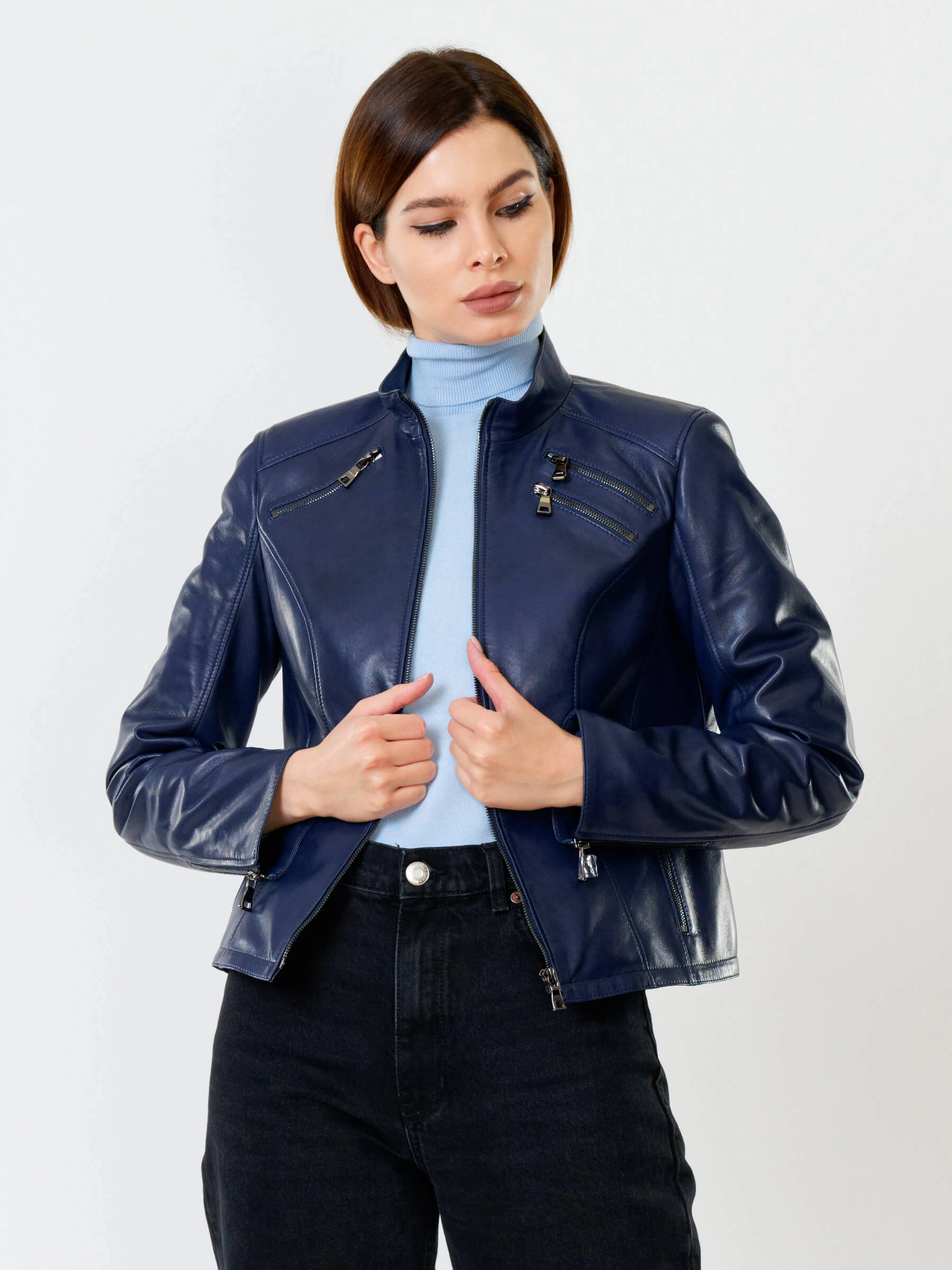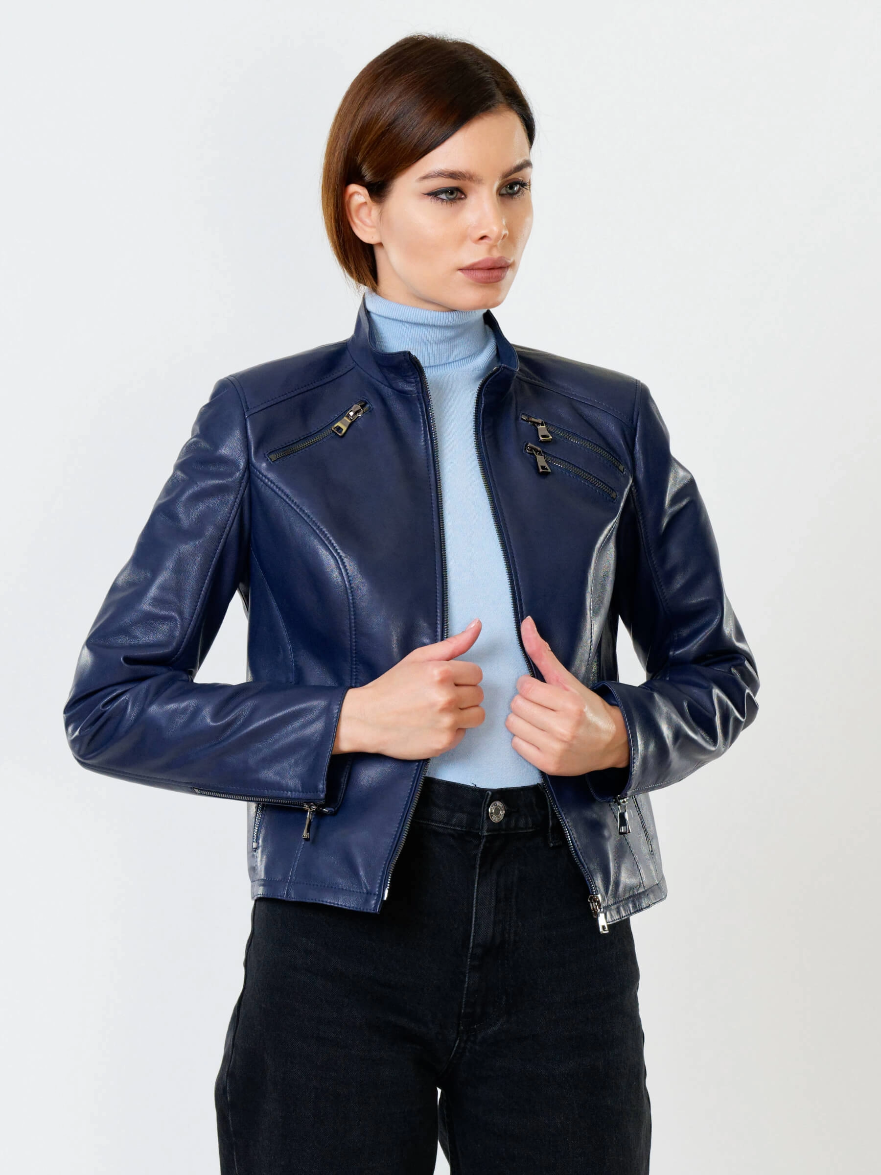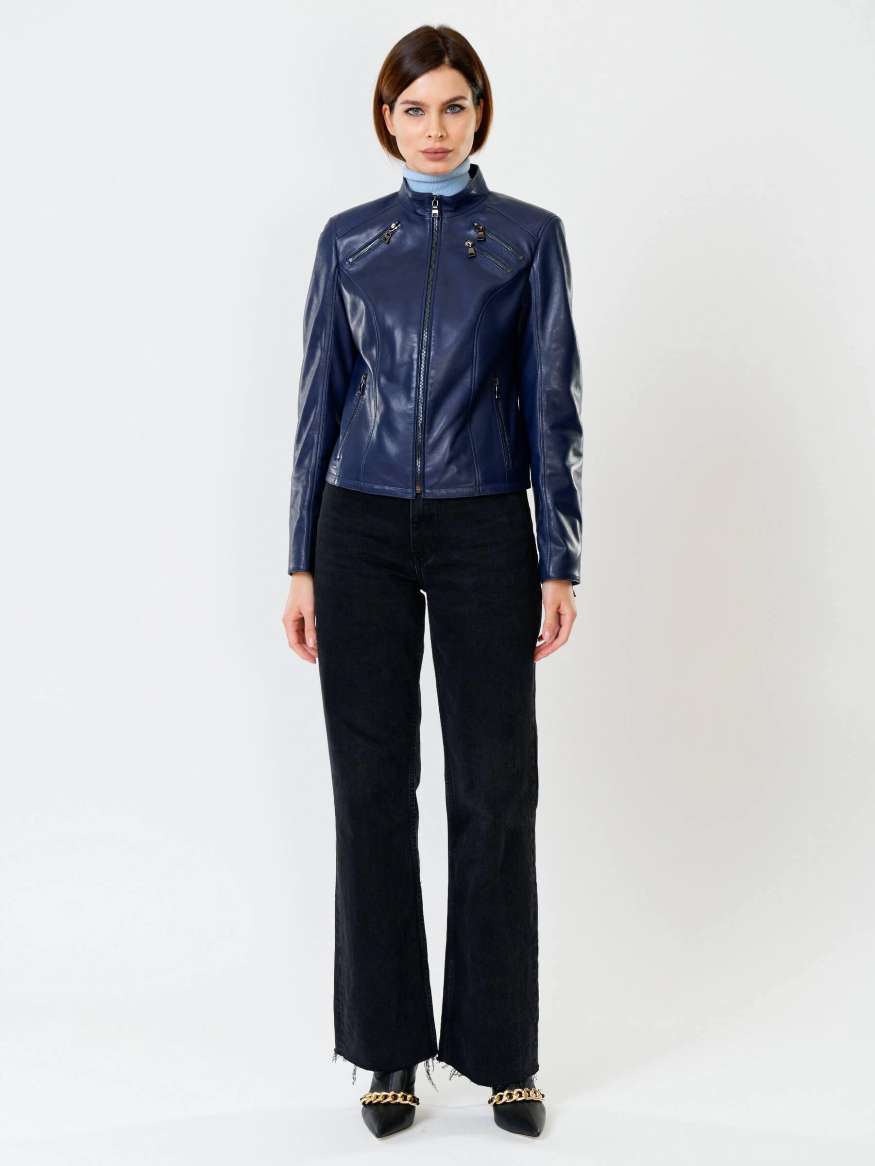 Кожаная куртка женская 3004, синяя, размер 48, артикул 91020