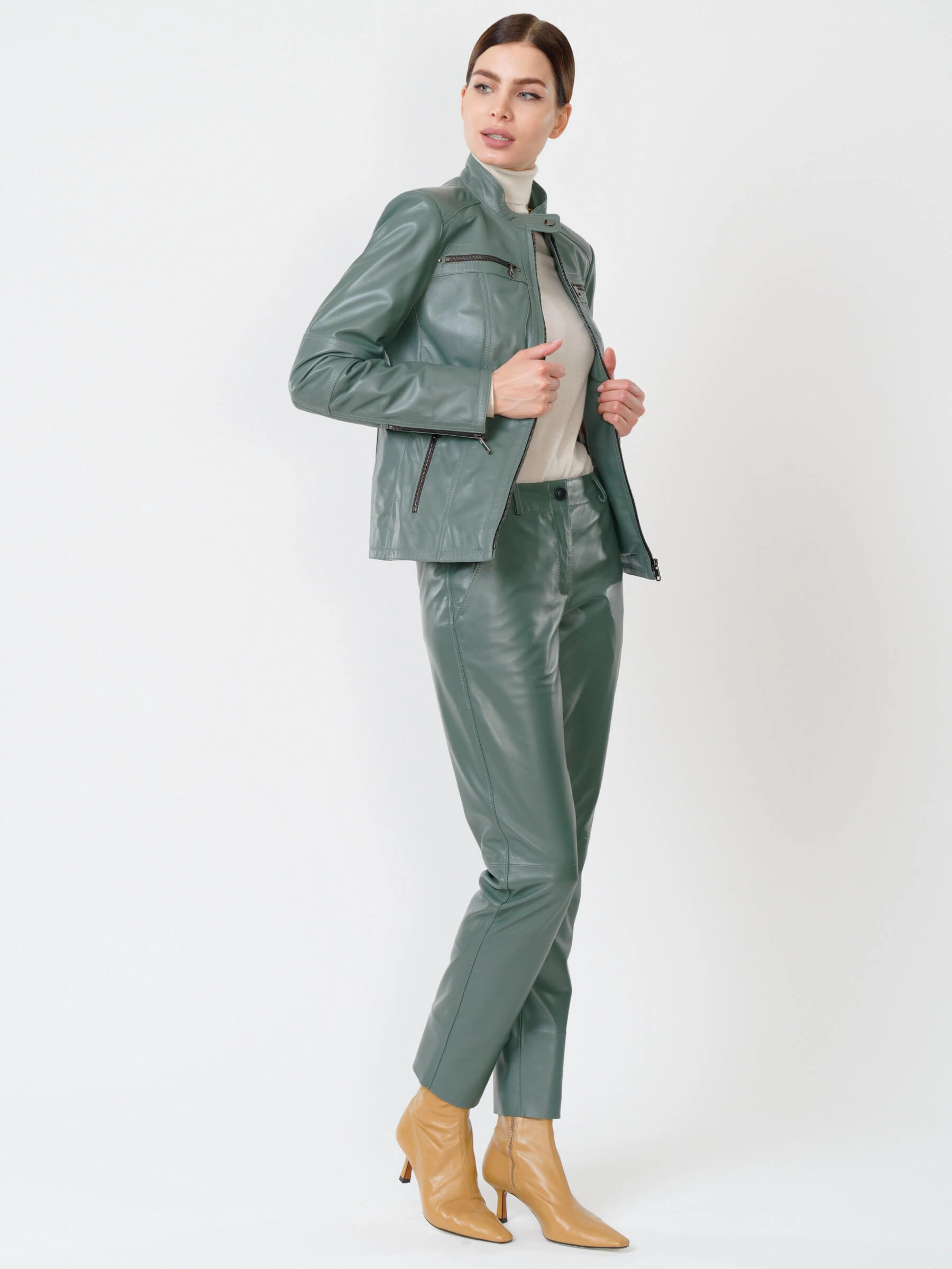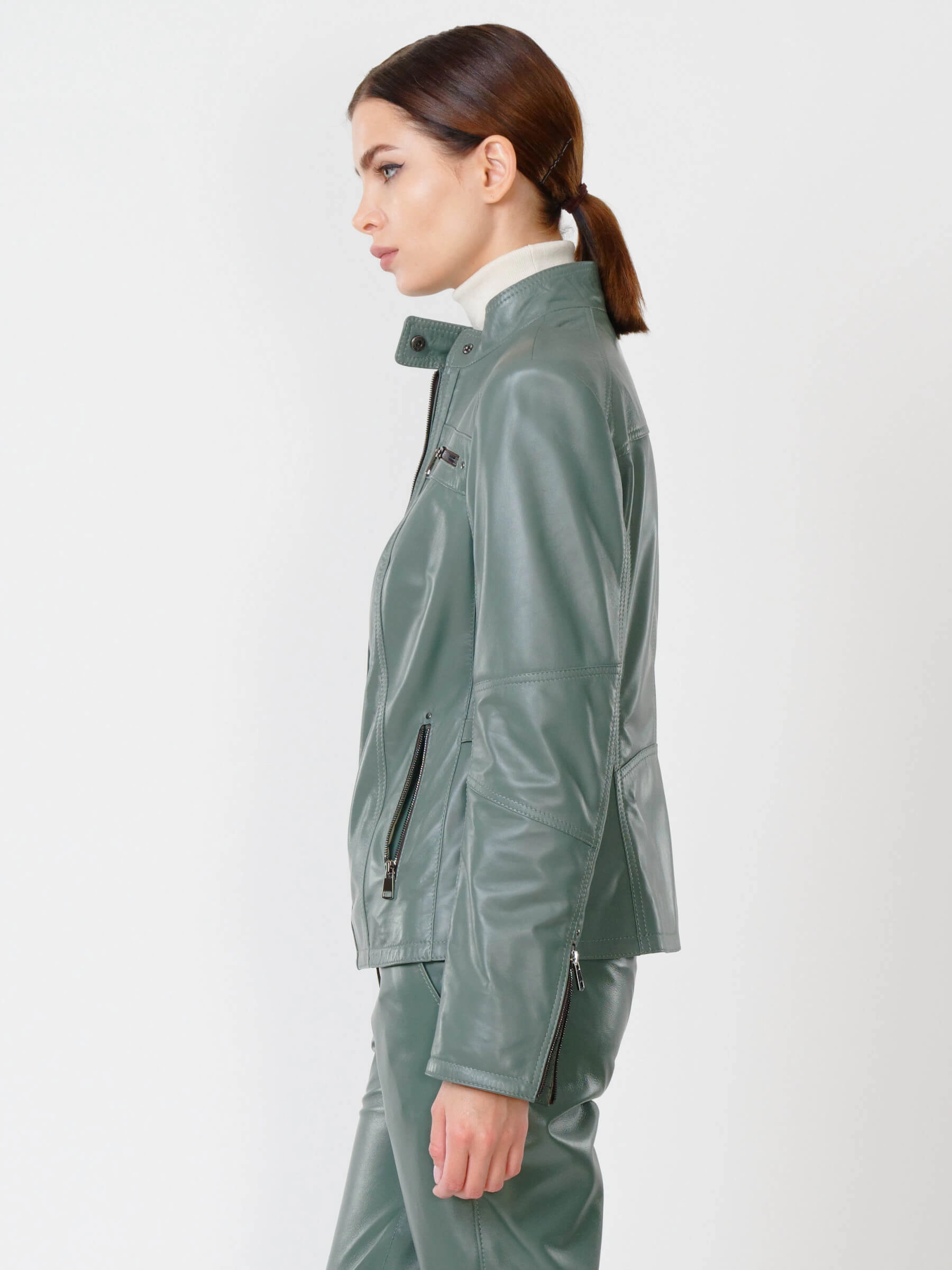 Кожаная куртка женская 301, оливковая, размер 44, артикул 90780