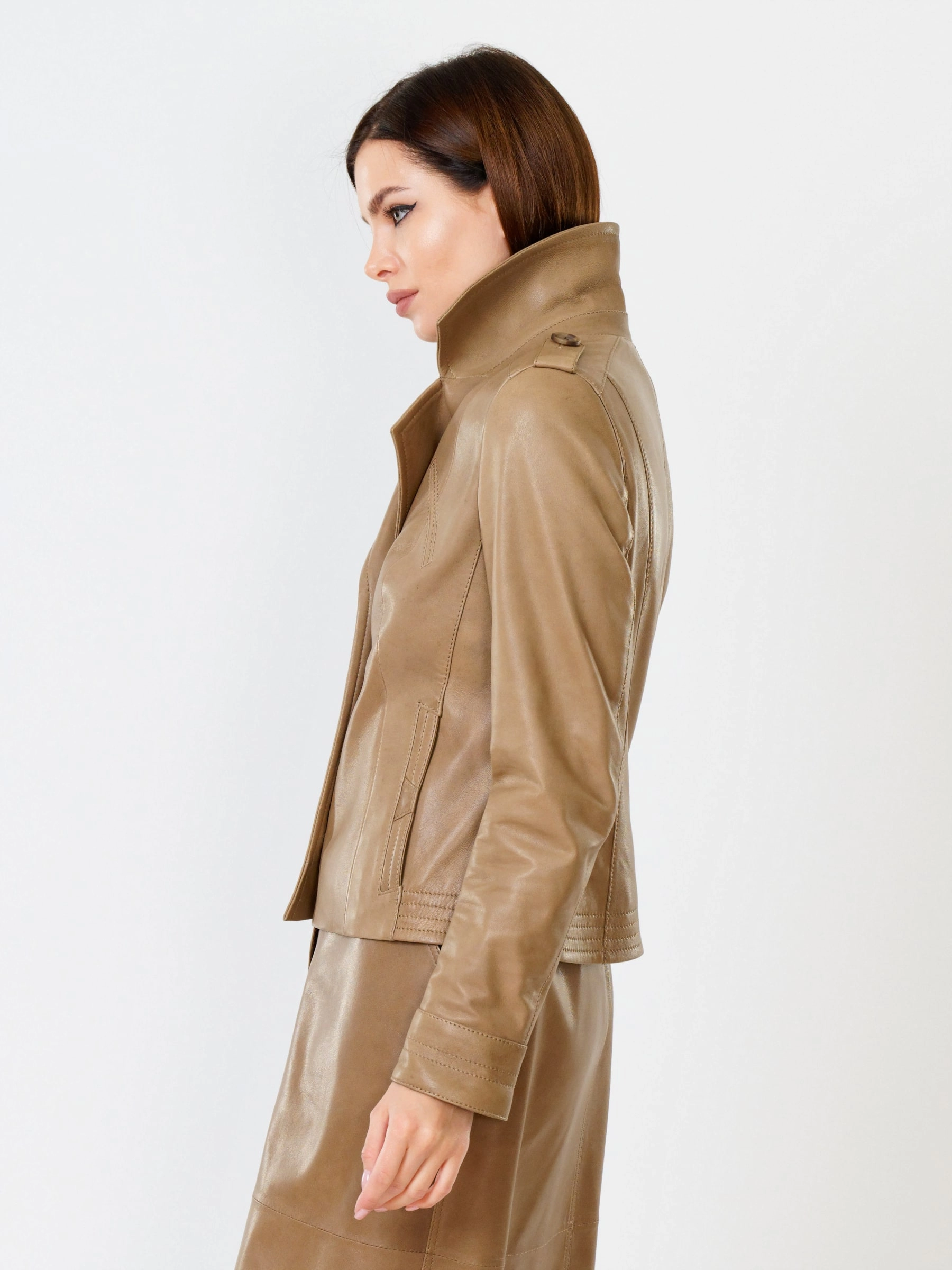 Товар короткая женская кожаная куртка пиджак 304, серо-коричневая, размер 46, артикул 91012 выполнен из натуральной кожи с застежкой пуговицы. Рассчитан на сезон: весна-лето. Длина изделия 56 см, силуэт полуприлегающий.