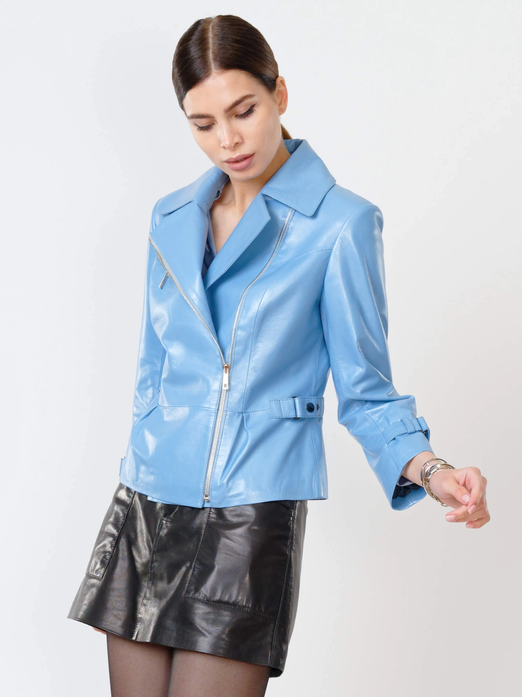 Кожаная куртка косуха женская 307, голубой перламутр, размер 44, артикул 90831