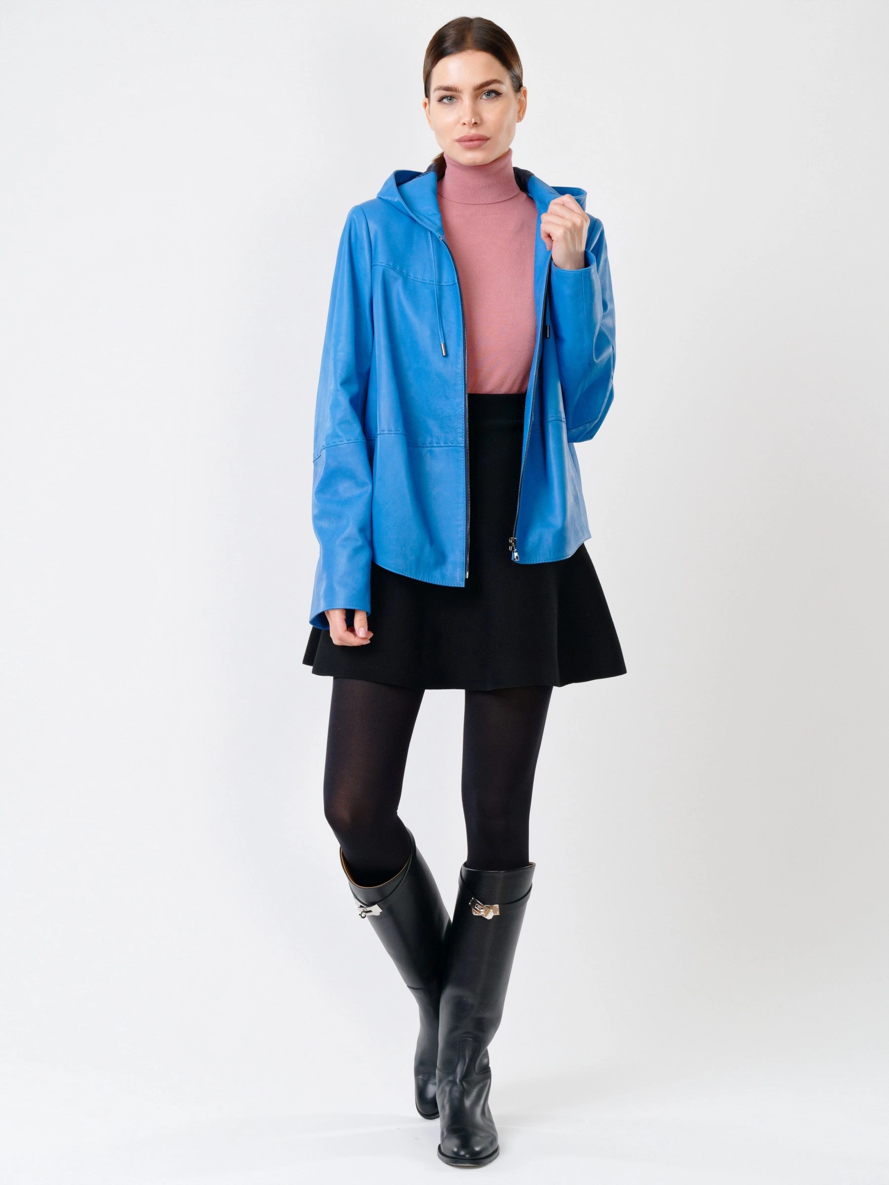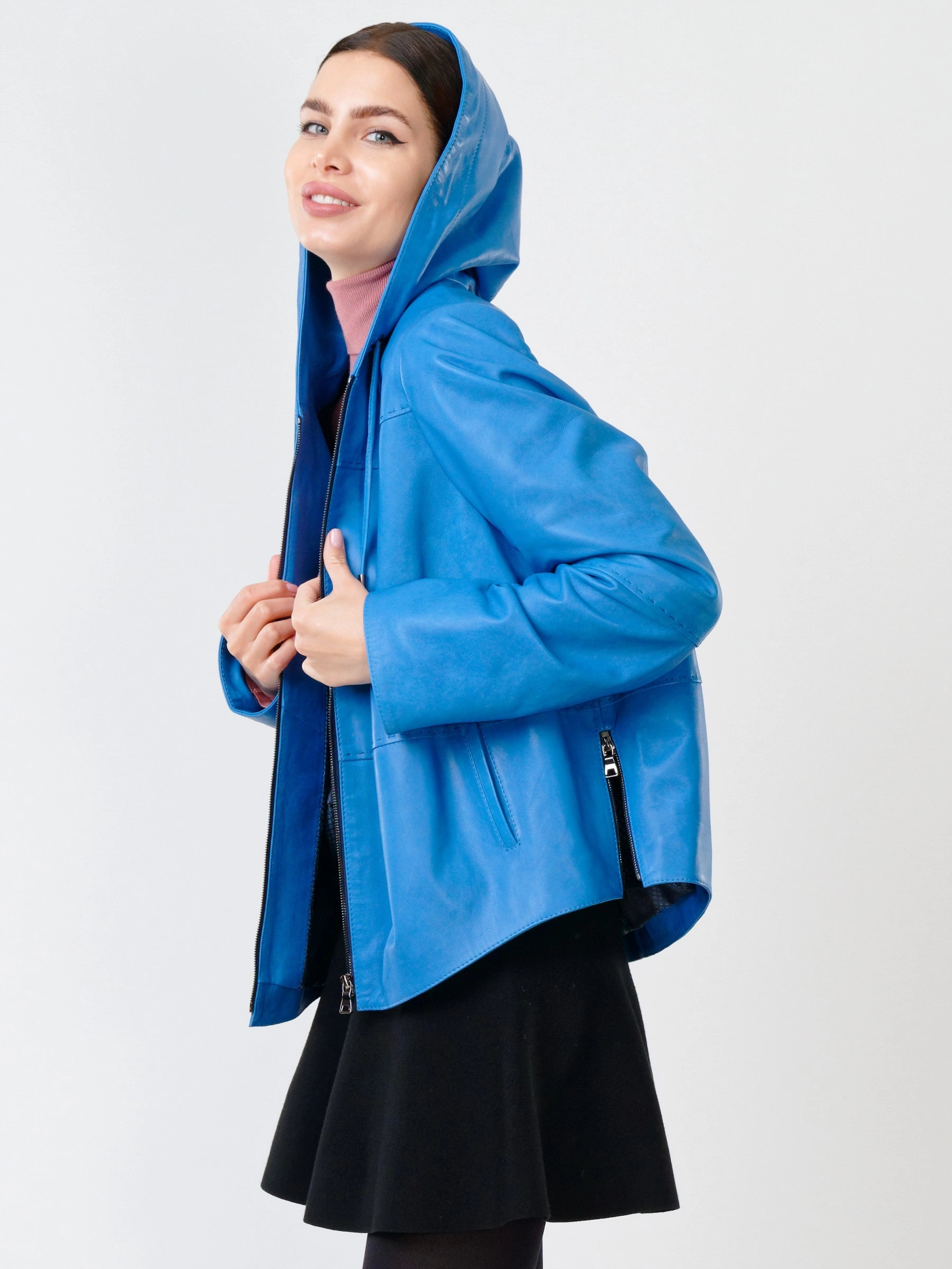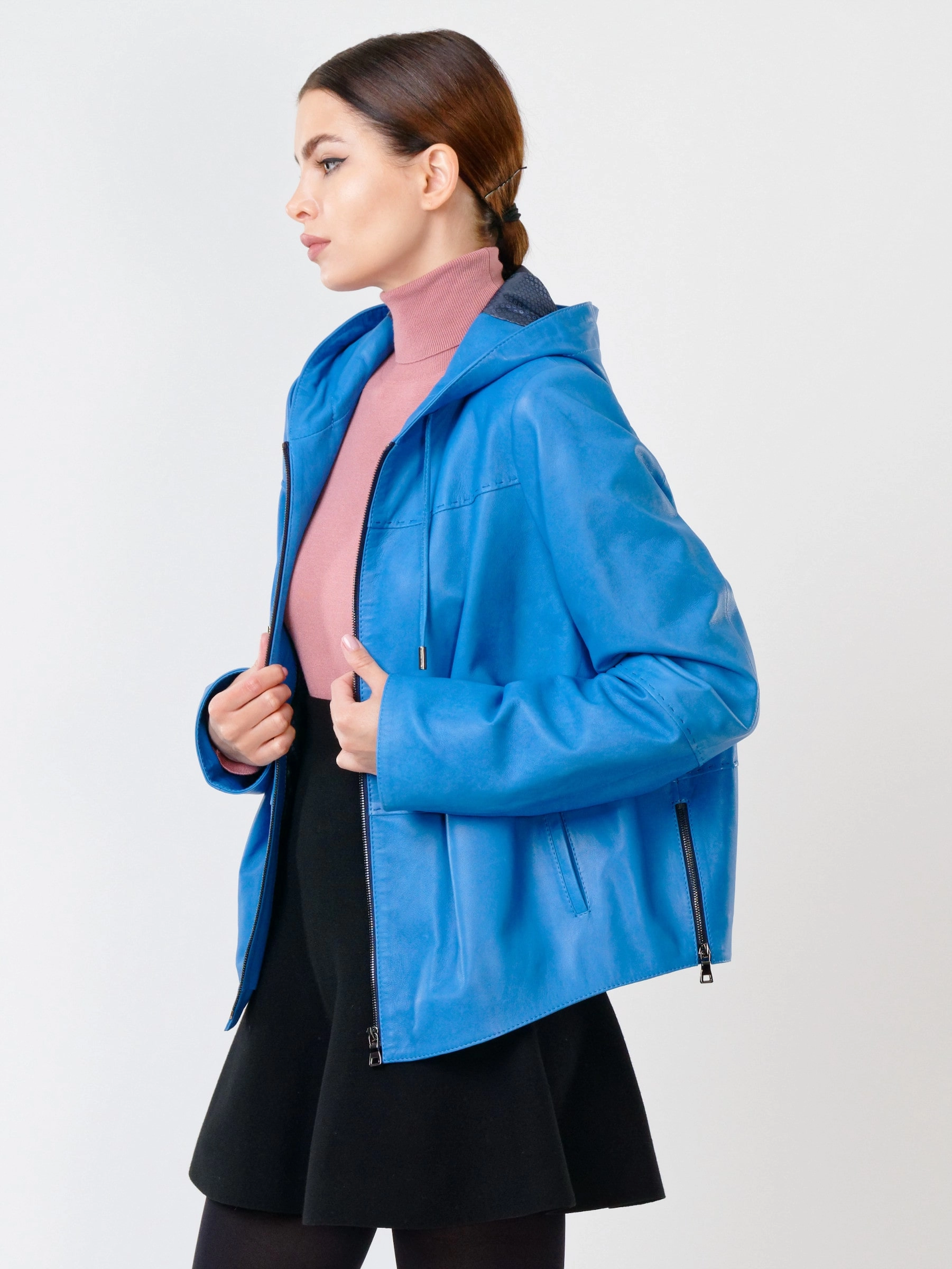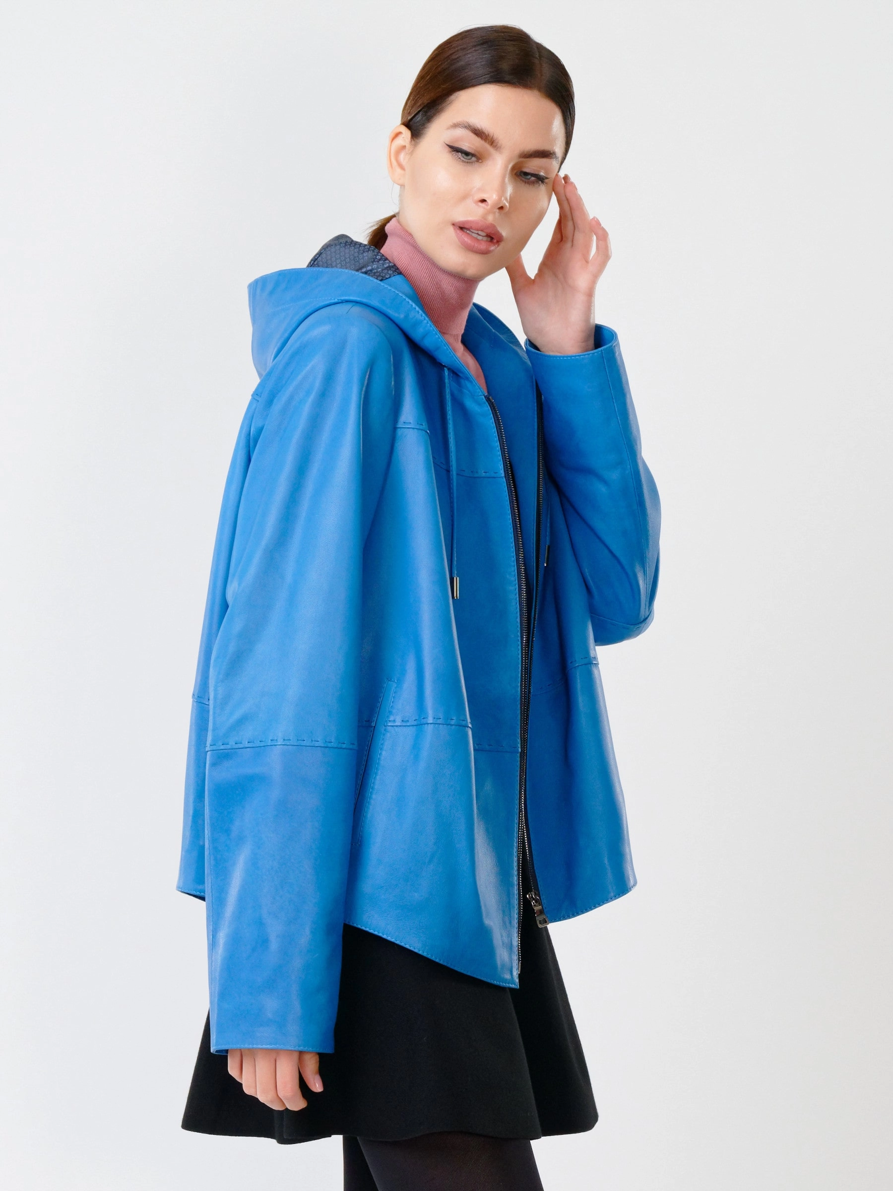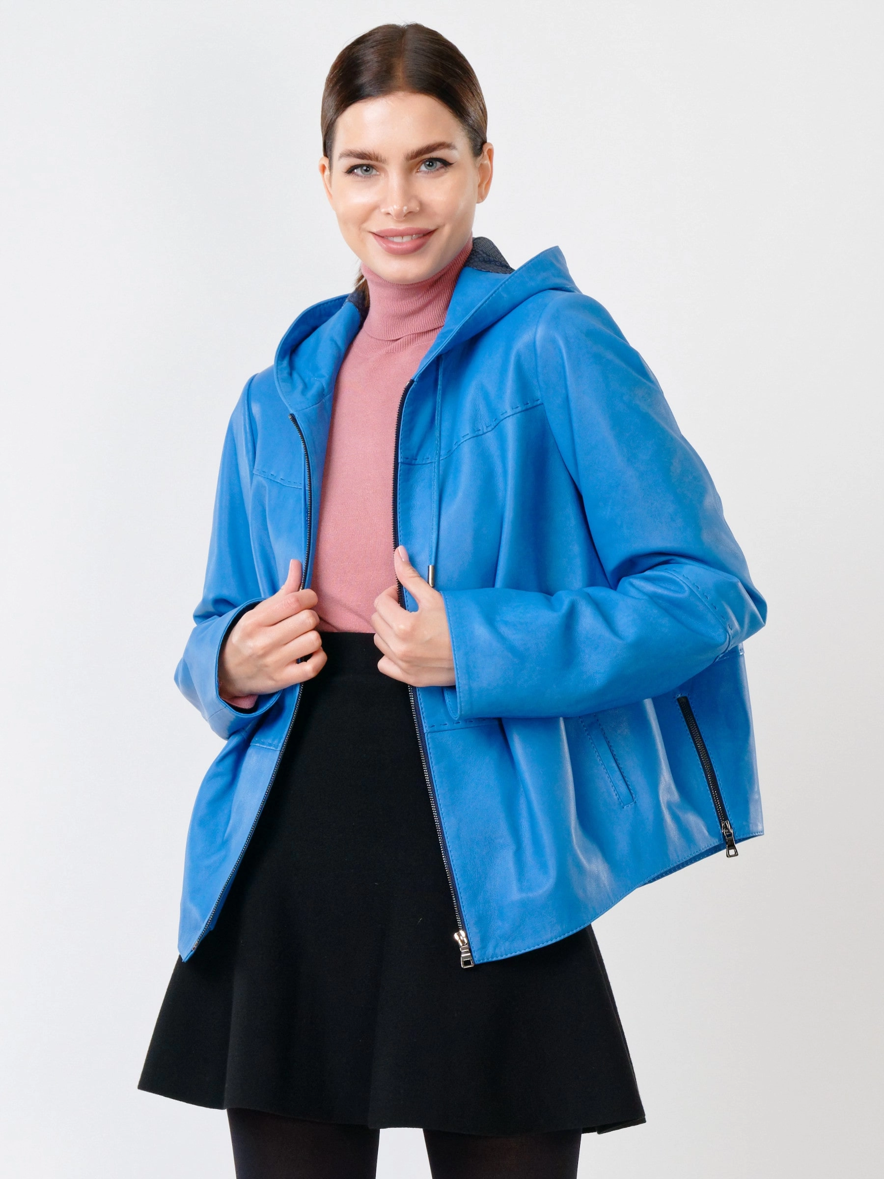 Женская кожаная куртка с капюшоном 308рс, голубая, размер 46, артикул 91140