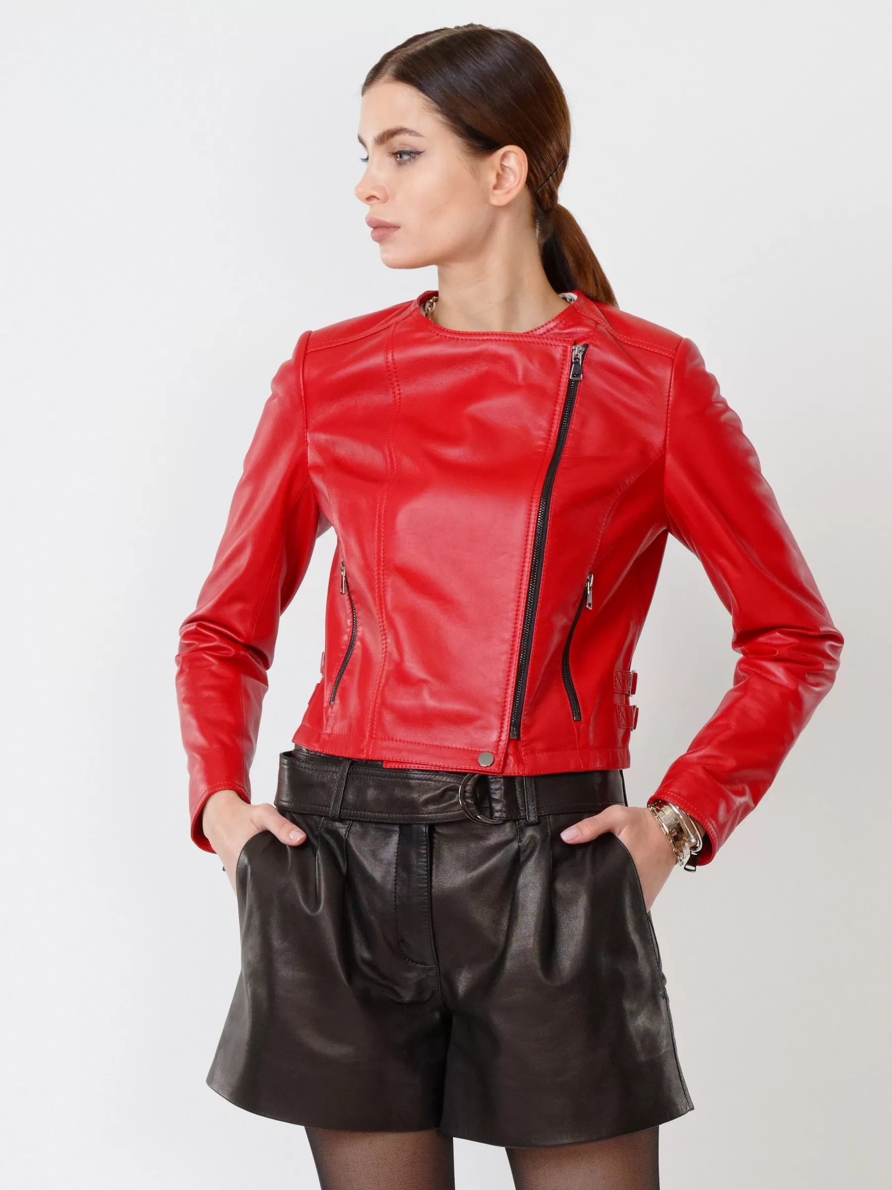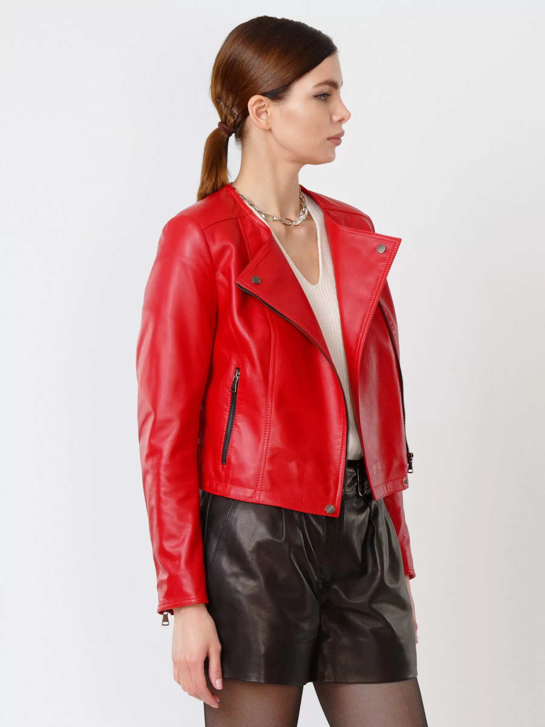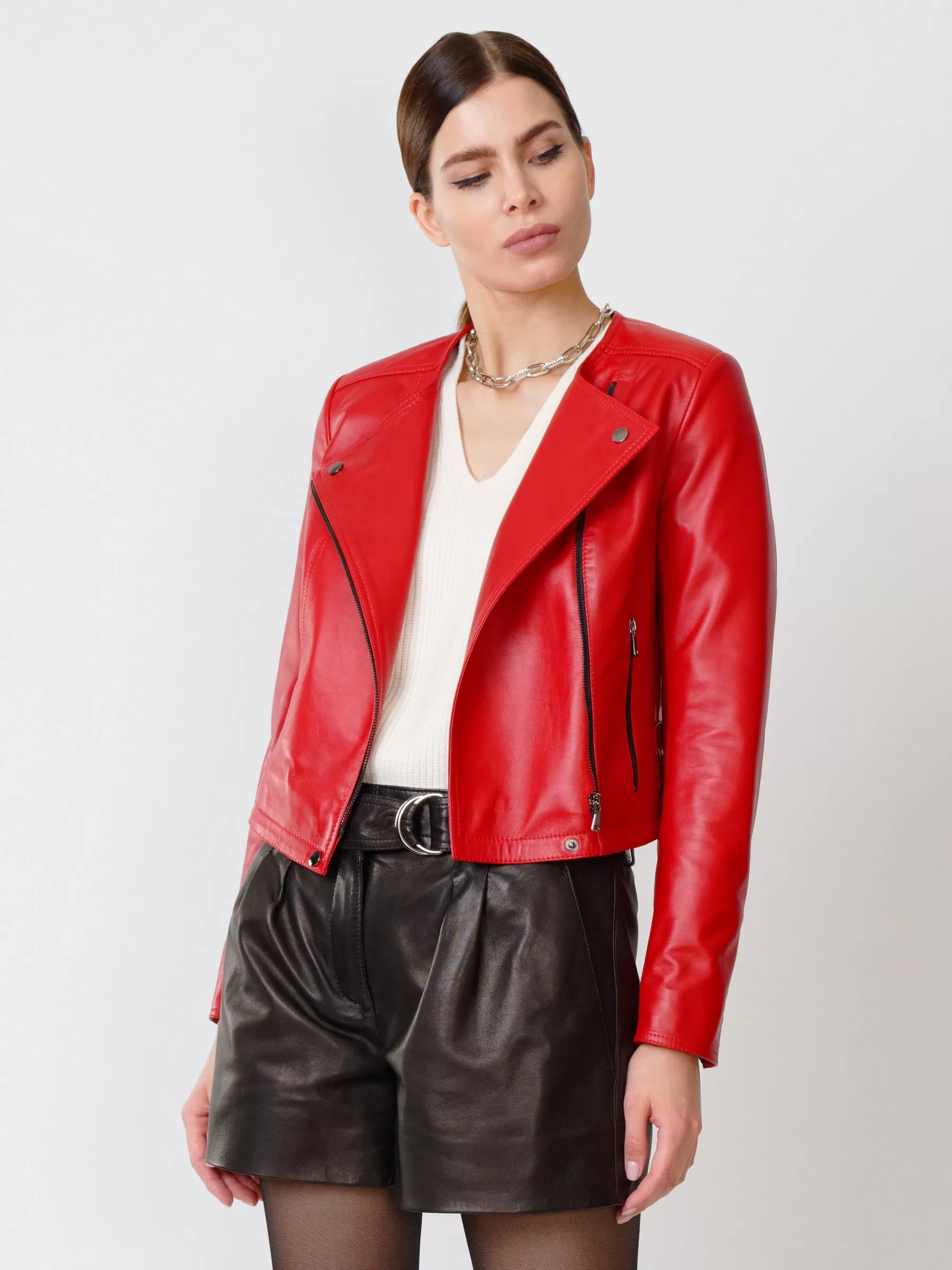 Товар кожаная женская куртка косуха 389, красная, размер 46, артикул 90900 выполнен из натуральной кожи с застежкой молния. Рассчитан на сезон: весна-лето. Длина изделия 45 см, силуэт полуприлегающий.