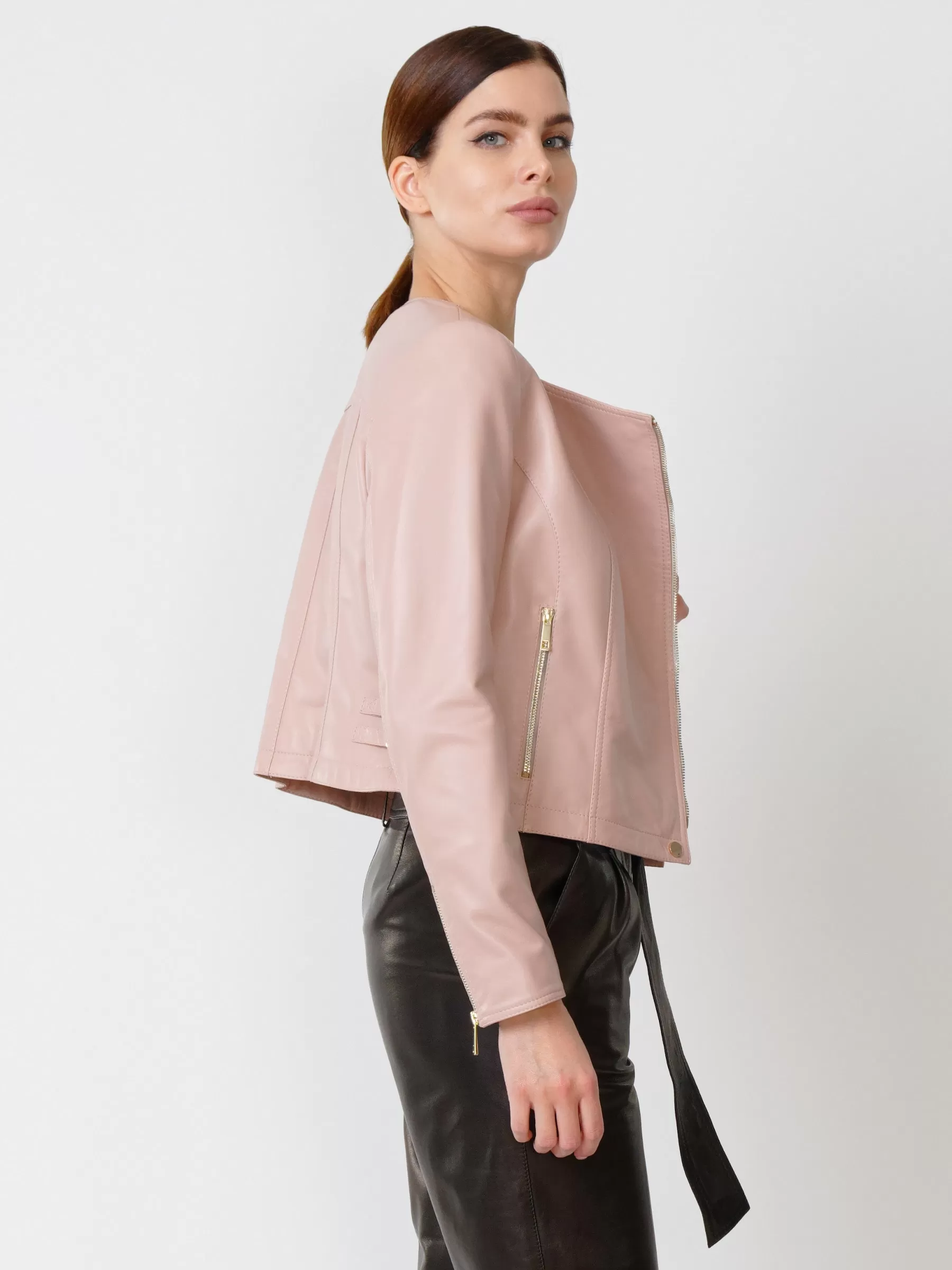 Товар кожаная женская куртка косуха 389, пудровая, размер 42, артикул 90910 выполнен из натуральной кожи с застежкой молния. Рассчитан на сезон: весна-лето. Длина изделия 45 см, силуэт полуприлегающий.